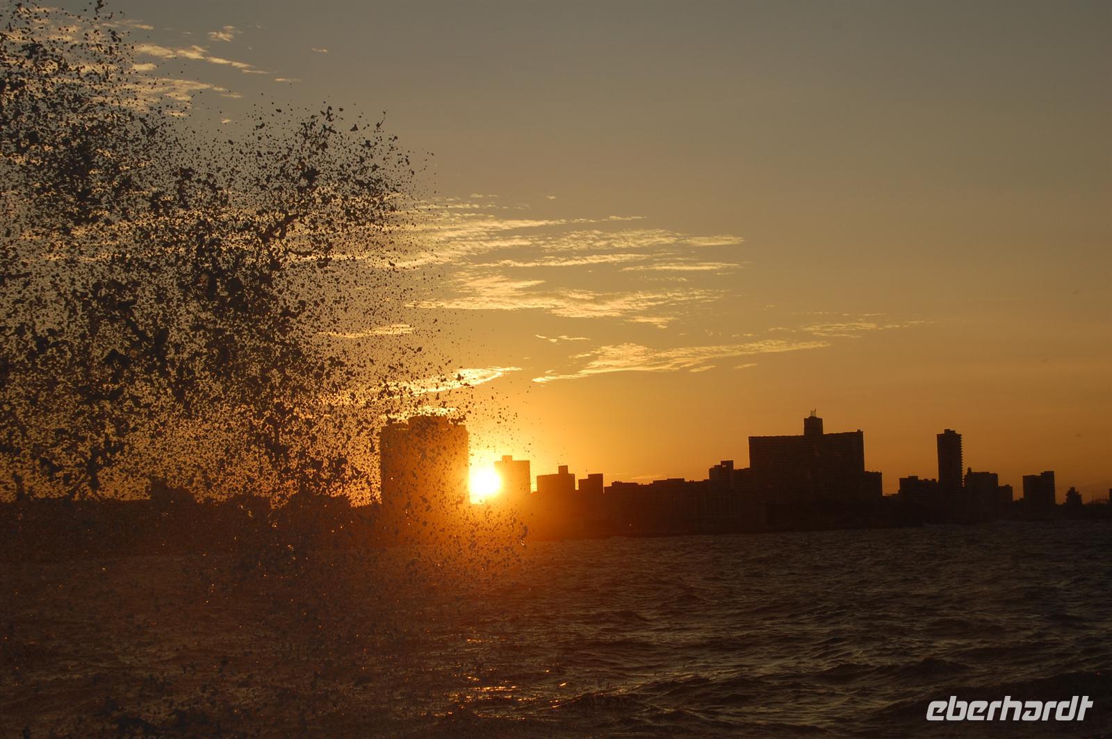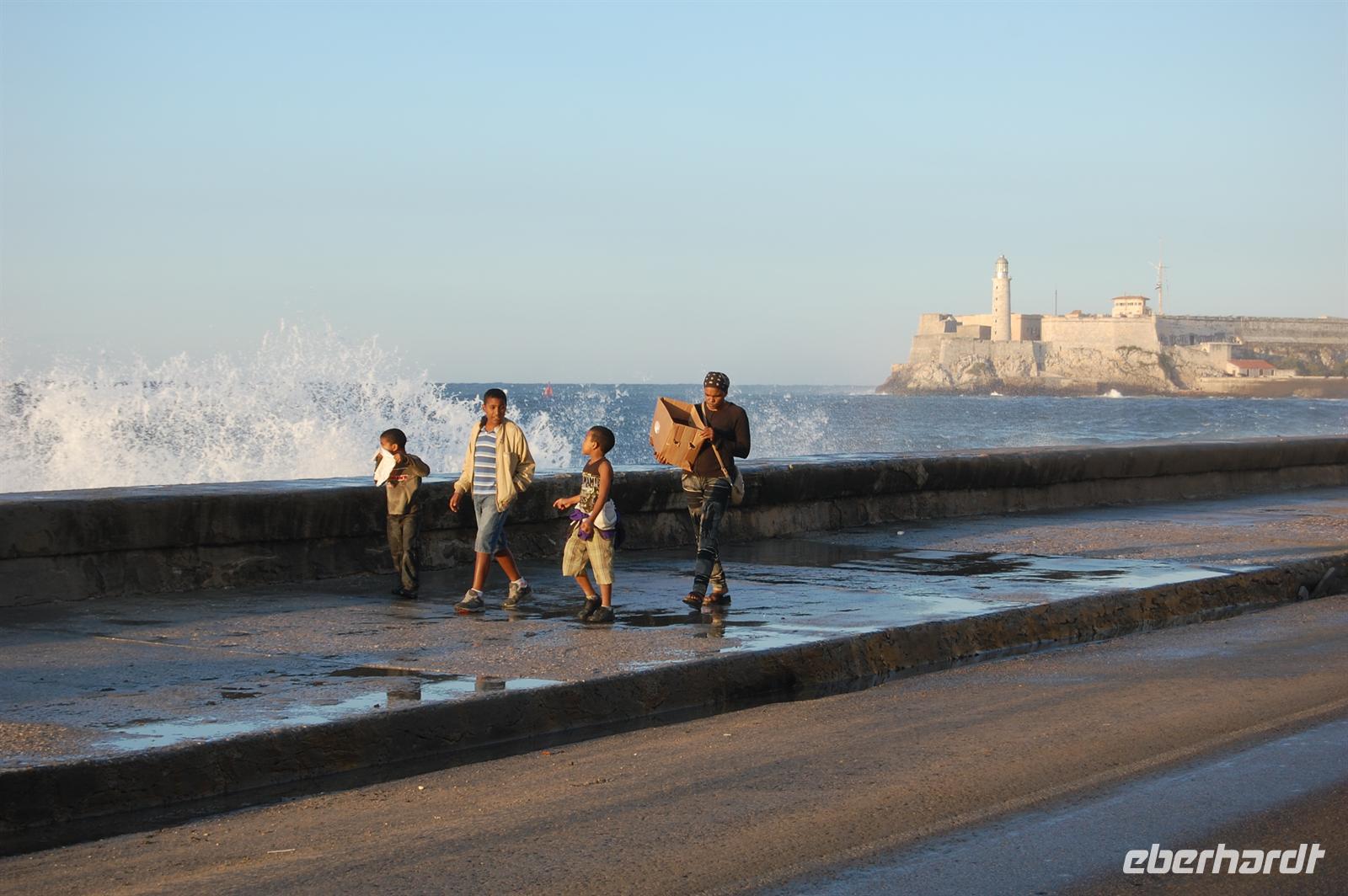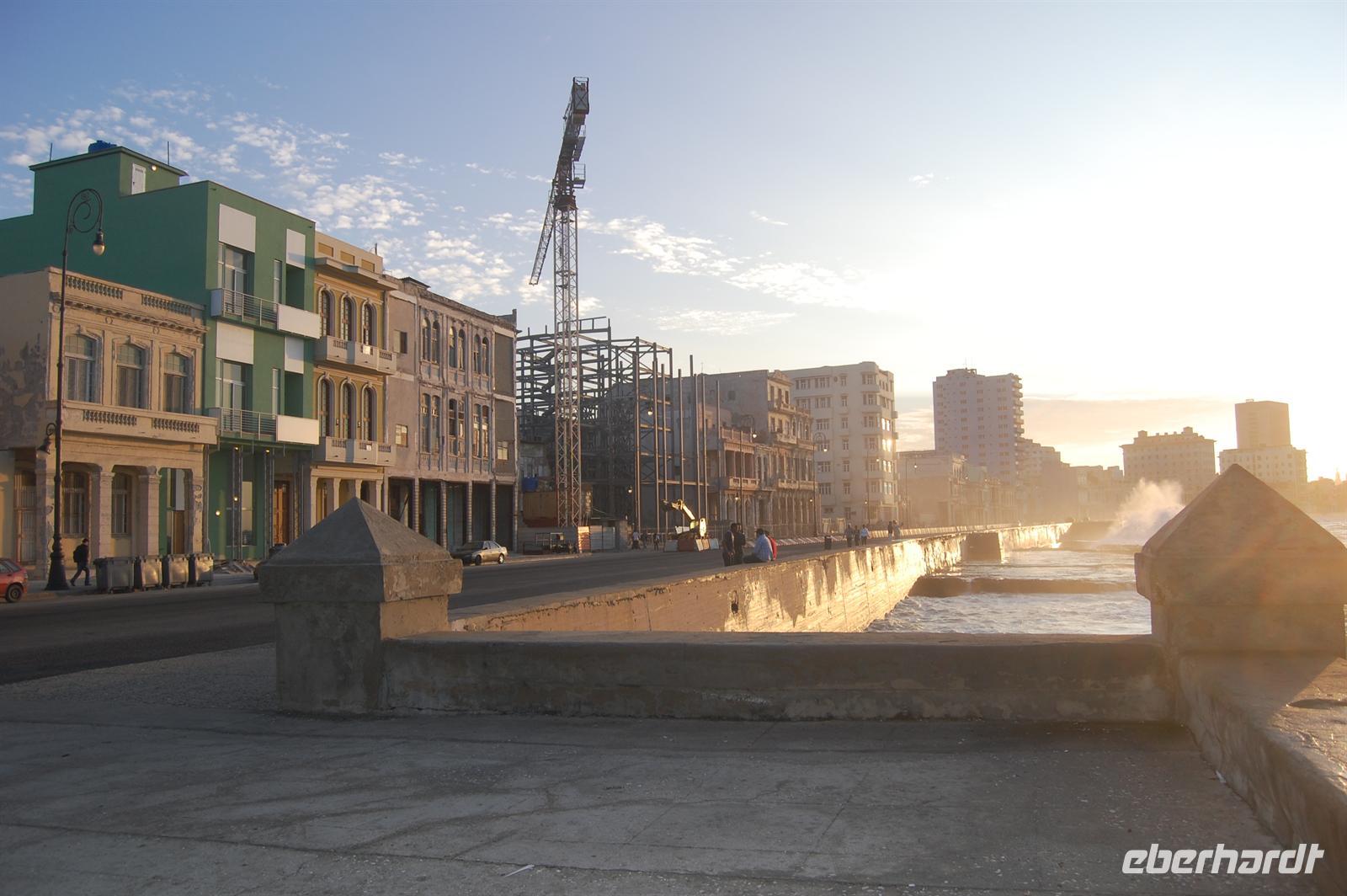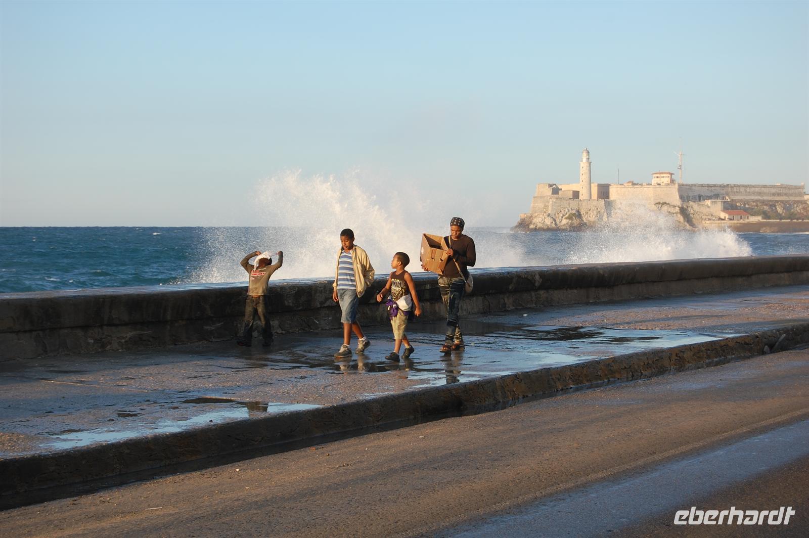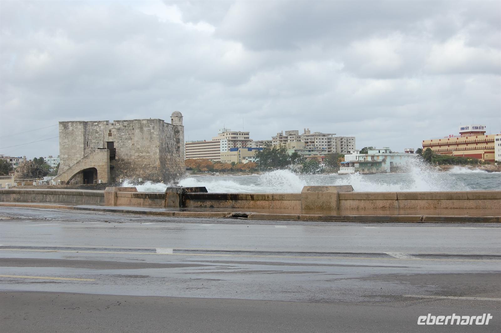 Mit dem klimatisierten Reisebus starten wir zu unserer Stadtrundfahrt. Mit Miguels Erläuterungen fahren wir durch die Straßen zu Havannas größten Friedhof, wo wir mit einer Führung Näheres über den Reichtum vergangener Zeiten erfahren. Über den legendären Malecón können wir leider nicht fahren, denn die stürmische See bringt meterhohe Wellen an die Küste, die sich in haushoher Gischt an der Ufermauer brechen. Dennoch machen wir einen imposanten Fotostopp. Auch am legendären Platz der Revolution halten wir an und finden viele Fotomotive.