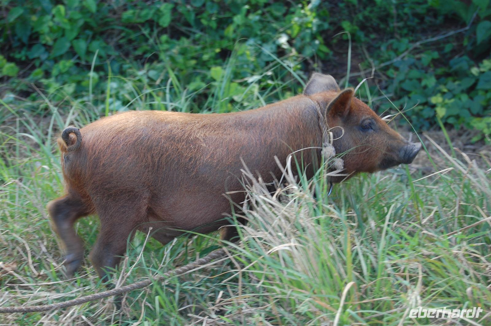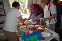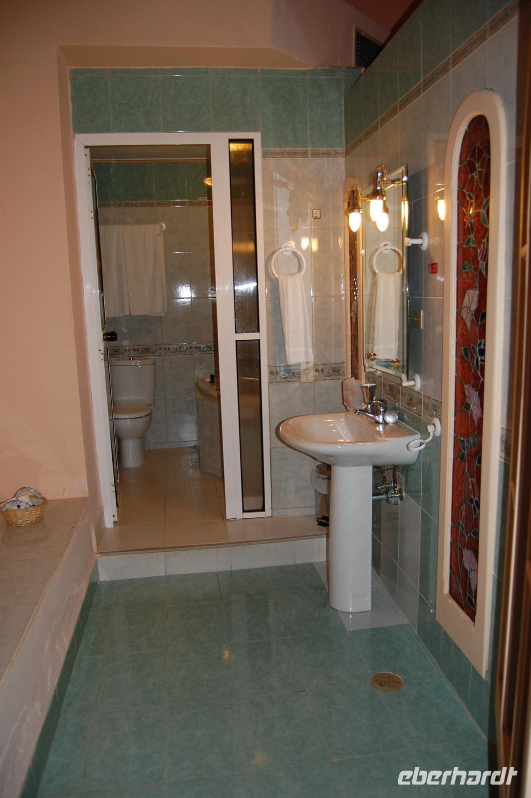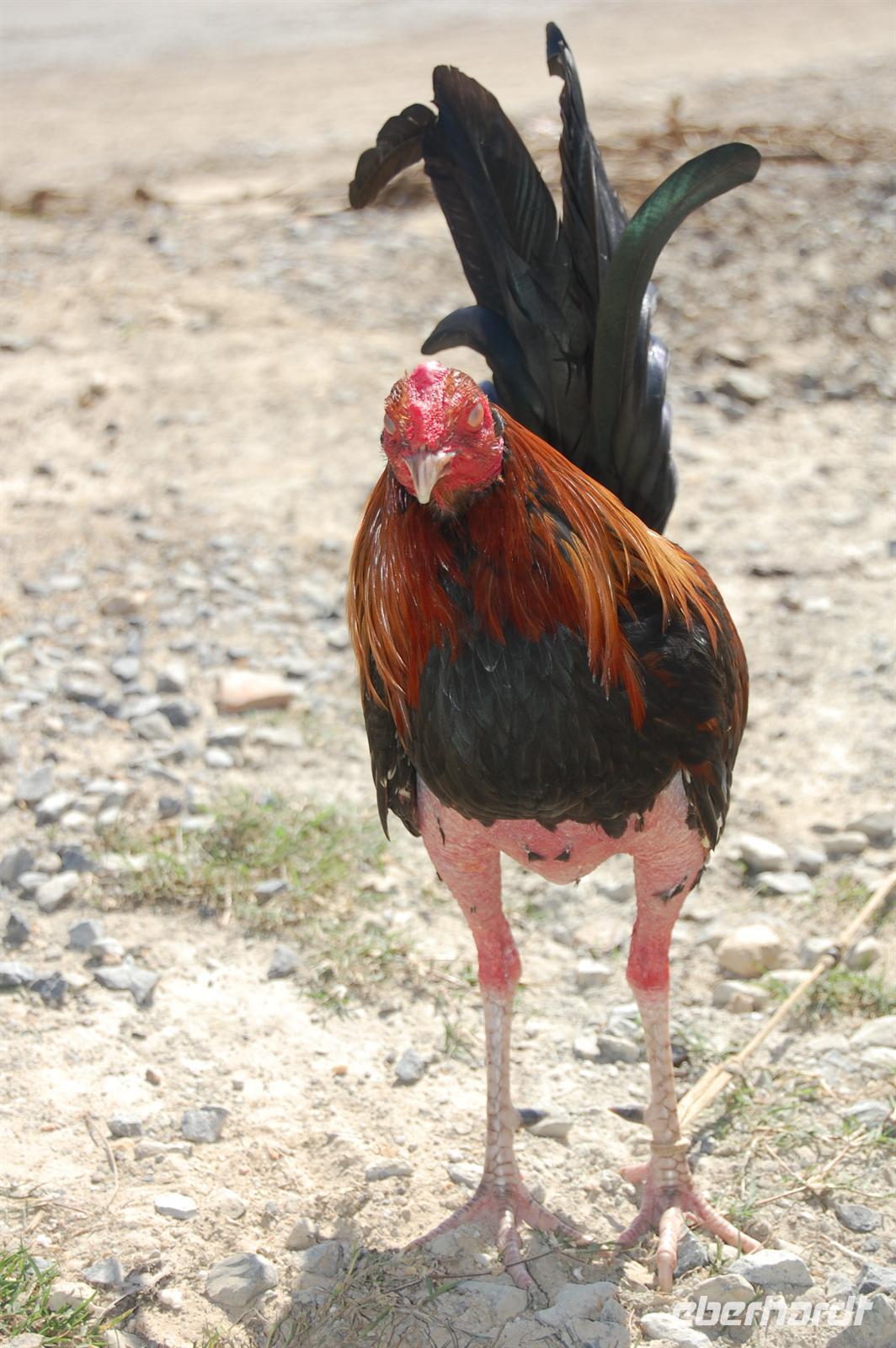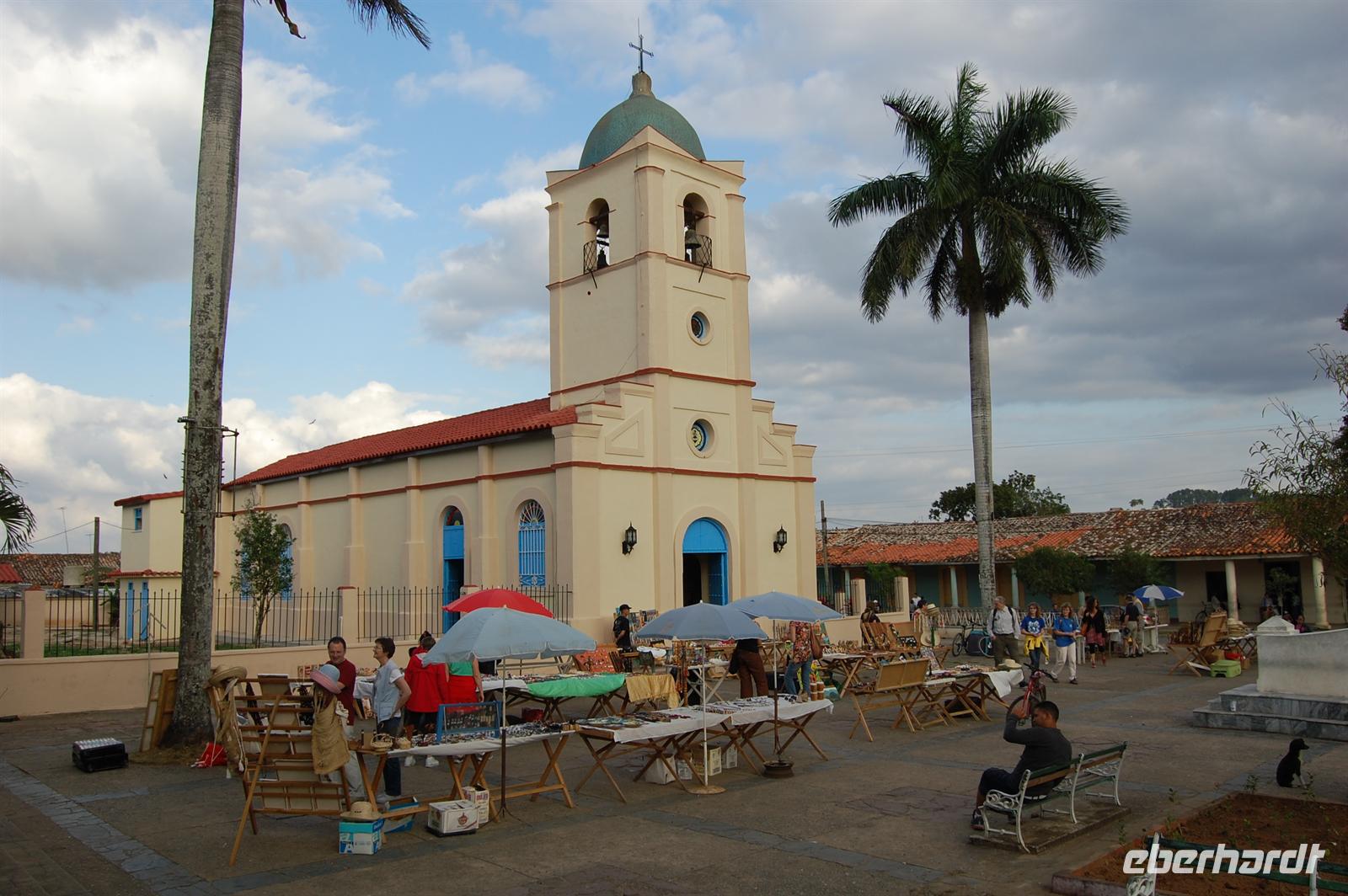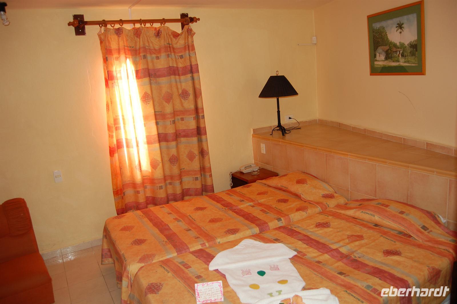 Weiter geht es durch kleine Ortschaften mit dem Rad bis wir an eine Steigung kommen, an der wir die Räder verladen. Mit dem Bus erreichen wir das Vinales-Tal, einen Nationalpark mit hohen Karstfelsen (Mogoten) und Höhlen. Der Reisebus bringt uns zu einer nahe gelegenen Freiluftgaststätte. Nach der schmackhaften Mahlzeit bei kubanischer Musik radeln wir durch die schmucke Gemeinde Vinales und gelangen schließlich zu den „Dos Hermanas“ - den zwei Töchtern, mit einer Wandmalerei zur Entstehungsgeschichte des Menschen „Mural de la Prehistoria“. Anschließend besuchen wir nun das Städtchen Vinales, wo wir die Gelegenheit zu einem Bummel nutzen. Eingebettet in die sagenhafte Landschaft des gleichnamigen Tales, ist Vinales eine quirliger Pilgerstätte aller Kuba-Touristen. Um so mehr freut es uns, dass die kleine Kirche am Markt, nun neu saniert, ein wahres Schmuckstück geworden ist. Nach nur wenigen Kilometern mit dem „Drahtesel“ durch diese schöne Landschaft gelangen wir zu unserer Herberge für die nächsten zwei Nächte, die „Rancho San Vicente“, einer Ferienanlage mit Pool und kleinen Ferienhäusern, die auf dem Ressort verstreut angeordnet sind. Nachdem sich jeder nach der Dusche sehnt, treffen wir uns später zum Abendessen, dass im Gegensatz zur Dusche warm und reichlich ausfällt. Ja, der Kuba-Tourismus übers Land ist immer für Überraschungen gut. Mal sind diese positiv, mal negativ, aber ändern kann und will man daran kaum etwas. Wer das Land mit der Geschichte kennt, versteht auch manches Problemchen und lächelt.