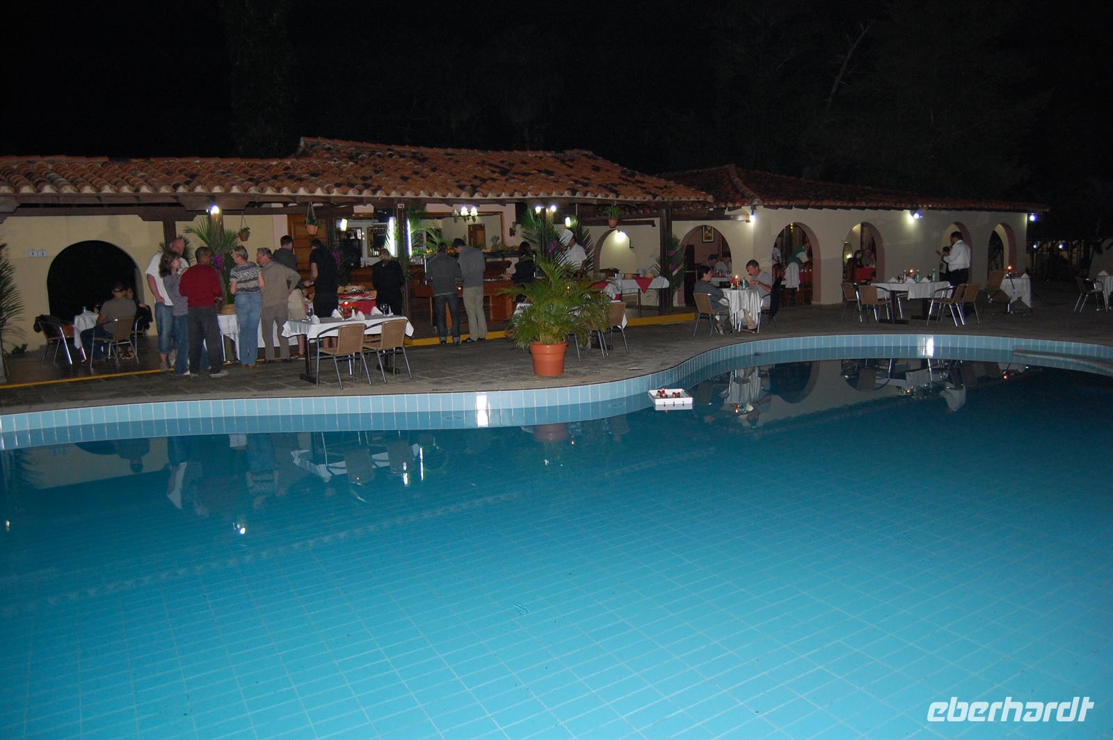 Das Restaurant unserer Hotelanlage überrascht uns zum Valentinstag mit einem Dinner am Pool und wir bedienen uns nach Herzenslust am Büffet.