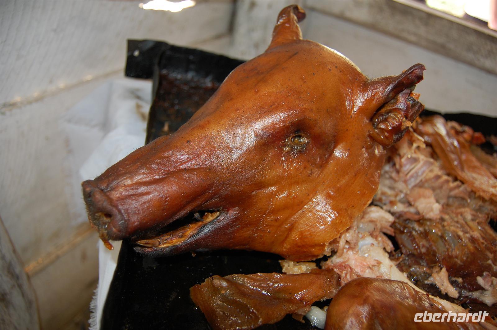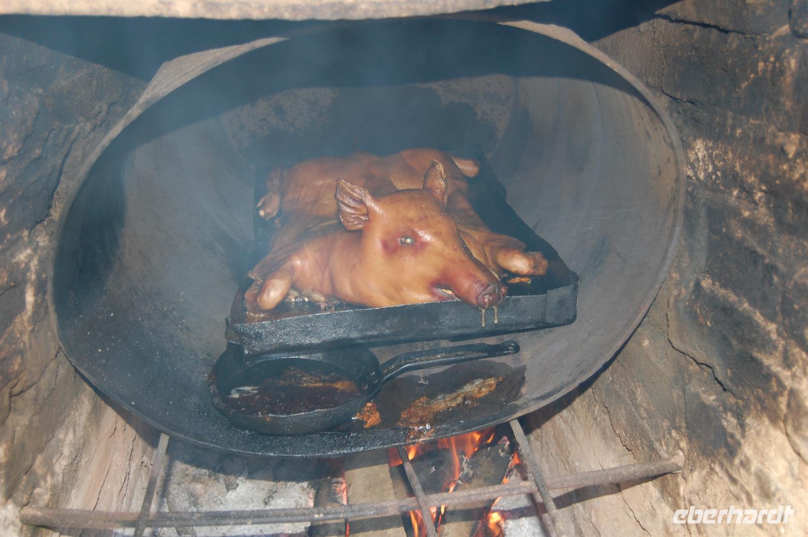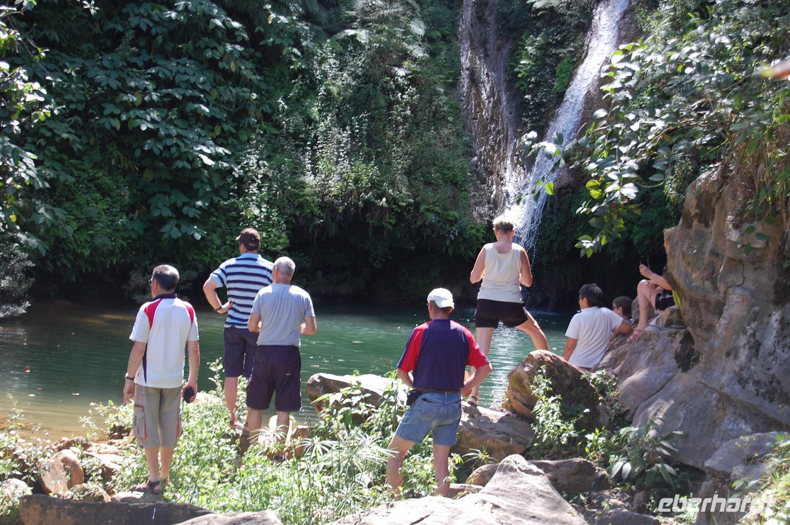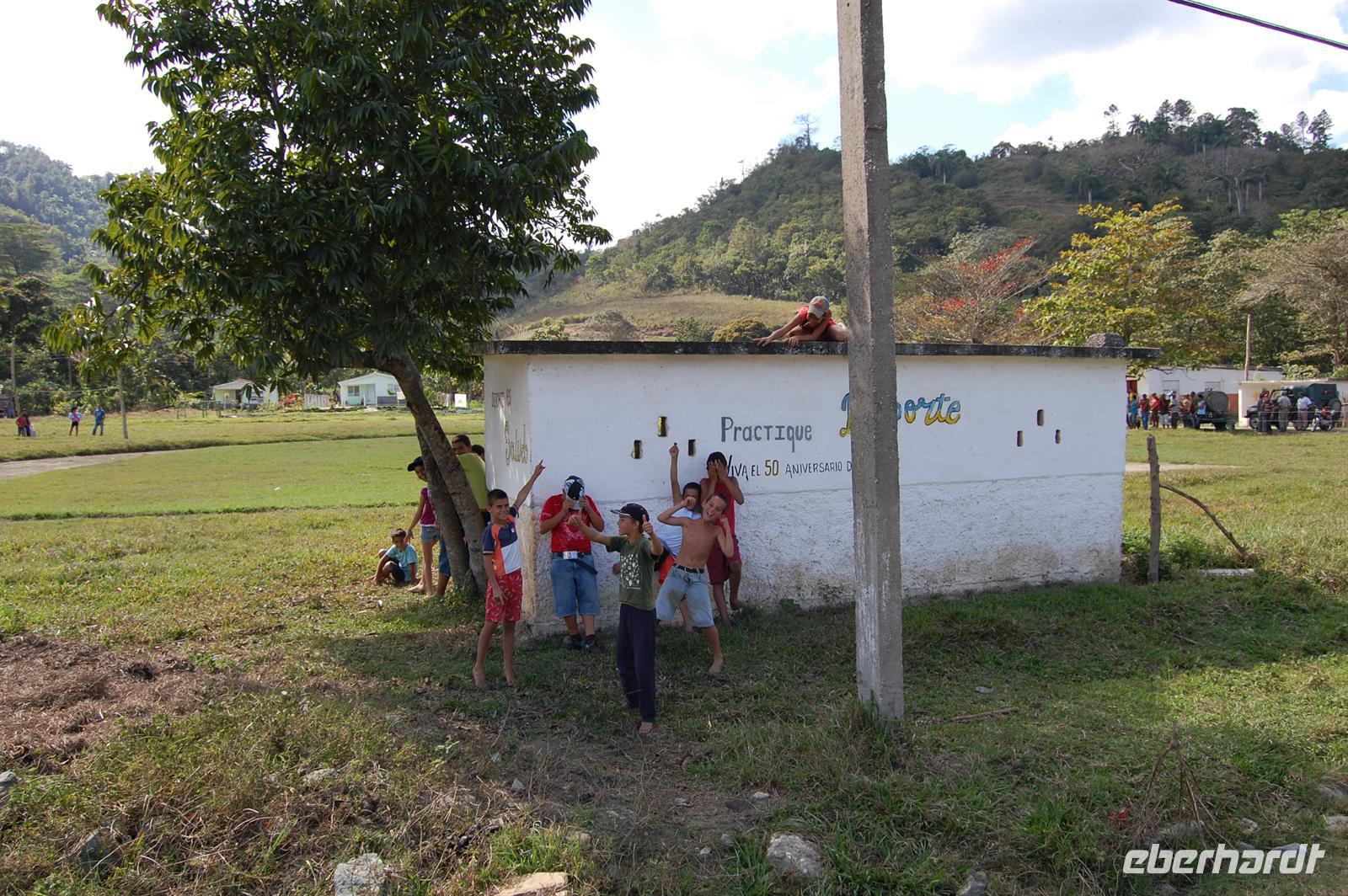 dem Land kennen. In einer einfachen aber sauberen Hütte leben die Eltern mit 2 Kindern zusammen. Obwohl es in der Küche nur ein offenes Feuer gibt, werden die Speisen schmackhaft zubereitet. Das Spanferkel wird im Garten gebraten. Dazu gibt es Maniok, Reis, verschiedene Früchte und Saft. Da die Zubereitung der Mahlzeit etwas länger dauert, unternehmen wir mit den Kindern der Familie eine Wanderung zu einem nahegelegenen Wasserfall, den einige für ein erfischendes Bad nutzen. Nach dem schmackhaften Mittagessen radeln wir weiter durch eine traumhafte Landschaft mit einer atemberaubenden Flora und Fauna. Nach einer endlos scheinenden Bergabfahrt gelangen wir schließlich zum Ziel unserer heutigen Radetappe, der Ortschaft Manicaragua. Hier verladen wir die Fahrräder in den Bus und legen die letzten Kilometer nach Santa Clara im Bus zurück. Am späten Nachmittag erreichen wir die Ferienanlage „Los Caneyes“, die nach den Ureinwohnern Kubas benannt wurde und sehr hübsch in diesem Stil gestaltet wurde.