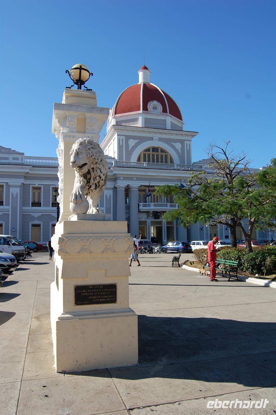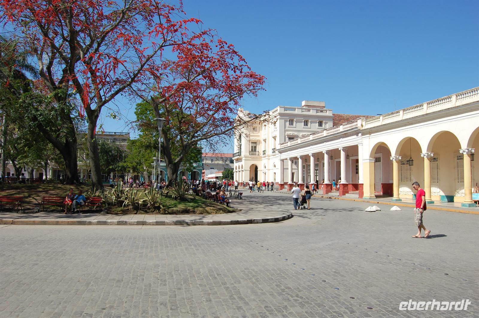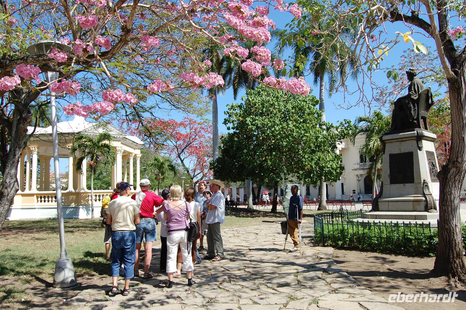Bei einem kleinen Stadtrundgang durch Santa Clara erläutert uns Miguel die Bauten rund um den „Parque