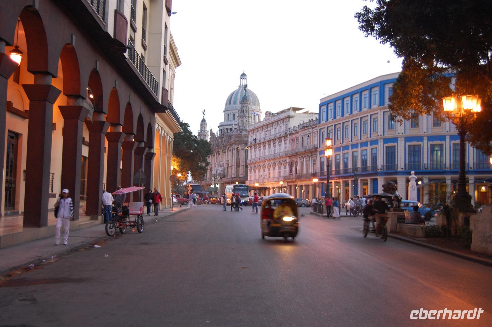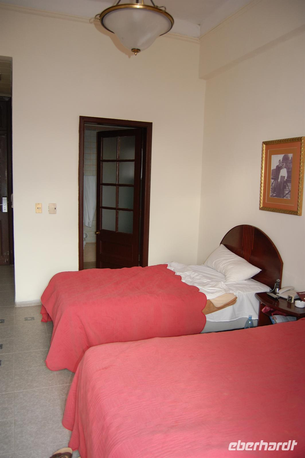 In Havanna gelandet, empfängt uns unser kubanischer Tour-Guide Miguel, der sich seine Deutschkenntnisse auf der Universität in Havanna aneignen konnte. Gegen Mitternacht erreichen wir das Hotel „Ambos Mundos“, einen mondänen Bau aus der Kolonialzeit im Herzen Havannas, wo der Schriftsteller Ernest Hemingway längere Zeit das Zimmer 511 bewohnte. Wir fallen müde in die rustikalen Betten unserer geräumigen Zimmer.