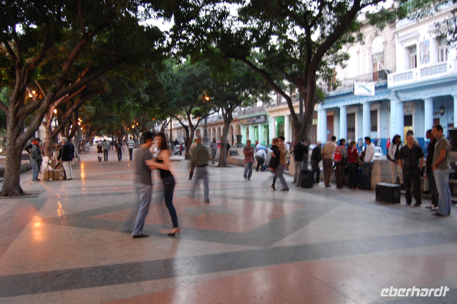 Nach einem gemeinsames Abendessen entschließen wir uns, zu einem Spaziergang nach Trinidad, wo wir die legendäre Treppe vor der „Casa de la musica“ aufsuchen. Dort finden sich jeden Abend viele Touristen ein, um den Salsa-Musikern auf der Bühne zuzuhören oder gar zu der Musik zu tanzen. Wir sind jedoch von der Radtour etwas müde und verlassen den Platz, um gegen Mitternacht wieder unsere Ferienanlage zu erreichen.