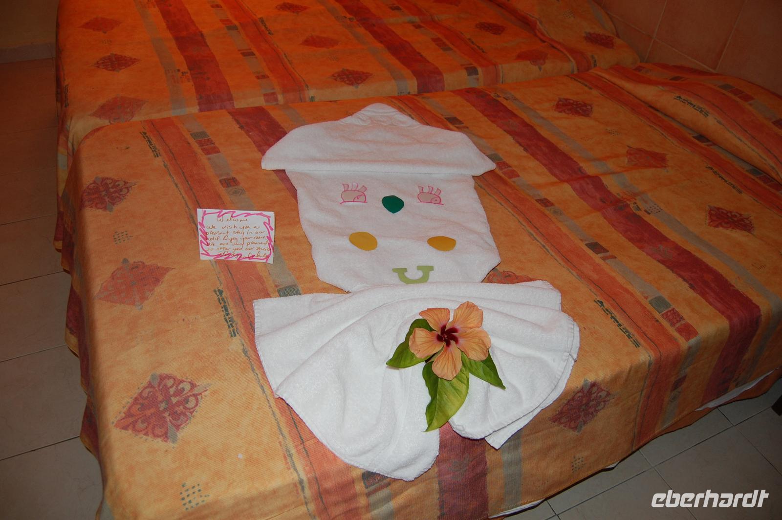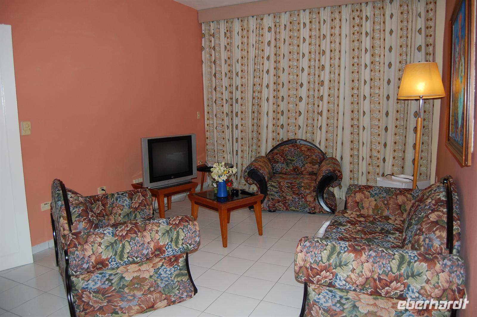Die Hotelanlage des „Sol Cayo Santa Maria ****“ bietet nicht nur geräumige Appartements in verstreuten Ferienhäusern an, sondern lässt uns beim Service, den „All Inclusive“ bietet, die Strapazen der vergangenen Tage vergessen. Ob bei den Mahlzeiten, am Strand, an der Poolbar oder bei den Abendveranstaltungen genießen wir den Urlaub in vollen Zügen. Mit dem Wissen, dass zu Hause der Winter regiert, liegen wir bei 30°C und einem kühlen Mojito am Strand.