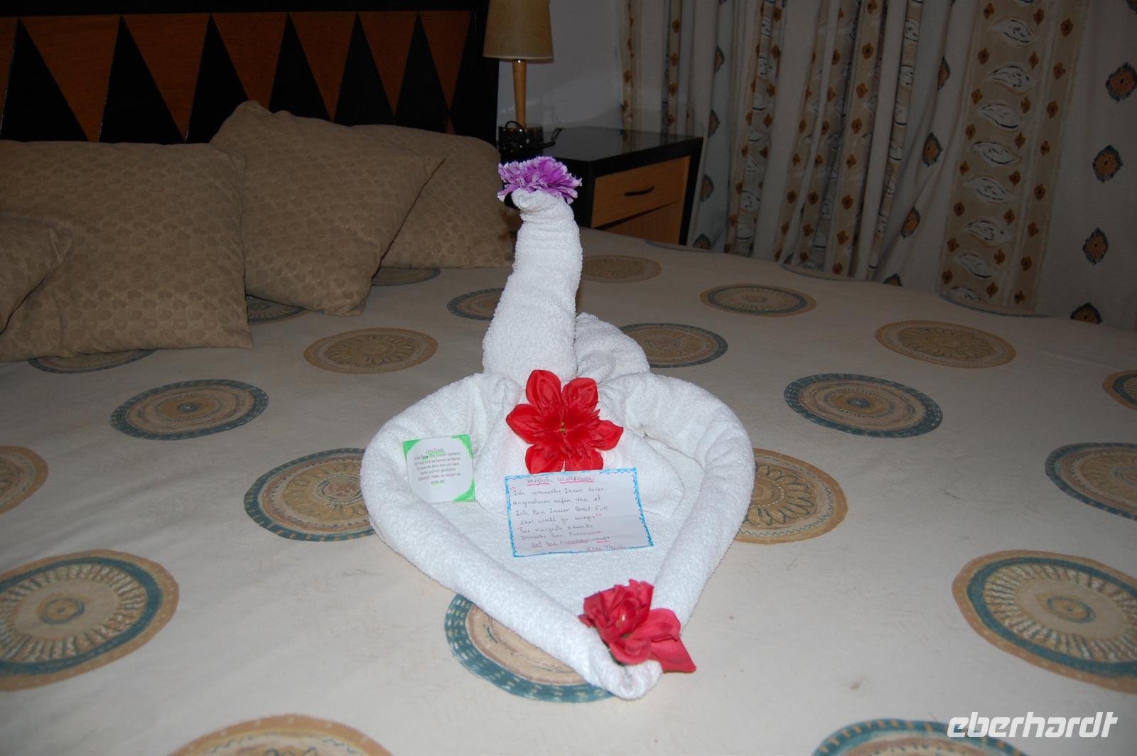 einem ruhigen Tag am Strand treffen wir uns um 18.30 Uhr und kehren zum Abendessen in das Restaurant ein. Bei einem leckeren 3-Gang-Menü nach italienischer Art, spanischem Wein und einem frostigen Wind aus der Klimaanlage bereiten wir auf den Rückflug nach Europa vor. Wieder wird eine neue Bühnen-Show mit Fakir und Feuerschluckern im Teatro aufgeführt.