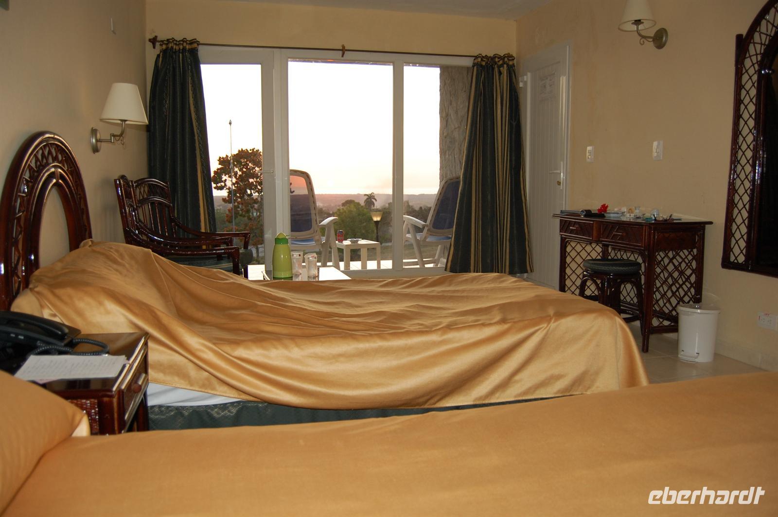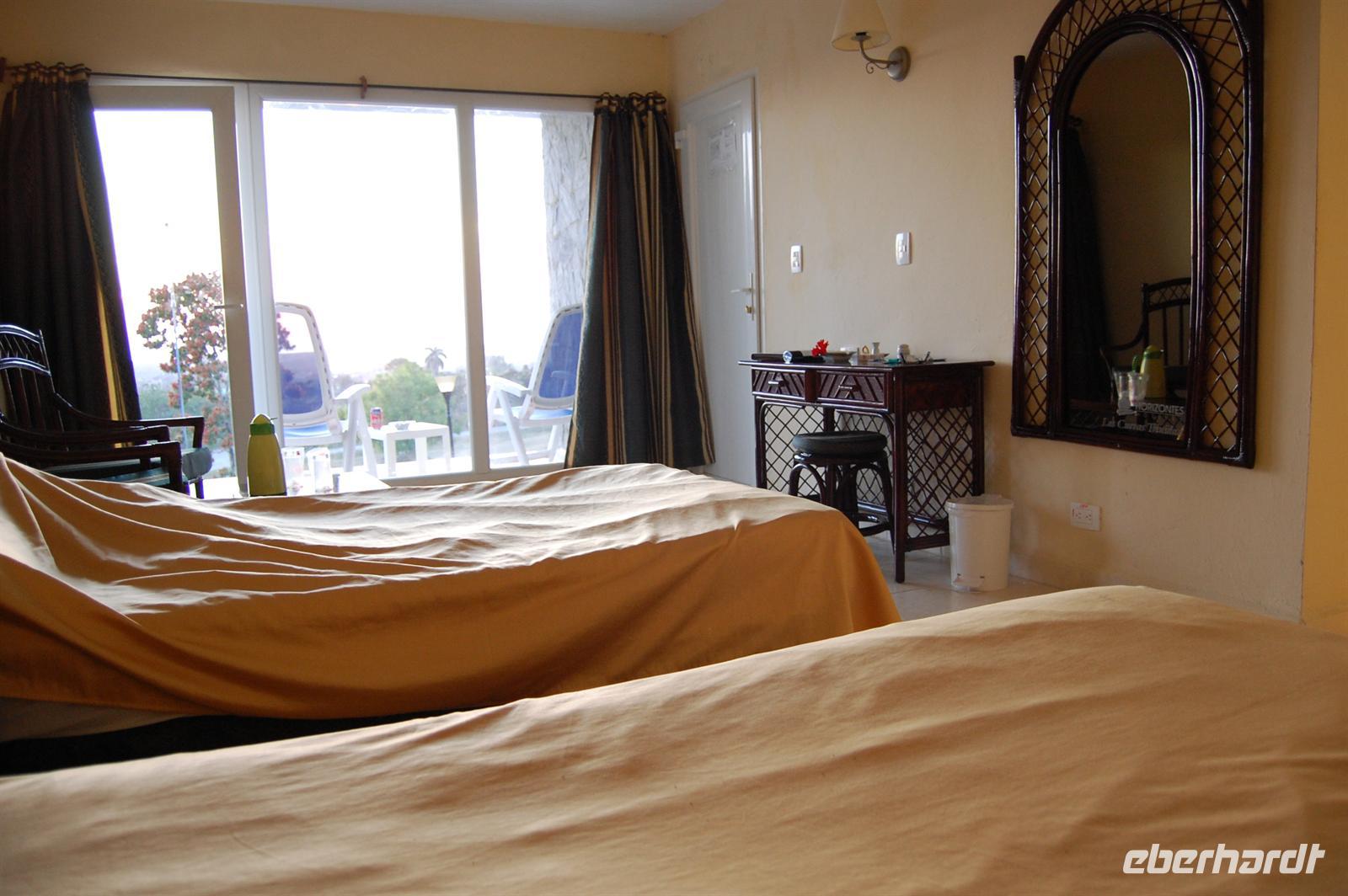 vor den Toren der Perle des Südens, wie Cienfuegos auch genannt wird. Nach einer interessanten Führung und unzähligen Fotomotiven verabschieden wir uns von der Gartenexpertin. Per Rad beginnt nun die Tour nach Trinidad. Entlang der Ausläufer der Sierra del Escambray umfahren wir dieses Gebirge westlich. Die hüglige Strecke geht tendenziell bergab und bietet sehr schöne Landschaften. Nach einem kurzen Mittagssnack erreichen wir wieder das karibische Meer wo wir an einer geeigneten Stelle einen Badestopp einlegen. Die letzten Kilometer zu unserer Unterkunft nehmen wir den klimatisierten Reisebus in Anspruch und erreichen am späten Nachmittag unsere Hotelanlage „Las Cuevas“, oberhalb des Städtchens Trinidad.