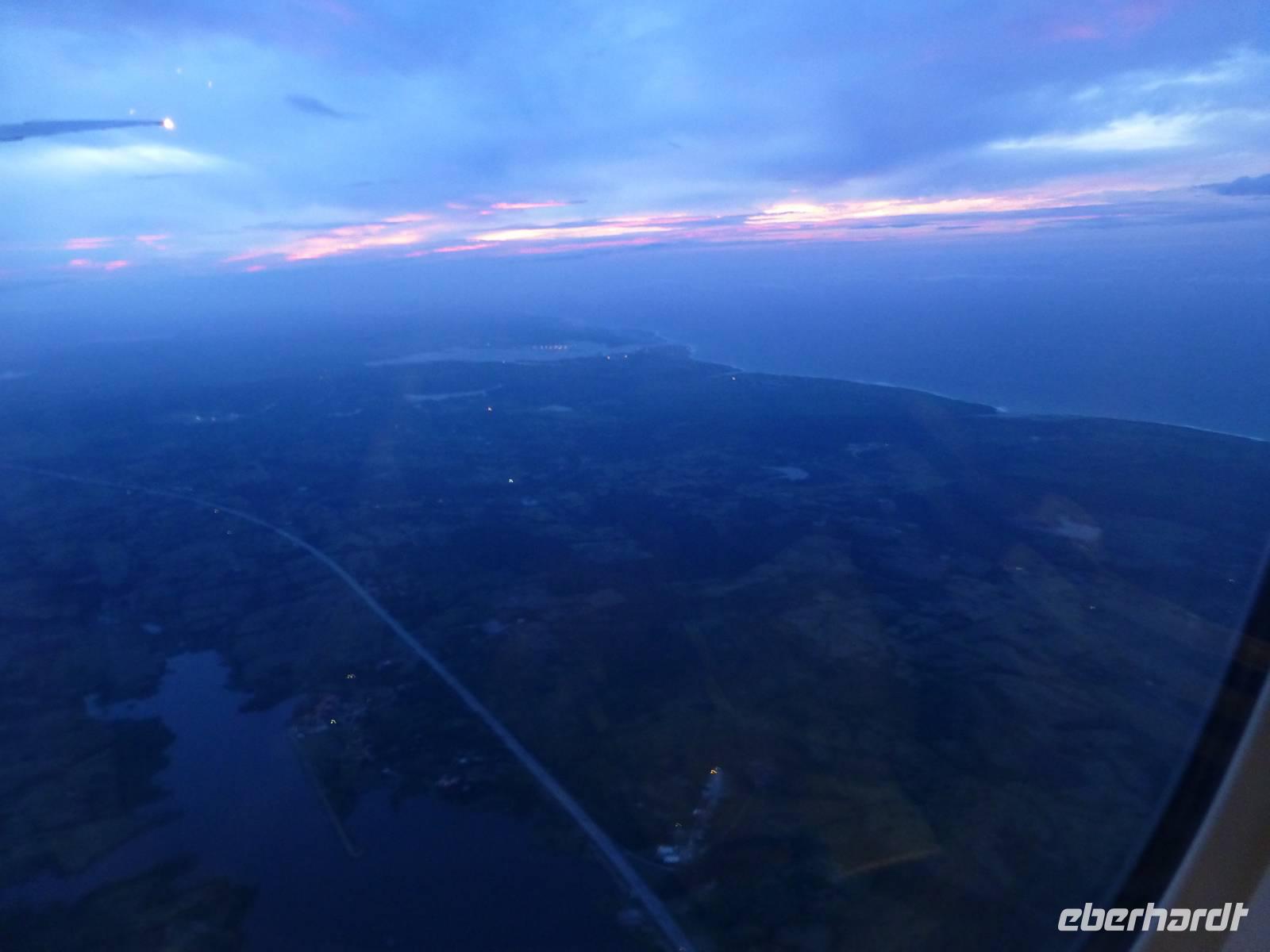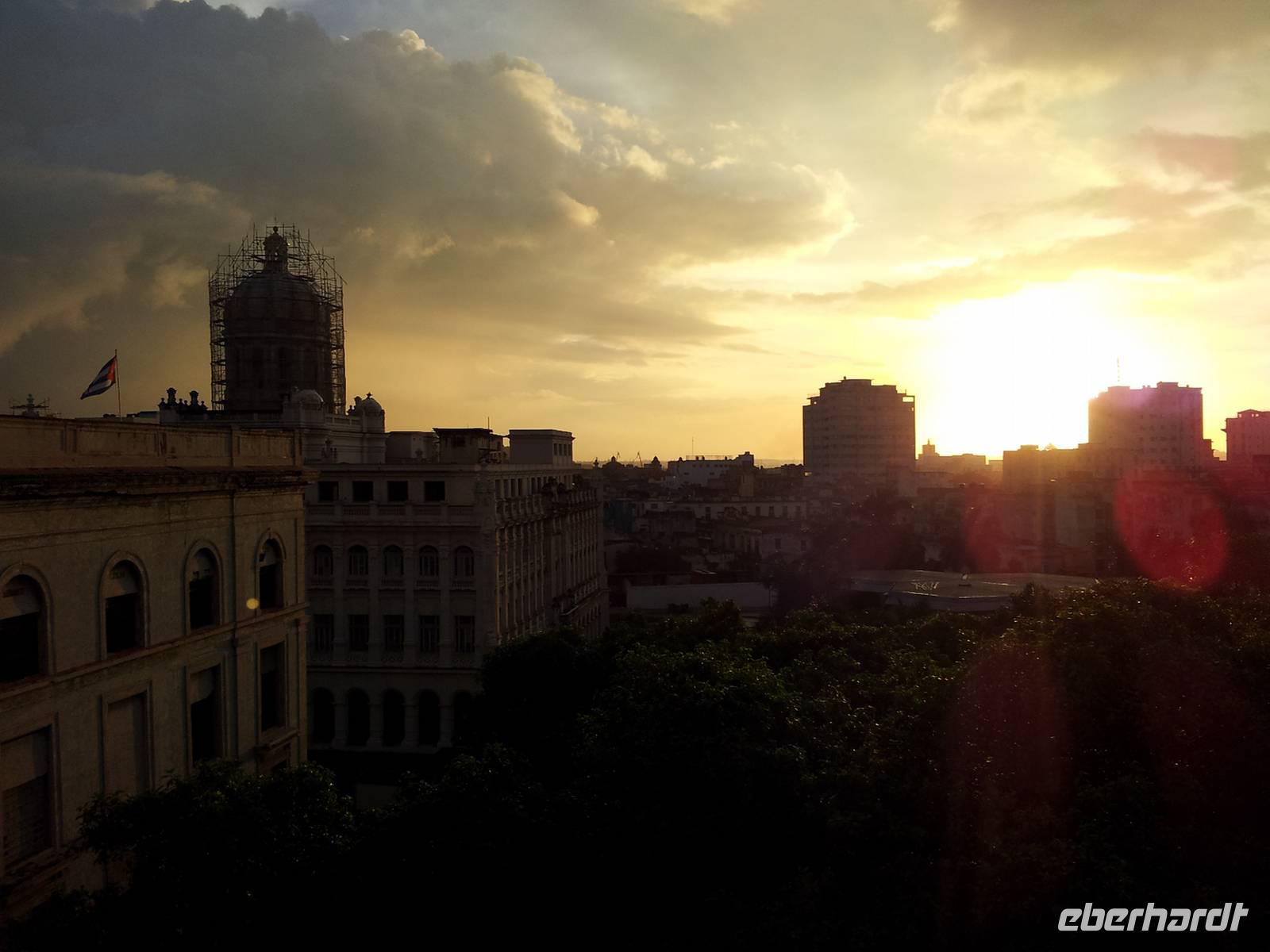 Vor der Landung in La Havanna flogen wir über die Inseln Freetown und Nassau und auch nicht so weit von Key West, und bestaunten eine perfekte Linie der Meeresfarben grün und blau. Wir wurden von einem schönen orangenen Sonnenuntergang bei der Landung begrüßt und brauchten fast eine Stunde um das Gepäck zu holen und die individuelle Passkontrolle mit Bildern zu machen.