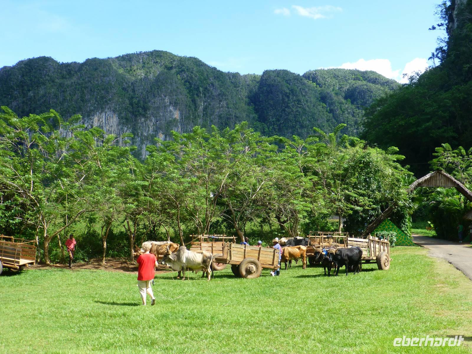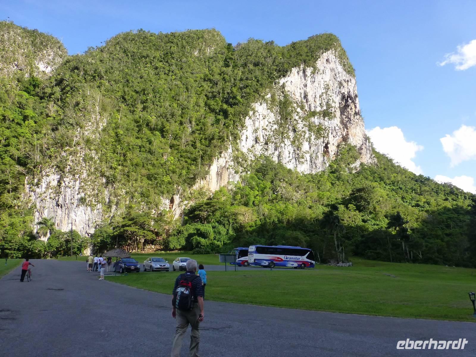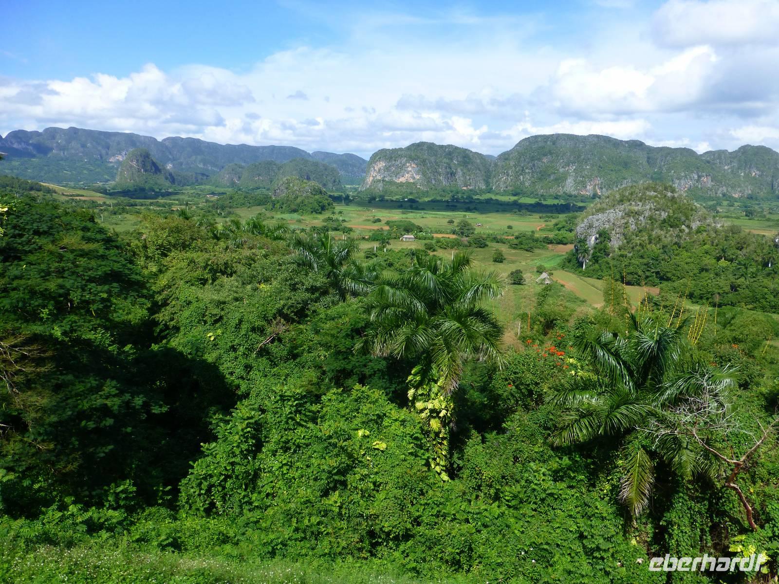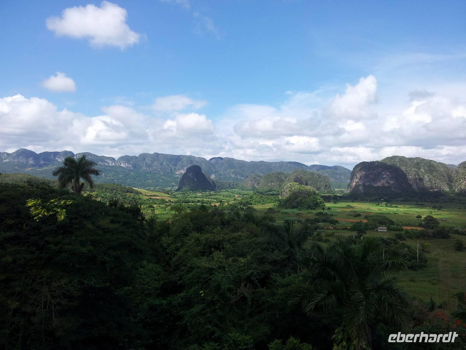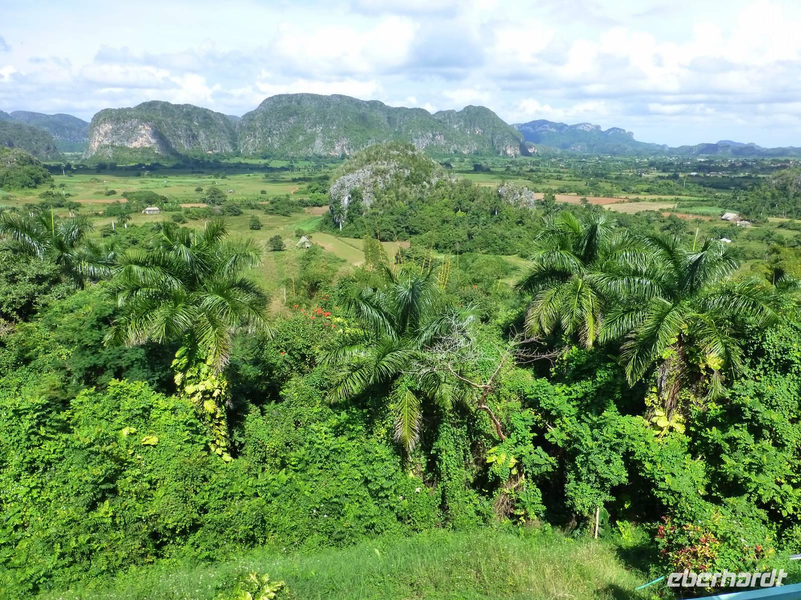 Um 11 Uhr fuhren wir weiter bis zum „Los Jazmines", ein herrlicher Panorama-Aussichspunkt um das Tal und seine komischen Hügel zu betrachten. Es erinnerte uns alle an ein berühmtes Bild von Thailand, aber ohne Meer. Das wunderschöne Vinales-Tal ist berühmt für seine einzigartigen Felsnasen, die sogenannten Mogotes.