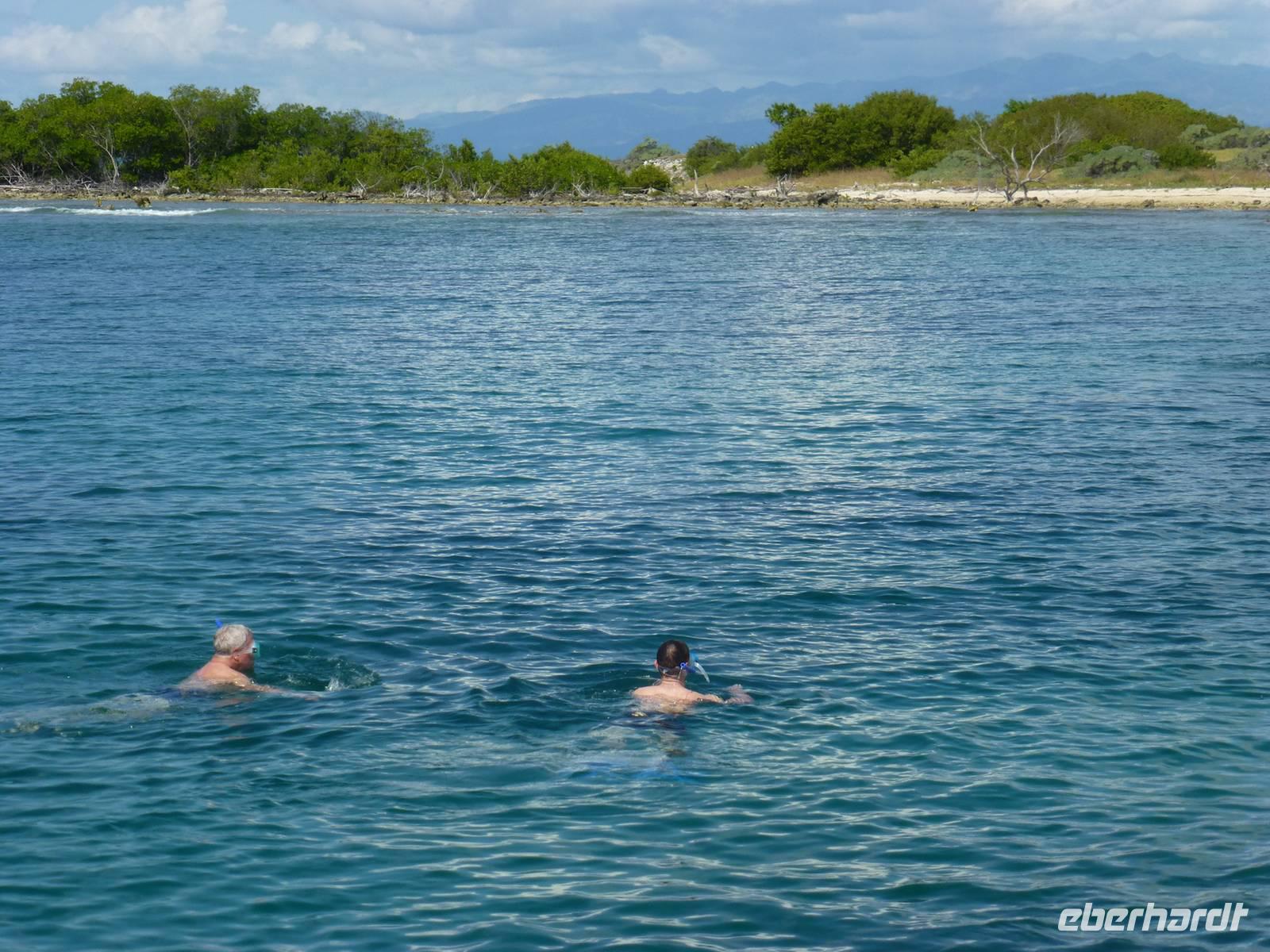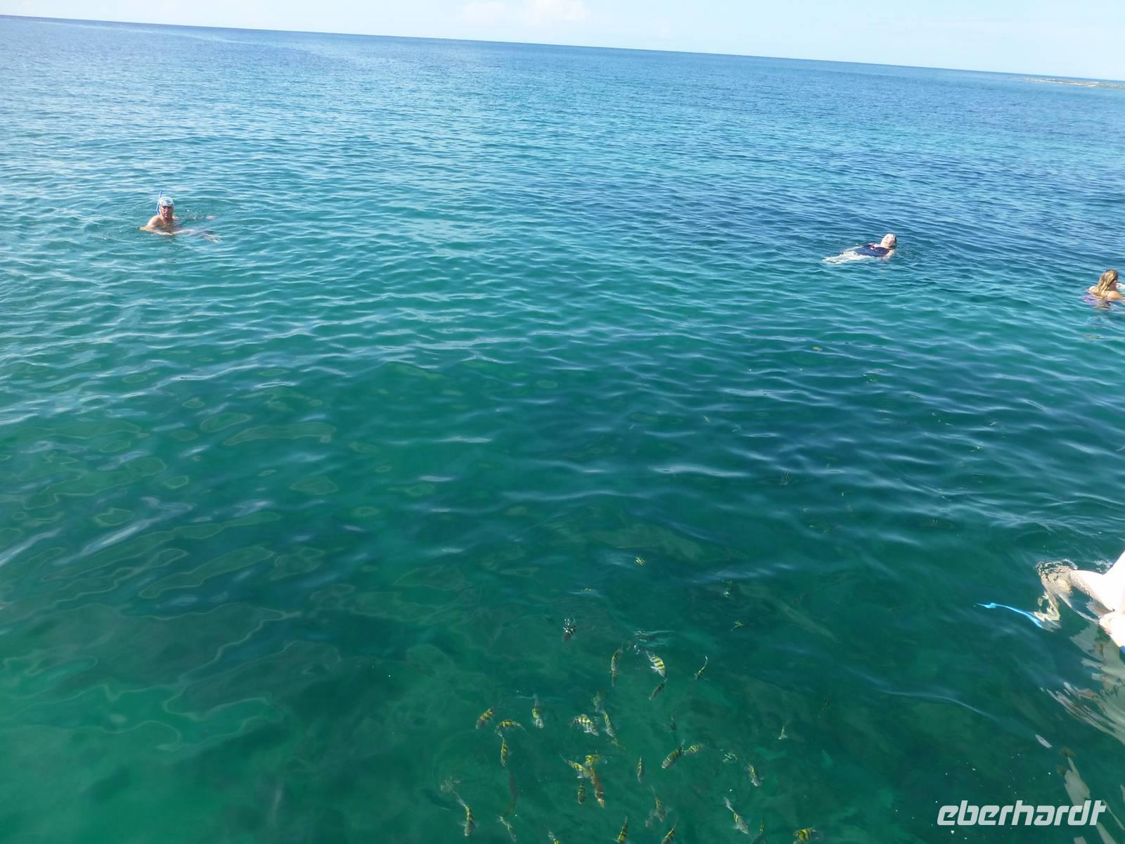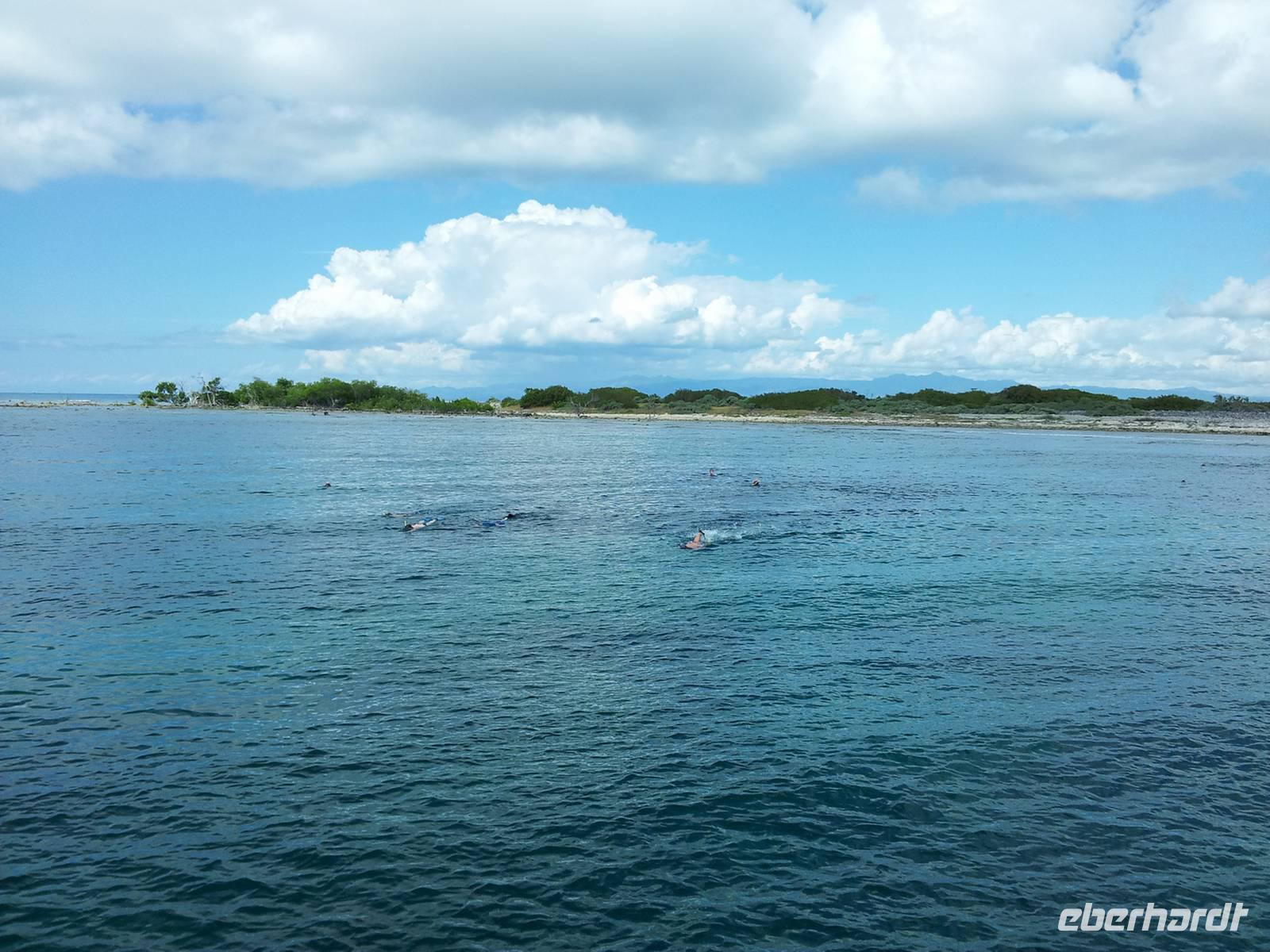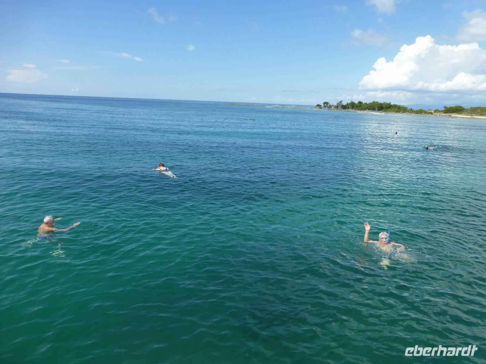 Nach dem Essen hatten wir Zeit um noch einmal zu baden oder ein Nickerchen unter den Palmen zu halten. Leider gab es hier Seeigel, die man unter den Steinen im Wasser nicht richtig sehen konnte und einige der Gäste hatten etwas Pech uns sind im Wasser mit der Hand oder dem Fuß auf Seeigel gestoßen. Es war nicht so schlimm aber wir lernten daraus, dass man nur wo purer Sand war baden sollte um sie zu vermeiden.