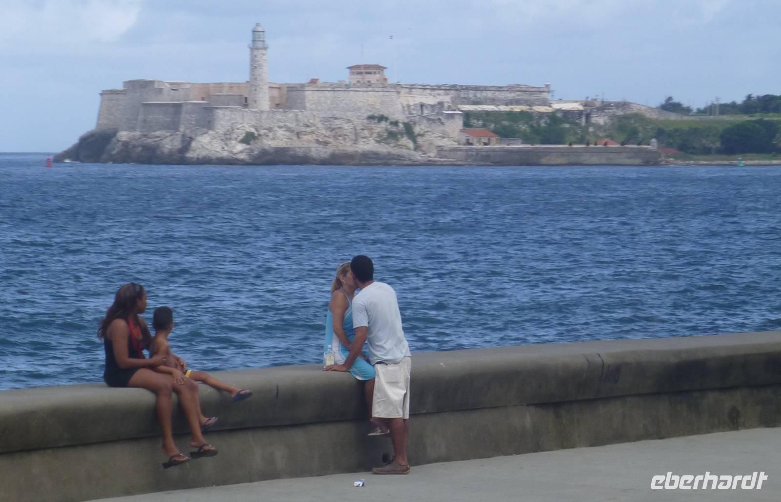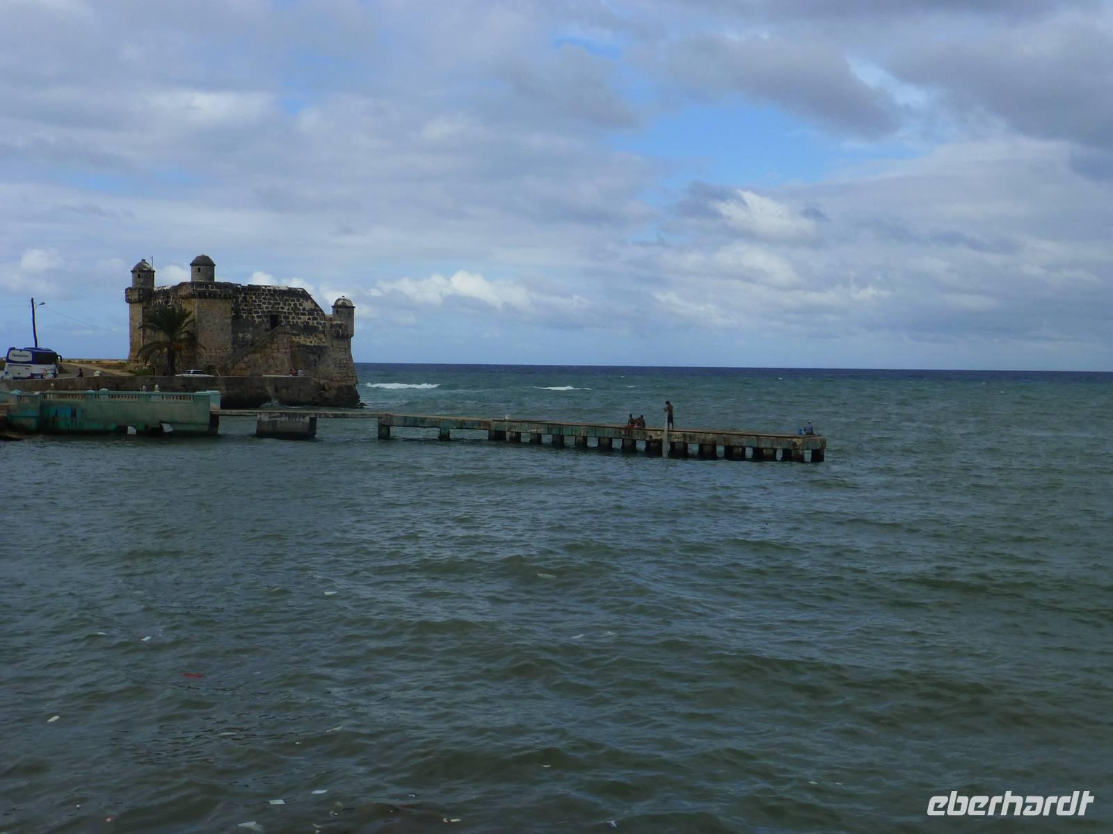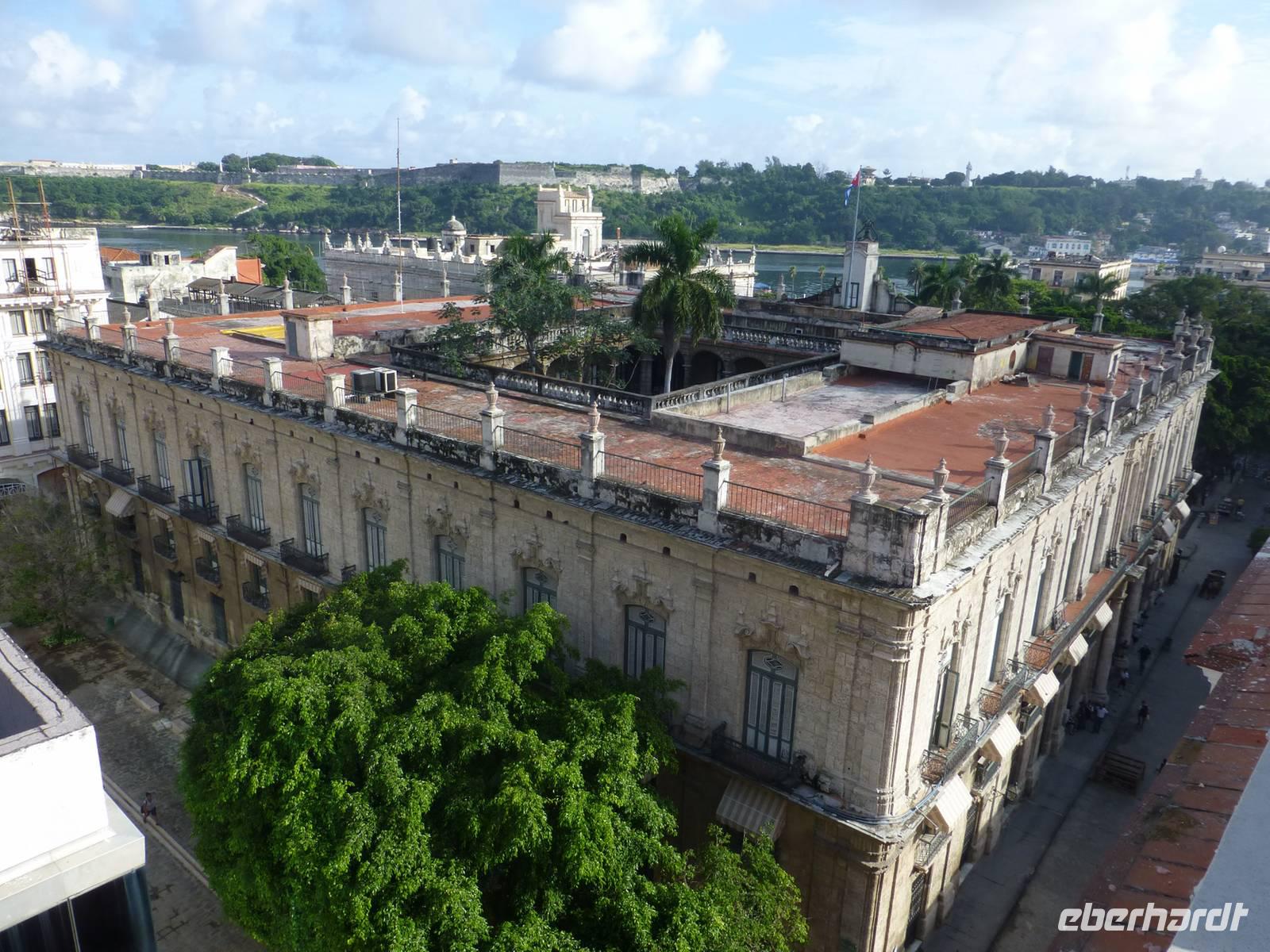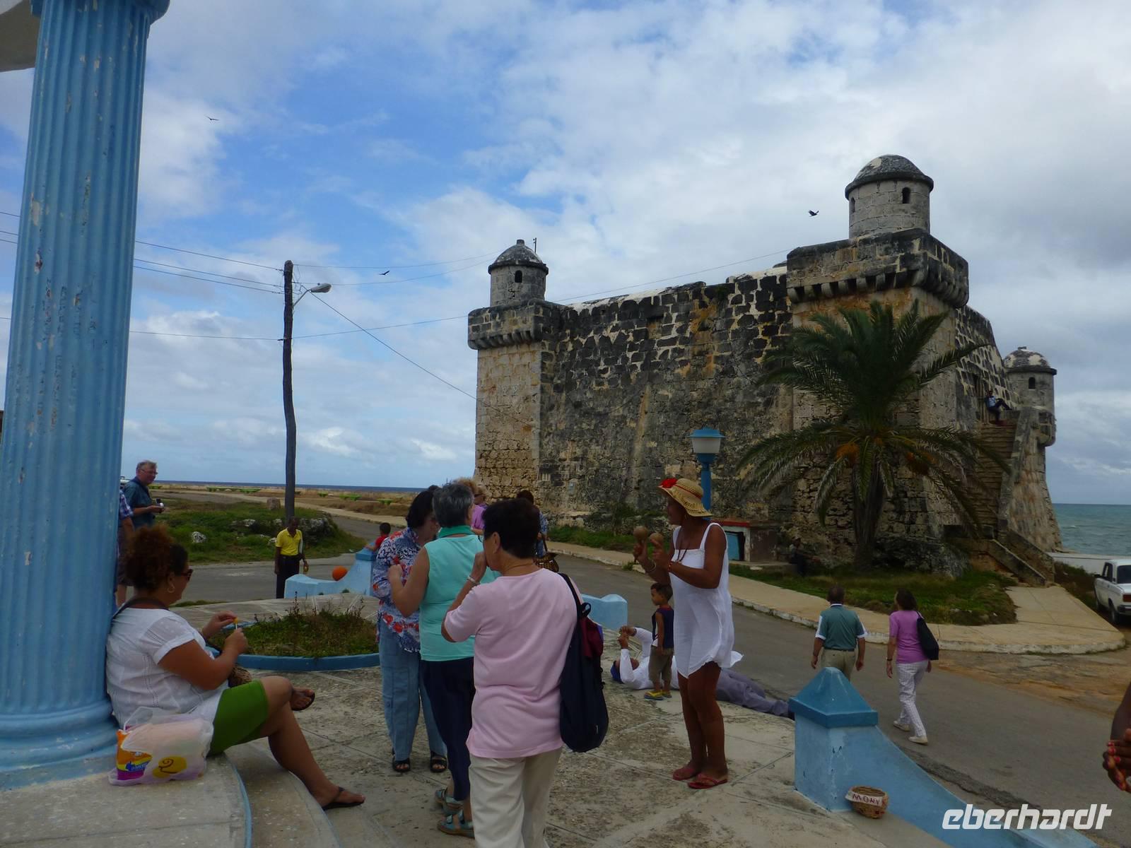 Wir fuhren bis zum Ende der Stadt, zum Ende des Paseo del Prado, der direkt auf die charmant-karibische Halbinsel Punta Gorda führt. Der hier gelegene Palacio del Valle zählt mit seinen gotischen, venezianischen und maurischen Motiven zu den architektonischen Schmuckstücken von Cienfuegos und bietet einen wunderbaren Ausblick über die Bucht der Stadt. Ganz oben auf der Terrasse wartet eine Überraschung auf uns von Eberhardt: eine Cuba Libre als Erfrischung und einen, wie schon gesagt, unvergleichbaren Ausblick auf die Bucht von Cienfuegos.