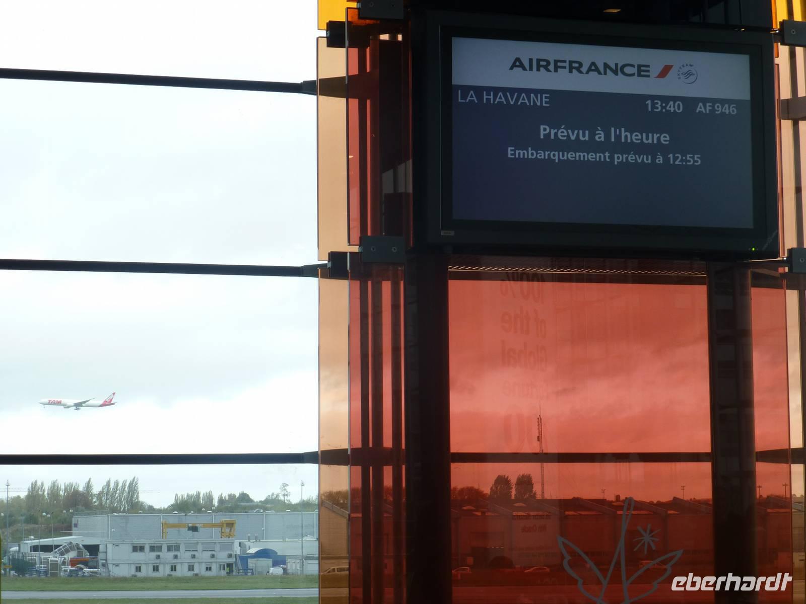 Nach der Zwischenlandung in Paris ging es weiter nach Havanna. Während des Fluges drehten wir die Uhren sechs Stunden zurück um den fast 10 Stunden langen Flug als kürzer betrachten zu können.