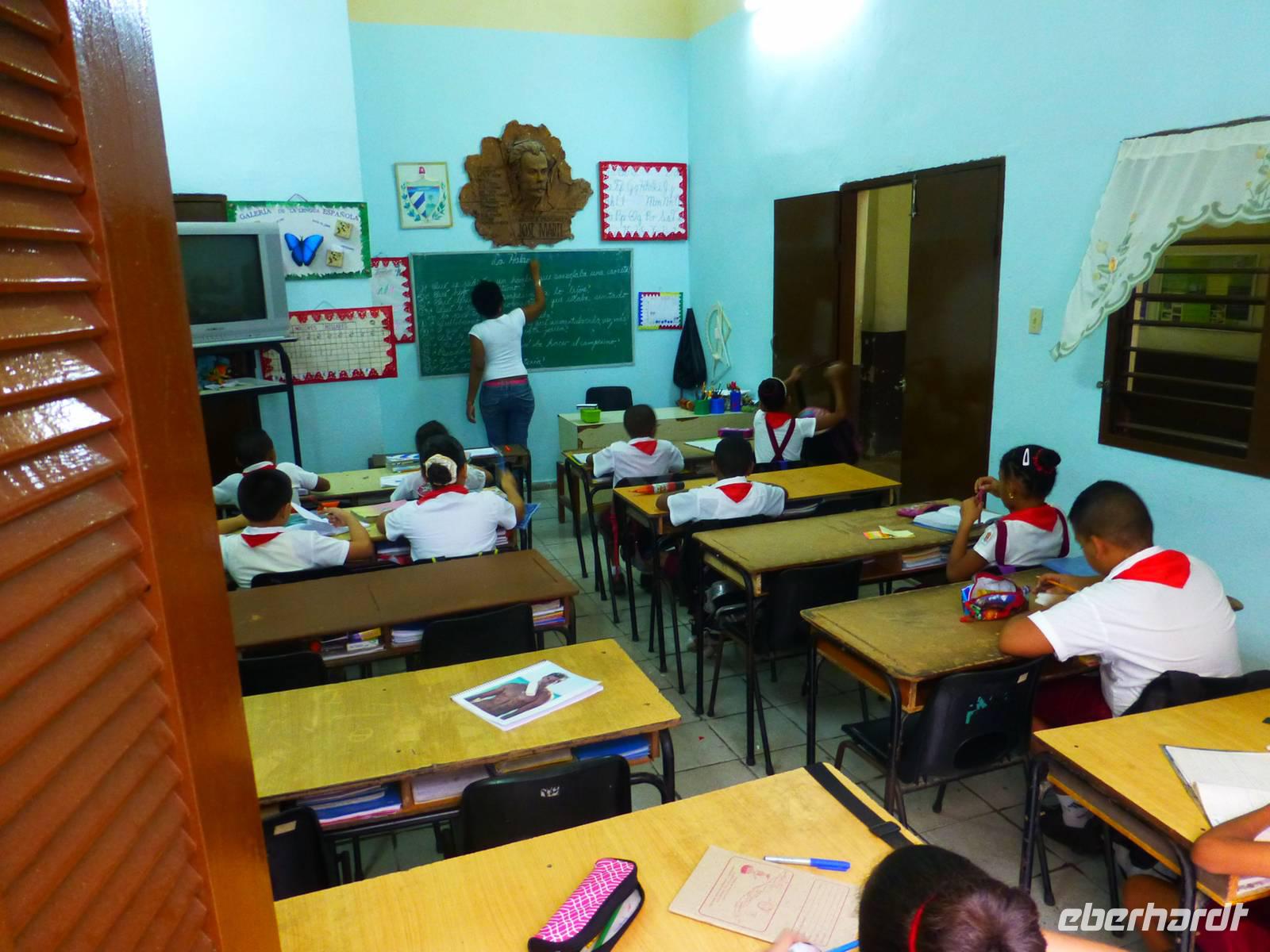 Nach noch einem unvergesslichen Frühstück auf der 6. Etage des Hotels, freuten wir uns alle auf den Tag der Hemingway gewidmet ist. Warum er so beliebt in Kuba ist und aber vor allem warum er sich in Kuba verliebt und was für eine Bedeutung diese Insel für ihn hatte. Wir werden erfahren wie ihn die amerikanische Regierung und das FBI unterdrückten um dieses Land zu verlassen. Aber vorher fing der Tag mit einer kleinen Überraschung an: der Besuch einer Schule. Die Lehrerin machte eine Pause im Spanisch Unterricht und wir konnten ihr einige Kugelschreiber schenken damit sie diese später alle weiter verteilen konnte.