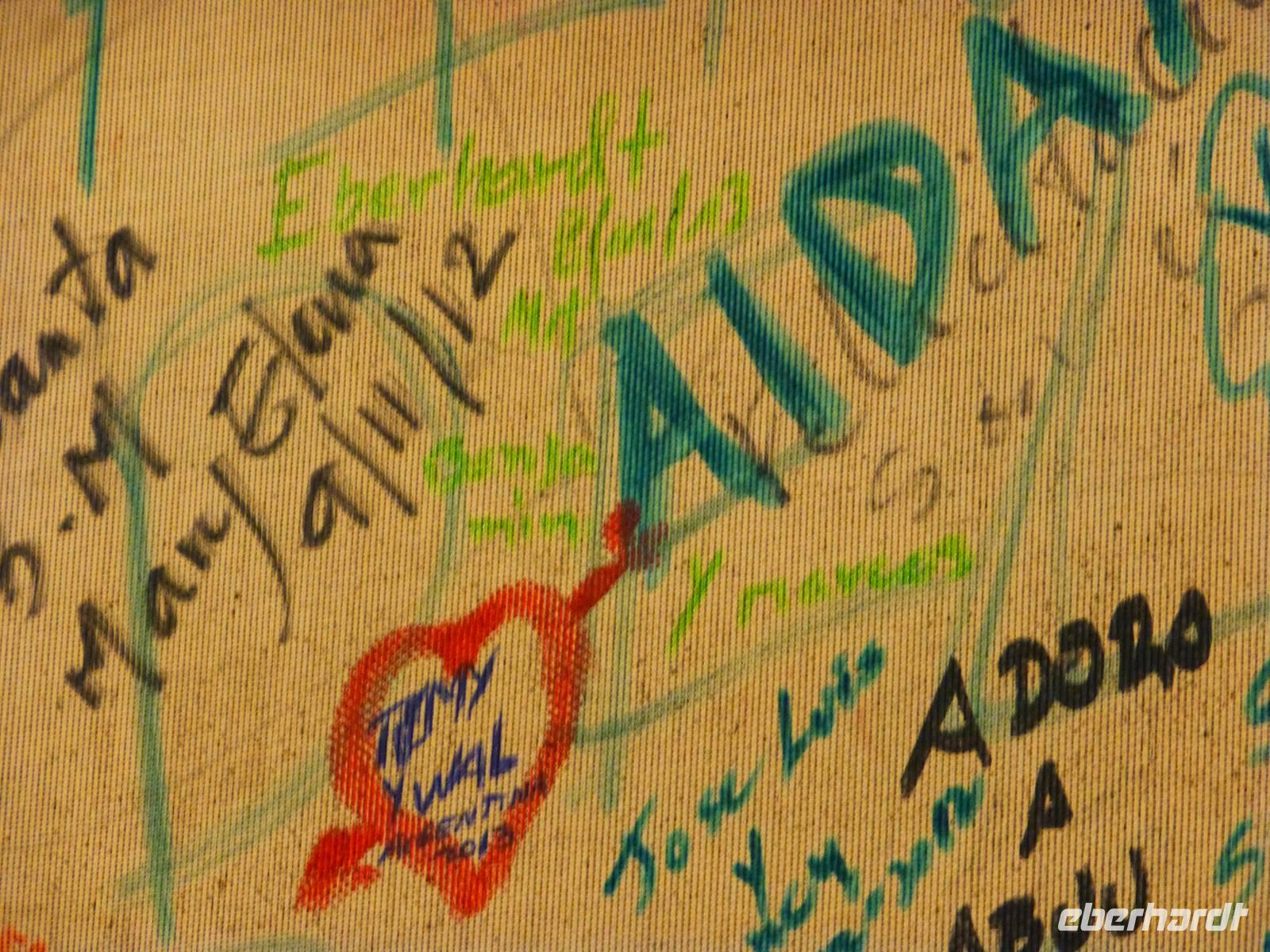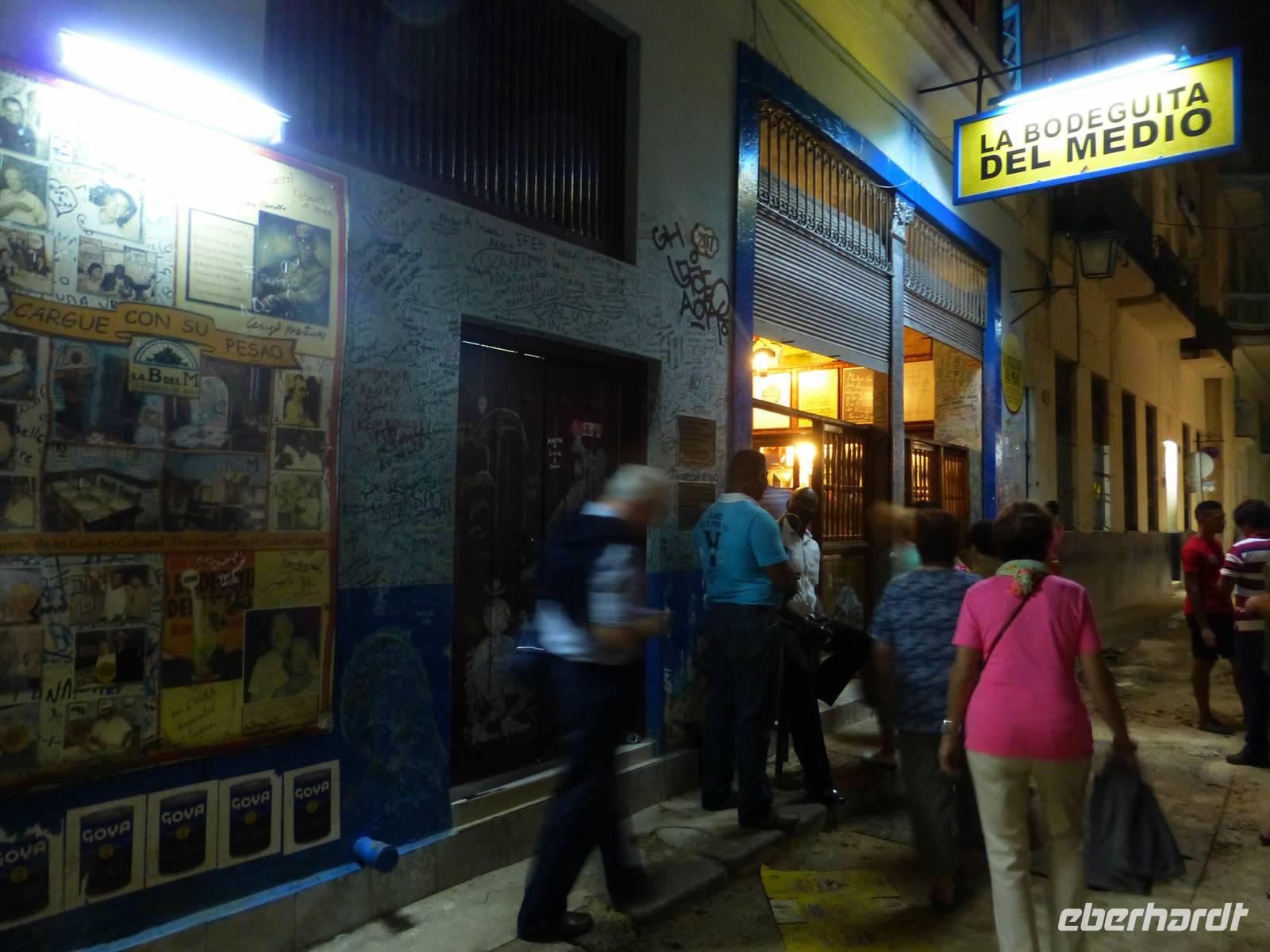 Um 19:30 Uhr trafen wir uns in der berühmten Kneipe von Hemingway, in der „Bodeguita del Medio". Unter den leckeren Tapas war die „Ropa Vieja" (eine Art Rindfleischgulasch) besonders gut, die man hier und auf den Kanaren essen kann. Die Musik war wie immer dabei als wir assen und wir konnten unsere Namen auf den Wänden der Kneipe für die Ewigkeit hinterlassen.