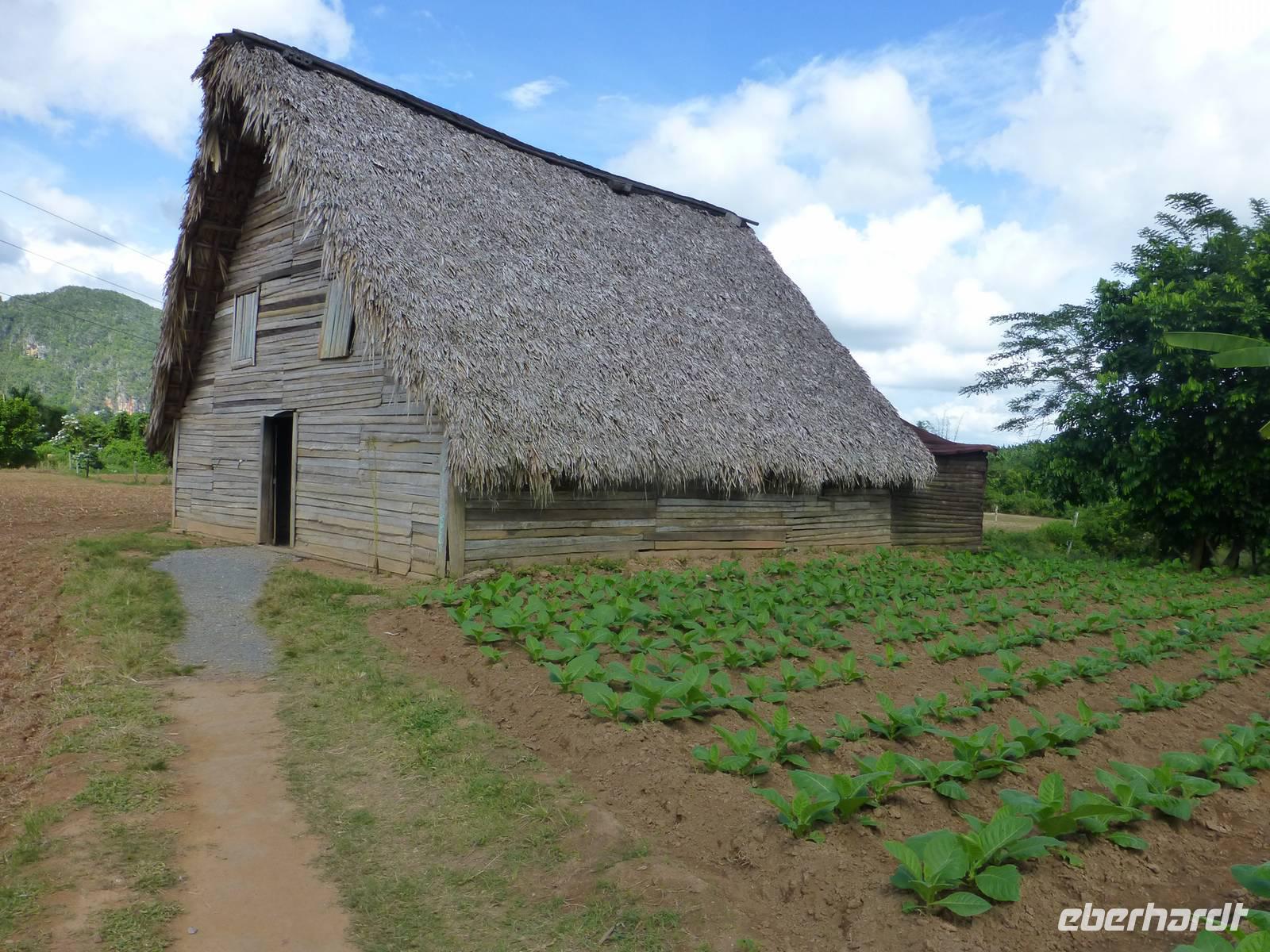 Wir befinden uns in der westlichsten Provinz Kubas, Vinales, wo der beste Tabak der Welt wächst. Wir besuchten einen Bauernhof, „Casa del Veguero", um zu sehen wie man die Tabakblätter trocknet. Das Casa „Veguero" ist ein typisches Haus eines Tabakbauerns. Als Überraschung und Erfrischung bekamen wir hier einen grünen Cocktail mit Pfeferminz.