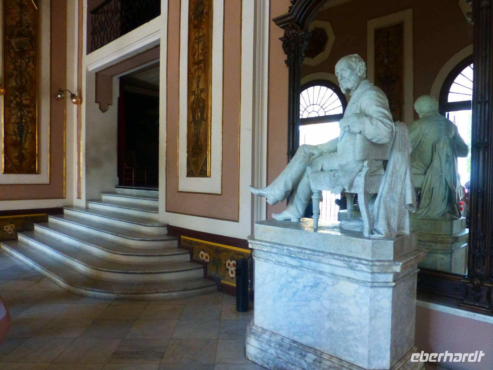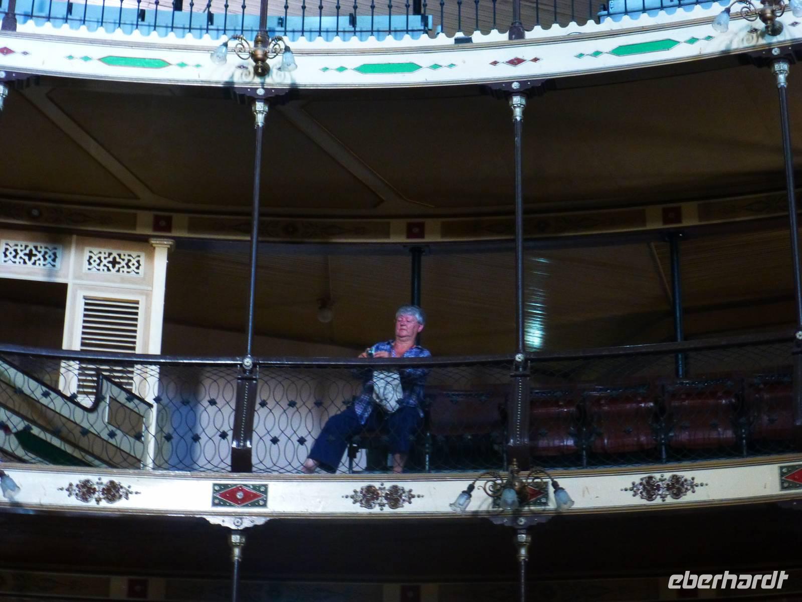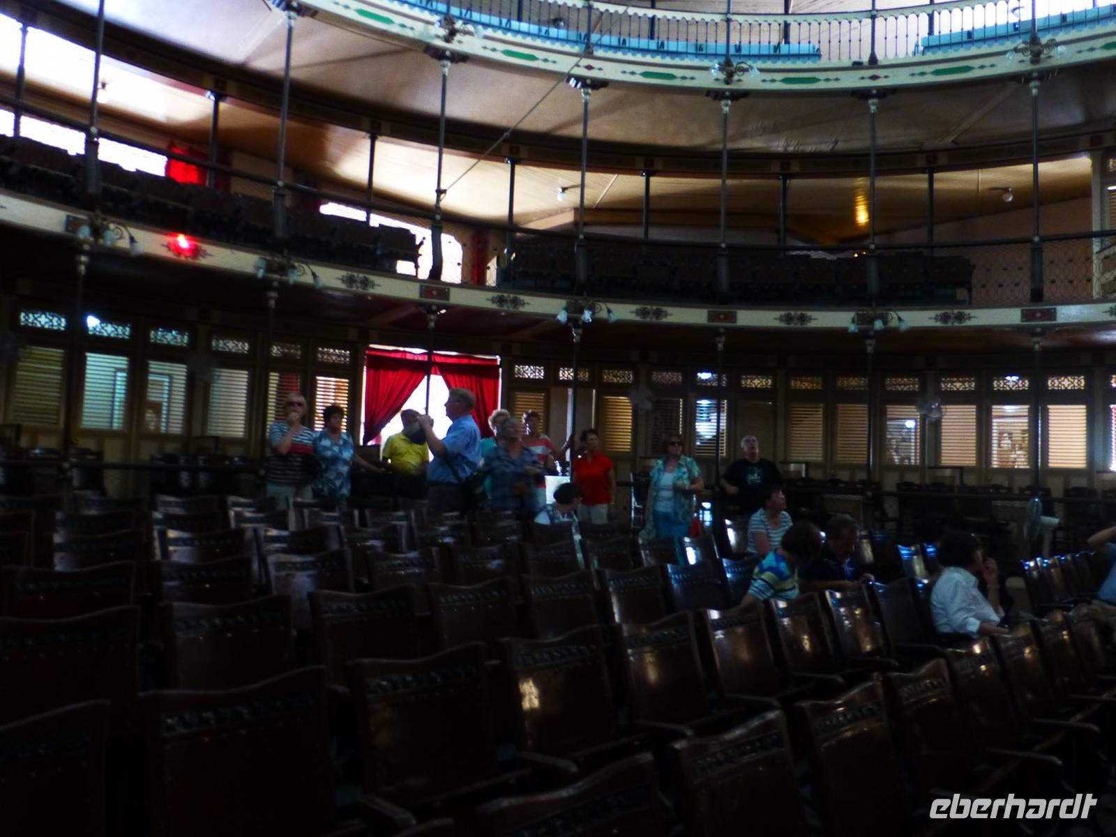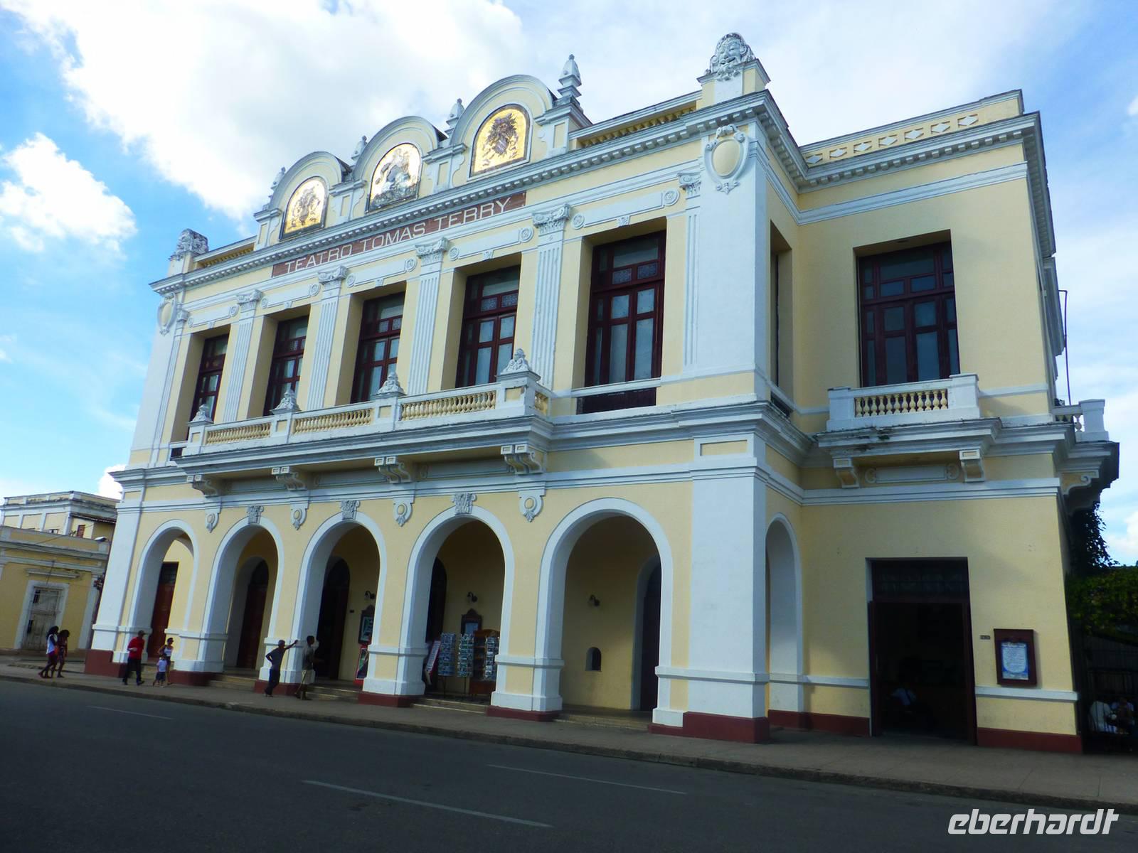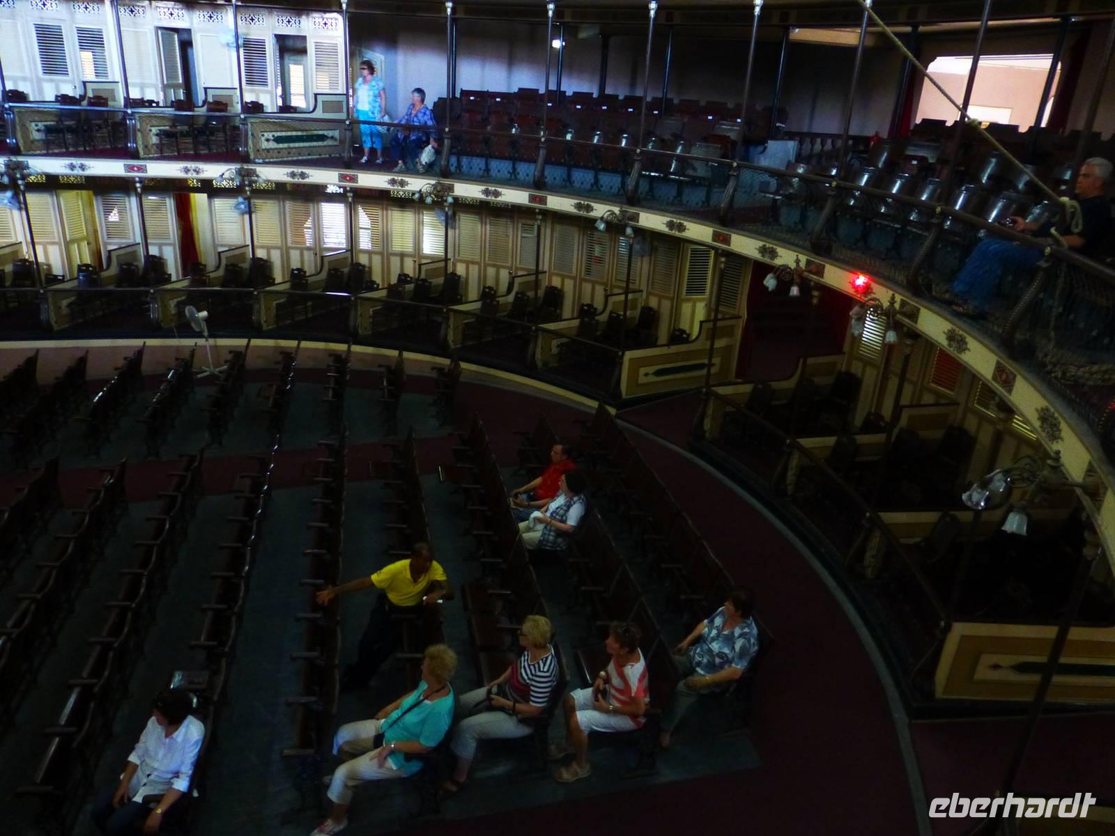 Um 14:30 Uhr fuhren wir zum Stadtzentrum weiter, wo wir das berühmte Theater „Teatro Therry" besuchten, in dem Verdi gespielt wurde und Carusso zu Gast war. Zweimal wurde das Theater mit dem Aida Meisterstück ausgezeichnet. Sehr schön anzusehen waren auch das Rathaus und der große Platz von Cienfuegos.