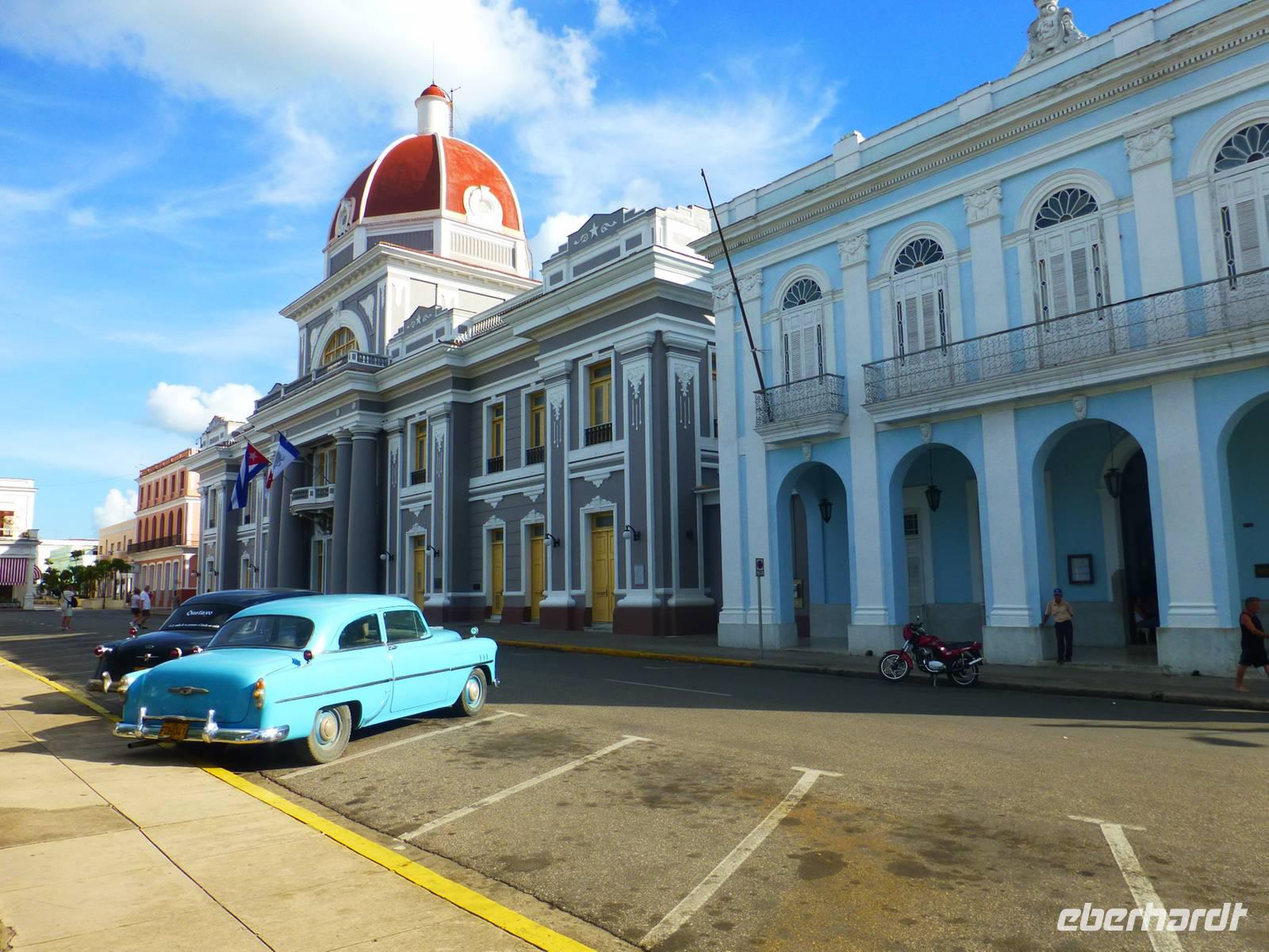Kurz nach dem Mittag erreichten wir Cienfuegos. Die Stadt zählt mit ihrem franzosischen Flair zu den hübschesten und lebhaftesten Städten der Insel. Die Stadt Cienfuegos wurde 1819 durch Jean Louis de Cleau gegründet und ist bekannt als die Perle des Südens. Alles ist sauber und gepflegt. Und seit dem 7. Juli 2005 gehört sie zum UNESCO-Weltkulturerbe. Im restaurierten kolonialen Zentrum bestaunen wir viele architektonische Sehenswürdigkeiten.