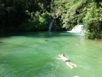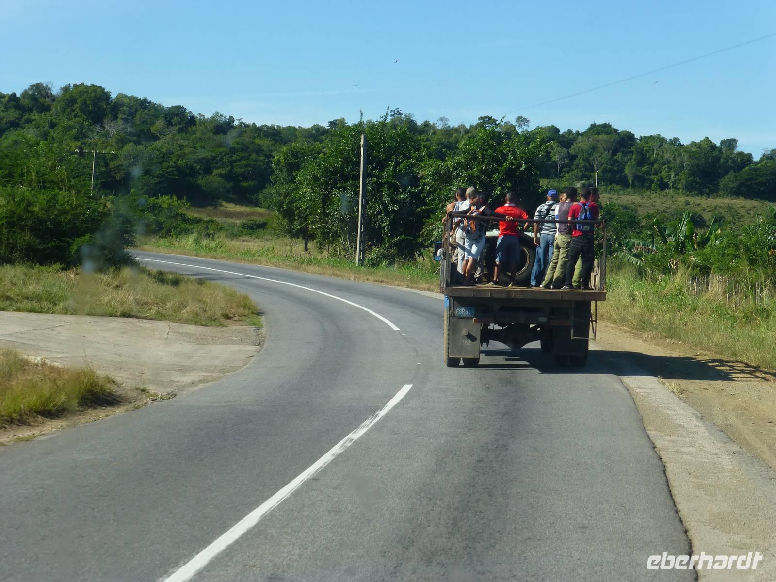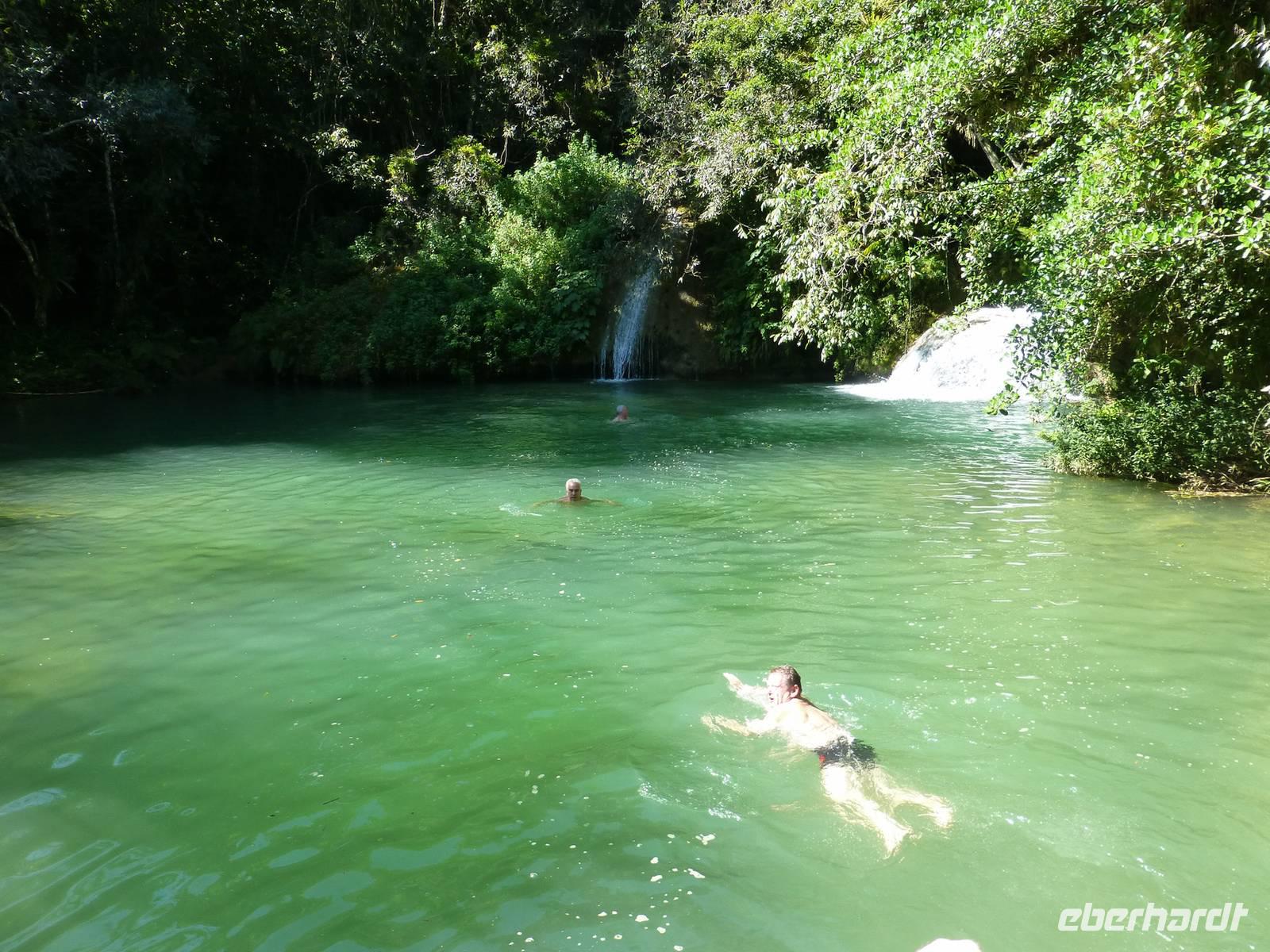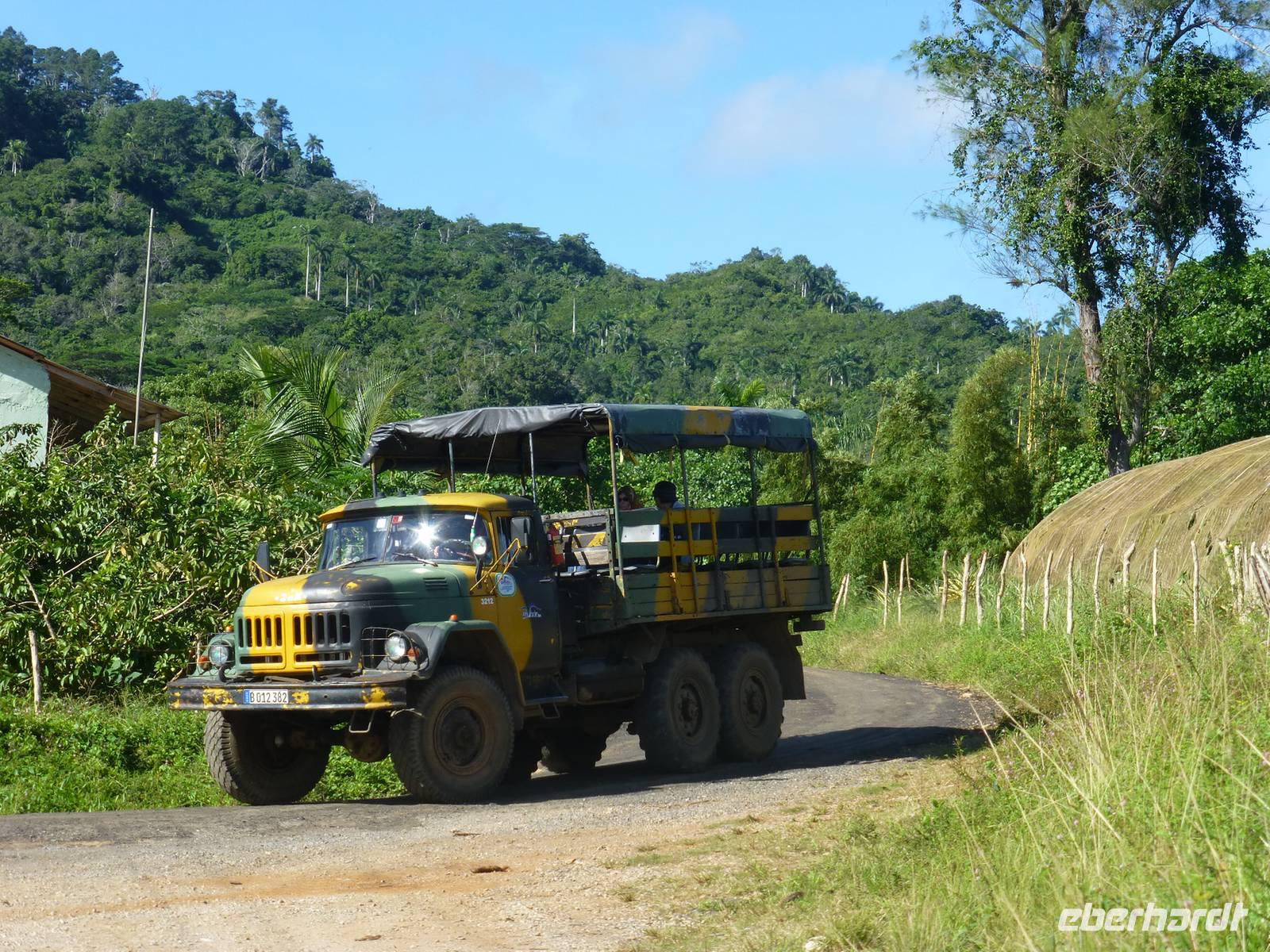 Nach einem leckeren Frühstück statteten wir dem Park „Guanayara" einen Besuch ab. Auf einem umfunktionierten Armee-Lkw fuhren wir in den tropischen Wald. Die Abfahrt wurde sehr lustig auf diesem russischen Militär-LKW. Danach ging unsere leichte Wanderung los. Auf dem Weg gab es einen Mann, der uns gelbe und sogar rote Bananen und Guayanaba verkauft hatte. Einige Schritte weiter konnten wir ganz gut die einheimischen Vögel, die „Tocororós", Kubas Nationaltier, sehen. Unterwegs sahen wir den Rocio- Wasserfall. Und später konnten wir auch ein Bad in einem natürlichen Wasserbecken mit einem kleinen Wasserfall nehmen.