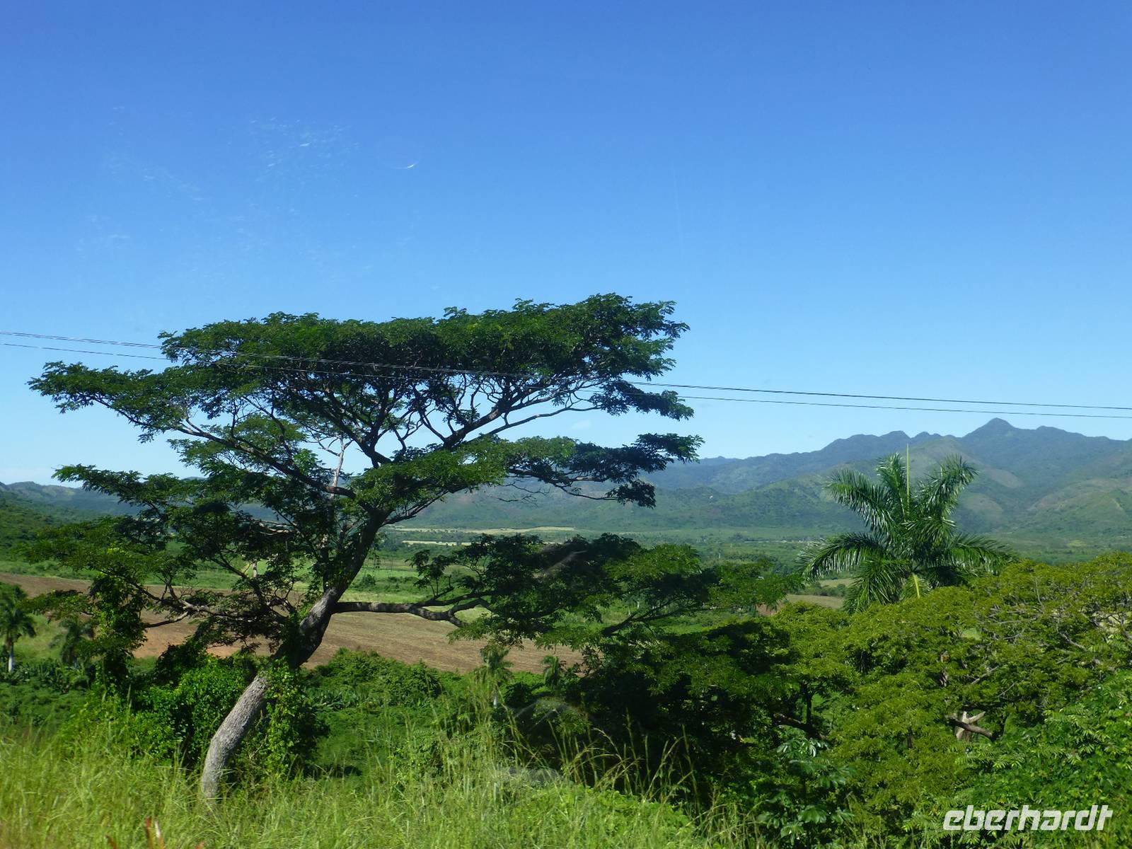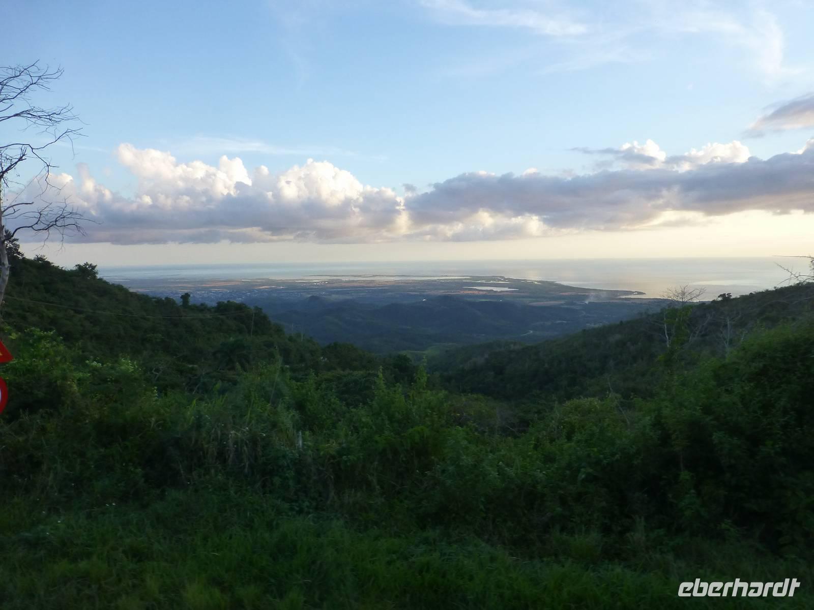 Nach einem zeitigen Frühstück fuhren wir nach Santa Clara. Auf dem Weg machten wir eine Pause bei einem schönen Aussichtspunkt im grünen Wald und das Gebirge mit einem See war im Hintergrund zu erkennen.