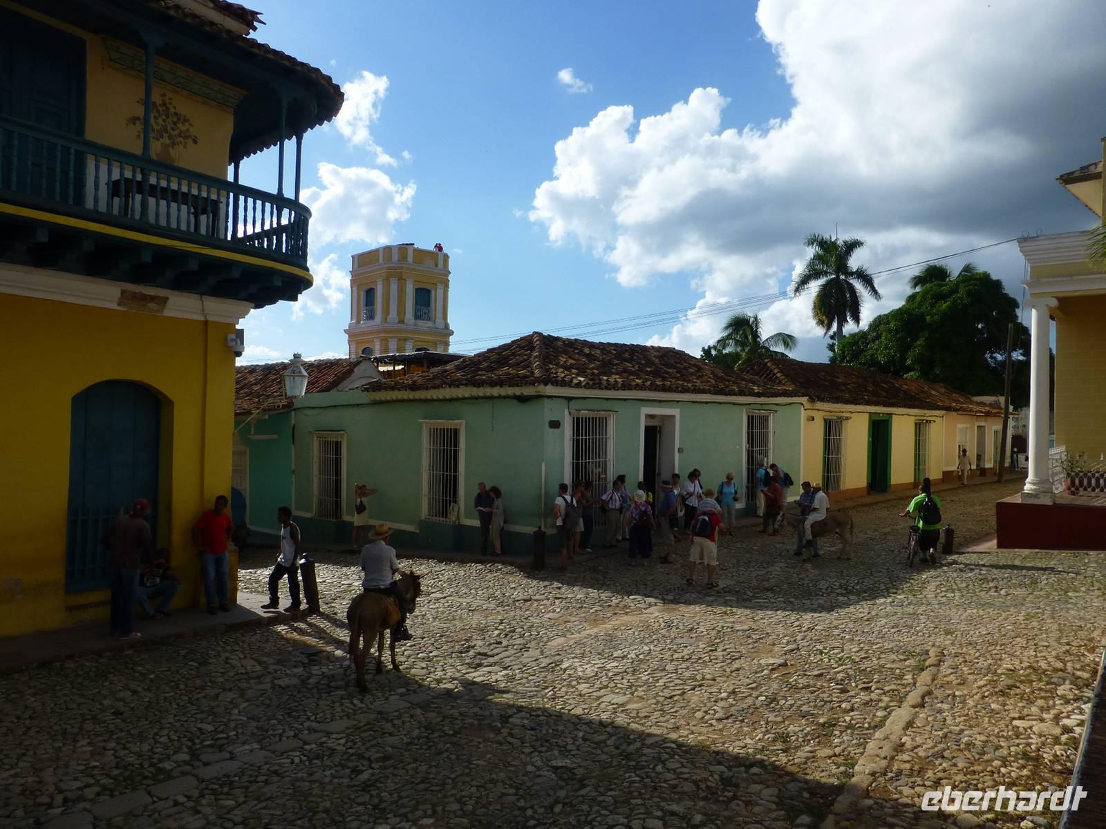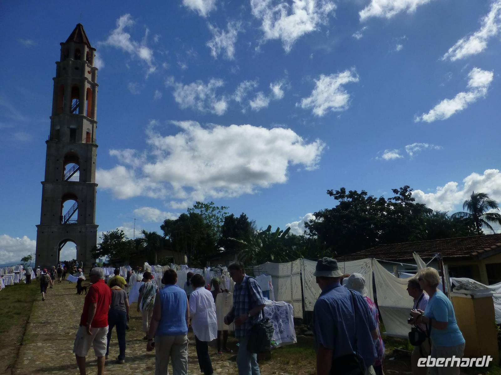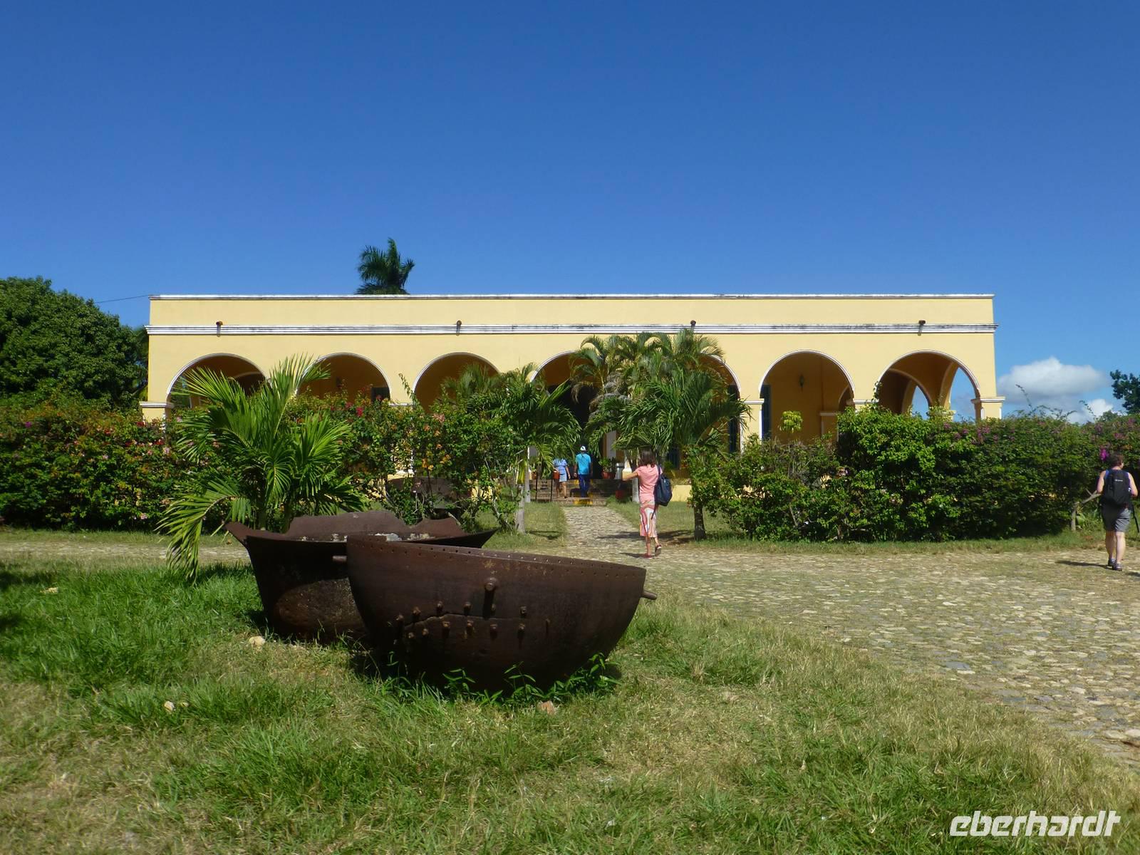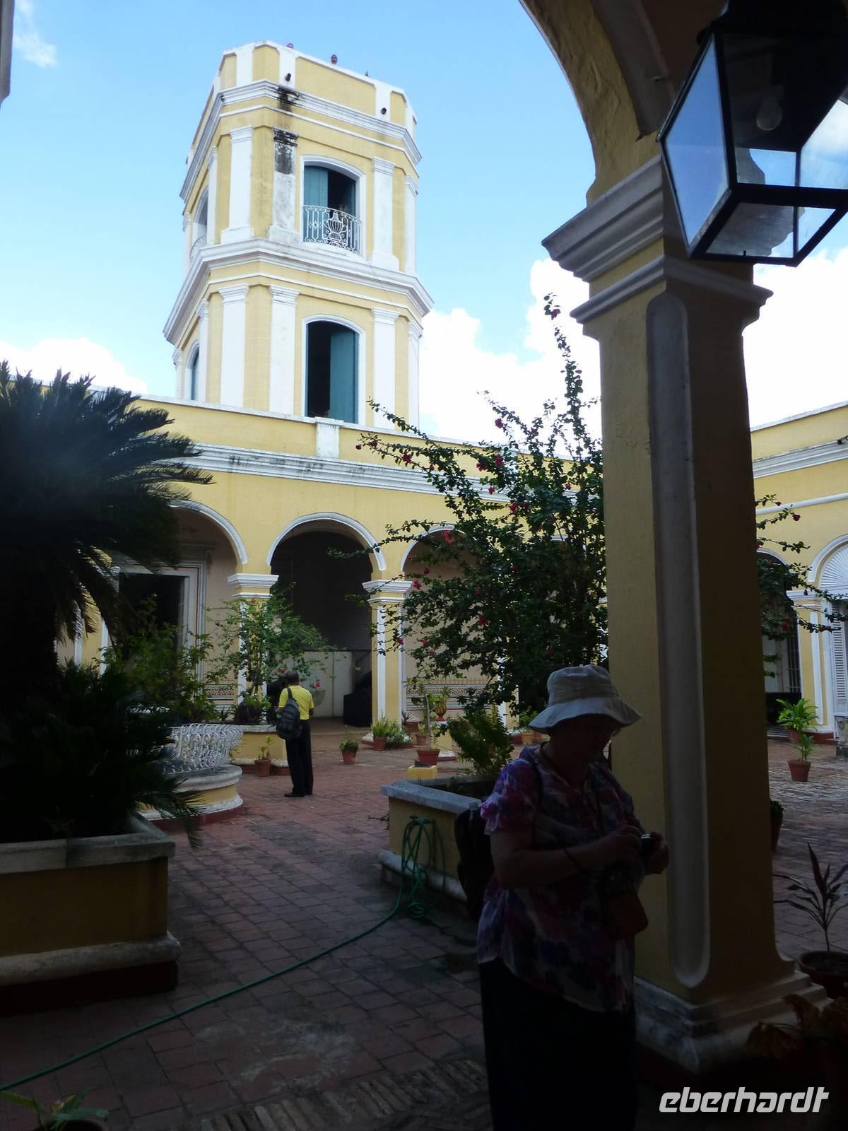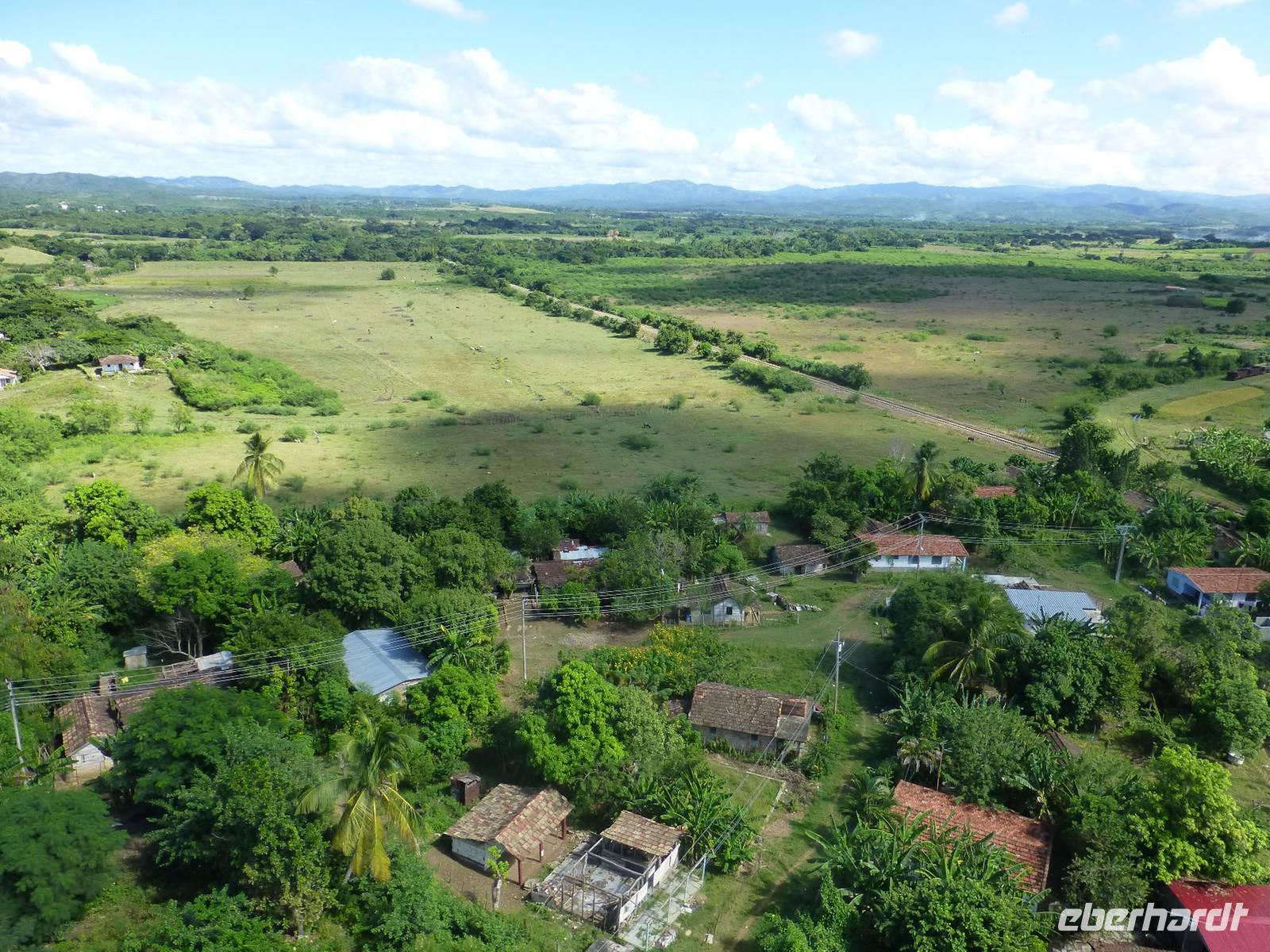 Wir reisten nach Trinidad, die Stadt wurde im Jahr 1514 von Diego Velazquez als dritte Siedlung auf Kuba gegründet. Aber bevor wir Trinidad besuchen, fuhren wir durch das Tal der Zuckerfabriken, „Valle de los Ingenios", wo wir die „Manaca Iznaga" besuchten, eine ehemalige Zuckerrohrfabrik. Die einst sehr reiche Zuckerrohr-Plantage wird von einem 45- Meter hohen Iznaga-Turm überragt. Besonders interessant ist dieser Turm mit 137 Stufen, die wir hinauf steigen um das Zuckerrohrtal zu bestaunen. Der Glockenturm diente in erster Linie zur Überwachung der umliegenden Zuckerrohrplantagen.