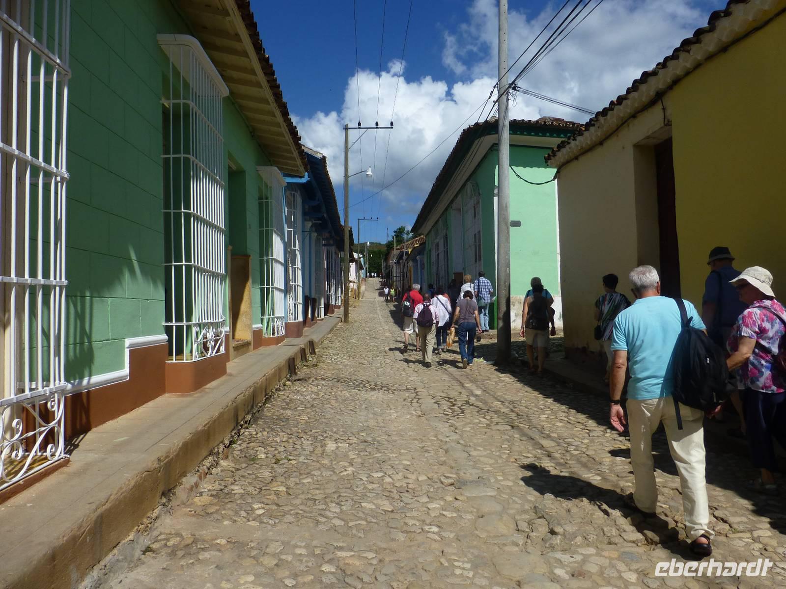 Trinidad liegt auf einem Hügel und man hat einen Blick aufs Meer und die umliegenden Berge. Mittlerweile zählt die Stadt mit ihrer kolonialen Altstadt zum UNESCO-Weltkulturerbe. Die Stadt versprüht mit ihrem kopfsteingepflasterten Straßen und bunten Fassaden ein einmaliges Flair. Leider konnten wir die Kirche Iglesia Parroquial Mayor de la Santisima Trinidad nicht besuchen, da Sie geschlossen war aber wir konnten den Palacio de Cantero besuchen, welcher Anfang des 19. Jahrhunderts vom Zuckerbaron Cantero erbaut wurde. Wir erfrischen uns bei einer Kostprobe des „Canchanchara", ein Cocktail, gemixt aus Rum, Limone, Wasser und Honig.