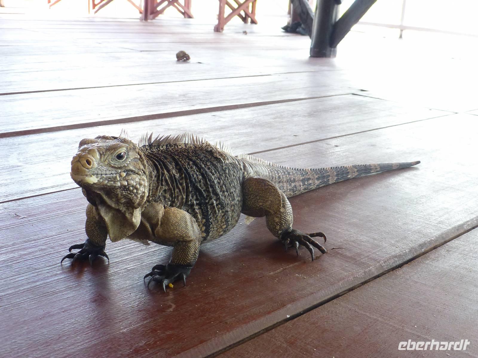 Die Fahrt dauerte nicht lang und wir waren in Kürze schon unten am Hafen von Trinidad, Marlin, in Punta de Ancon. Pünktlich legte der Katamaran ab und wir machten eine kleine Pause auf der Insel um Wasser und die Zutaten für die Paella zu holen. Wir fuhren auf die andere Seite der Insel wo sich das Koralbarrier befindet. Hier hatten wir die Gelegenheit im glasklaren Wasser zu schnorcheln und anschliessend am Strand zu entspannen. Zur Mittagszeit waren wir wieder zurück und an dem kleinen Strand war schon das Mittagsessen für uns vorbereitet. Heute gab es Paella oder Langosta, fünf von uns bestellten große Garnelen, die hier Camarones heißen. Vor dem Essen hatte man noch kurz Zeit um zu baden und einige Liegen zu reservieren. Hinter dem Restaurant gab es überall kleine und große Schnecken und eine Iguana, die nur für uns da war damit Sie wir in Ruhe fotografieren konnten.