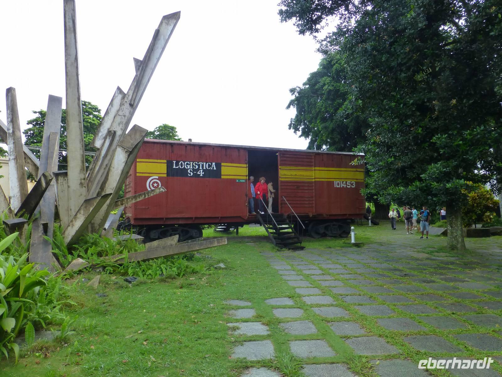 Wir erreichten Santa Clara und die Plaza de la Revolucion am Vormittag. Die Hauptstadt der Provinz Las Villas entstand, als im Jahre 1689 einigen Einwohnern von Remedios die Piratenüberfälle an der Küste überdrüssig waren und ins Landesinnere zogen. Heute können wir leider nicht das Museum Che Guevara besichtigen, da es wegen dem Regen geschlossen war. Aber wir werden es in drei Tagen nachholen. In der heutigen Industrie- und Universitätstadt fand 1958 der letzte Kampf der Guerrilleros unter Che Guevara statt, der das Ende der Batista-Diktatur besiegelte. Santa Clara ist daher auch bekannt als die „Stadt der heroischen Guerrilleros". Wir machten eine Pause bei dem berühmten gepanzerten Zug, der überfallen wurde, um die Stadt Santa Clara zu besiegen.