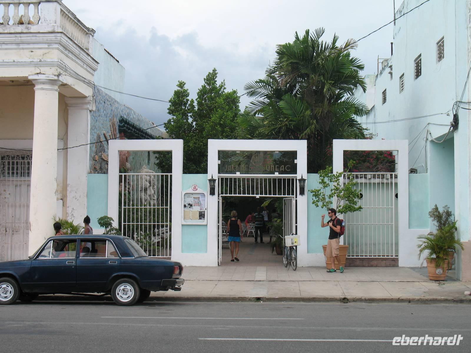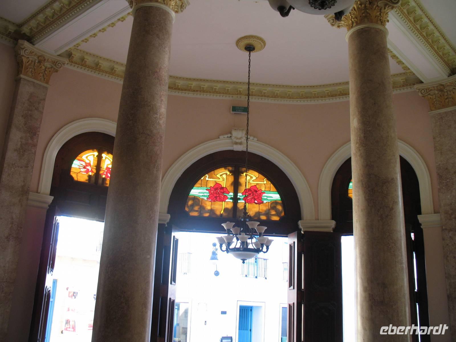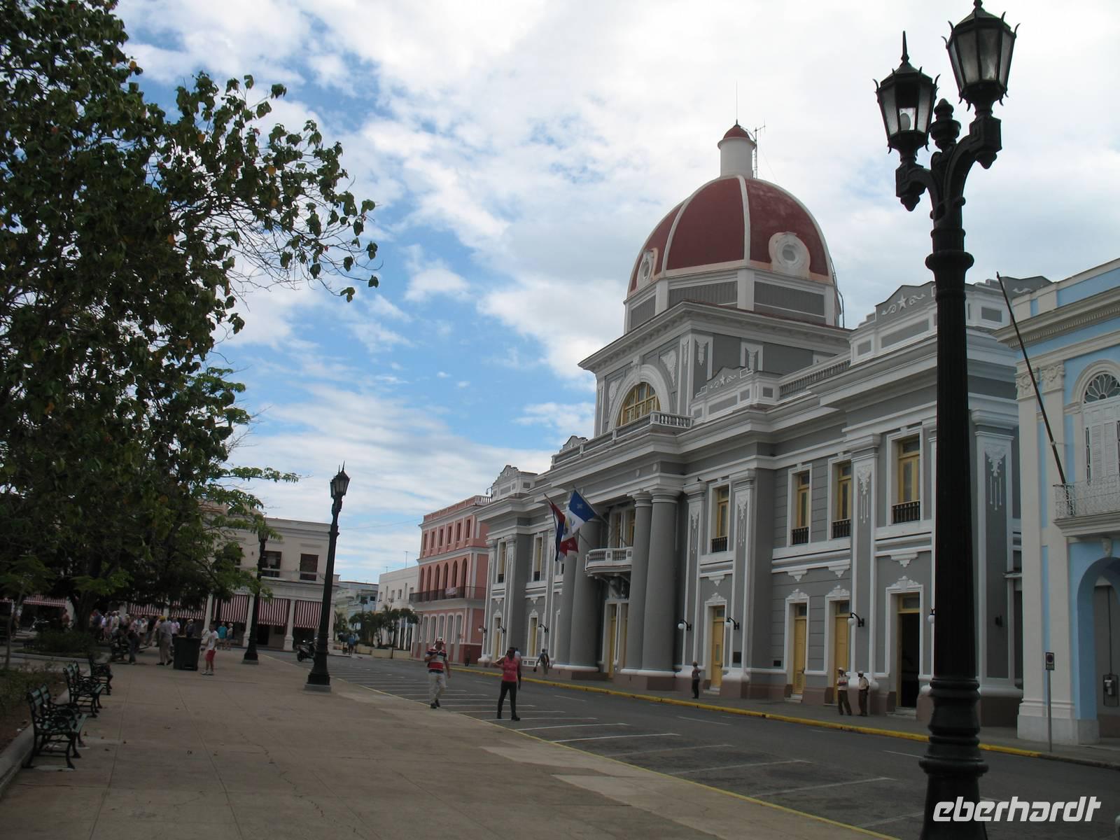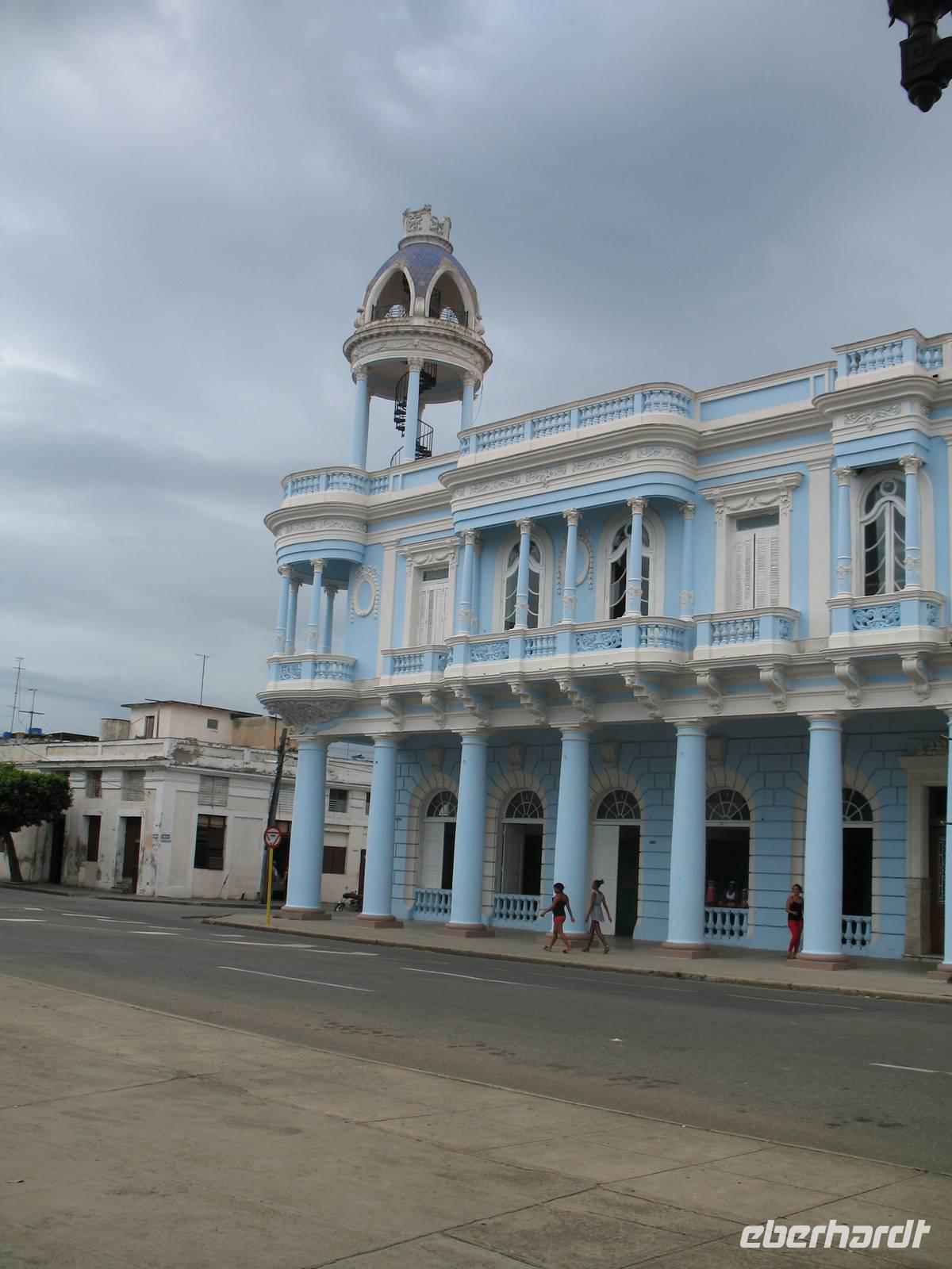 Die vergangenen Tage sind wir vor allem den Spuren Hemingways gefolgt und haben uns Havanna und Umgebung angeschaut. Heute führt uns die Reise weiter nach Cienfuegos. Allerdings scheint es das Wetter dieses Mal nicht so gut mit uns zu meinen :-( Bereits am Morgen regnet es leicht. Gegen 10.45 Uhr stoppen wir an der Finca "Fiesta Campesina" für eine kleine Kaffee- und Bio-Pause. Leider regnet es hier richtig stark und wir stellen uns eher unter statt diese tolle Anlage zu besichtigen. Es gibt jede Menge Tiere zu sehen und einen Botanischen Garten, wo an Bäumen und Pflanzen kleine Schilder mit deren Namen angebracht sind. Gleich im Eingangsbereich werden wir für ein Glücksspiel, eine Art Roulette angehalten, wo die Mitspieler ein kleines Haus mit Nummer auswählen, ein Meerschweinchen dann in die Mitte gesetzt wird und wenn es in das jeweilige ausgewählte Häuschen hineinläuft, gewinnt dieser Spieler. Das Meerschweinchen kann einem da wirklich nur leidtun! Weiter befinden sich im Inneren der Finca noch ein Café, Souvenirshops und auch eine Bar mit frisch gepresstem Zuckerrohrsaft. Dann fahren wir weiter zum ehemaligen Yacht Club Cienfuegos der High Society, wo wir unsere Mittagspause verbringen. Das Ambiente ist sehr exklusiv und es gibt ein köstliches einfaches Buffet mit guter Auswahl, es ist für Jeden etwas dabei! Nach dem Essen geht es weiter ins Zentrum mit Rundgang durch die Fußgängerzone, den Boulevard der Stadt bis in den Parque Martí. Wir besichtigen auch das berühmte Teatro Tomás Terry. Wir nehmen im Theater Platz und lassen die interessante Architektur auf uns wirken. Die freie Zeit im Anschluss nutzen wir, um uns auf dem Plaza mit der Casa de Bienes Culturales und der Catedral de la Purísima umzuschauen. Am frühen Nachmittag fahren wir zum 4-Sterne-Hotel "Jagua" in Punta Gorda, wo wir eine Nacht schlafen werden. Der Check-In verläuft reibungslos und es gibt auch einen Cocktail zur Begrüßung, zur Abwechslung in Kuba alkoholfrei und sehr süß! Das Hotel bietet einen Außenpool mit Bar und nach dem Essen gibt es sogar eine Salsa-Stunde zum Üben! Wir verabreden uns um 17.30 Uhr zur Cocktail-Happy-Hour an der Hotelbar direkt beim Außenpool, wo uns noch ein besonderes Schauspiel geboten wird. Ein betrunkener Hotelgast möchte nicht aus dem Pool steigen und das Hotelpersonal hat wirklich große Mühe, ihn herauszuholen. Direkt in der Nähe und nur eine Gehminute von unserem Hotel entfernt befindet sich das Palacio de Valle, welches wir besichtigen und wo wir von der Außenplattform über ganz Cienfuegos blicken können. Zunächst erklärt uns Vivian Besonderheiten des Gebäudes und dann erhält jeder noch einen Cocktail Ron Collins auf der Dachterrasse, welcher dieses Mal mit viel Alkohol versehen ist. Gegen 19.00 Uhr gehen wir dann gemeinsam zum Abendessen im Hotel. Es gibt wieder ein sehr leckeres Buffet mit großer Auswahl. Wir lassen es uns einfach schmecken! Während die meisten Reisegäste sich auf ihre Zimmer zurückziehen, treffen sich die anderen Gäste um 21.00 Uhr zum Salsa-Unterricht an der Hotelbar. Allerdings stimmen unsere Erwartungen nicht ganz mit dem überein, was wir sehen und besonders hören. Ein Tanzpaar zeigt zunächst ein paar Tänze und abwechselnd singt ein kubanischer Sänger. Die Tänzer sind in Ordnung, das können wir unglücklicherweise leider nicht von dem Gesang behaupten :-( Aber nun ja, nach wenigen Liedern und Tänzen beginnt endlich der Unterricht, auch anderes als erwartet. Die Tänzer fragen im Publikum, wer gerne teilnehmen möchte, anfangs traut sich aber keiner. Dann erklären sich doch noch ein paar Gäste bereit, auch wir nehmen teil :-) Uns werden vier Schritte gezeigt, welche wir an der einen oder anderen Stelle der Reise vielleicht ein weiteres Mal anwenden werden. Die Salsa-Stunde war nett, aber die großartigen Abendveranstaltungen der vergangenen zwei Tage in Havanna werden uns wohl doch eher in Erinnerung bleiben :-)