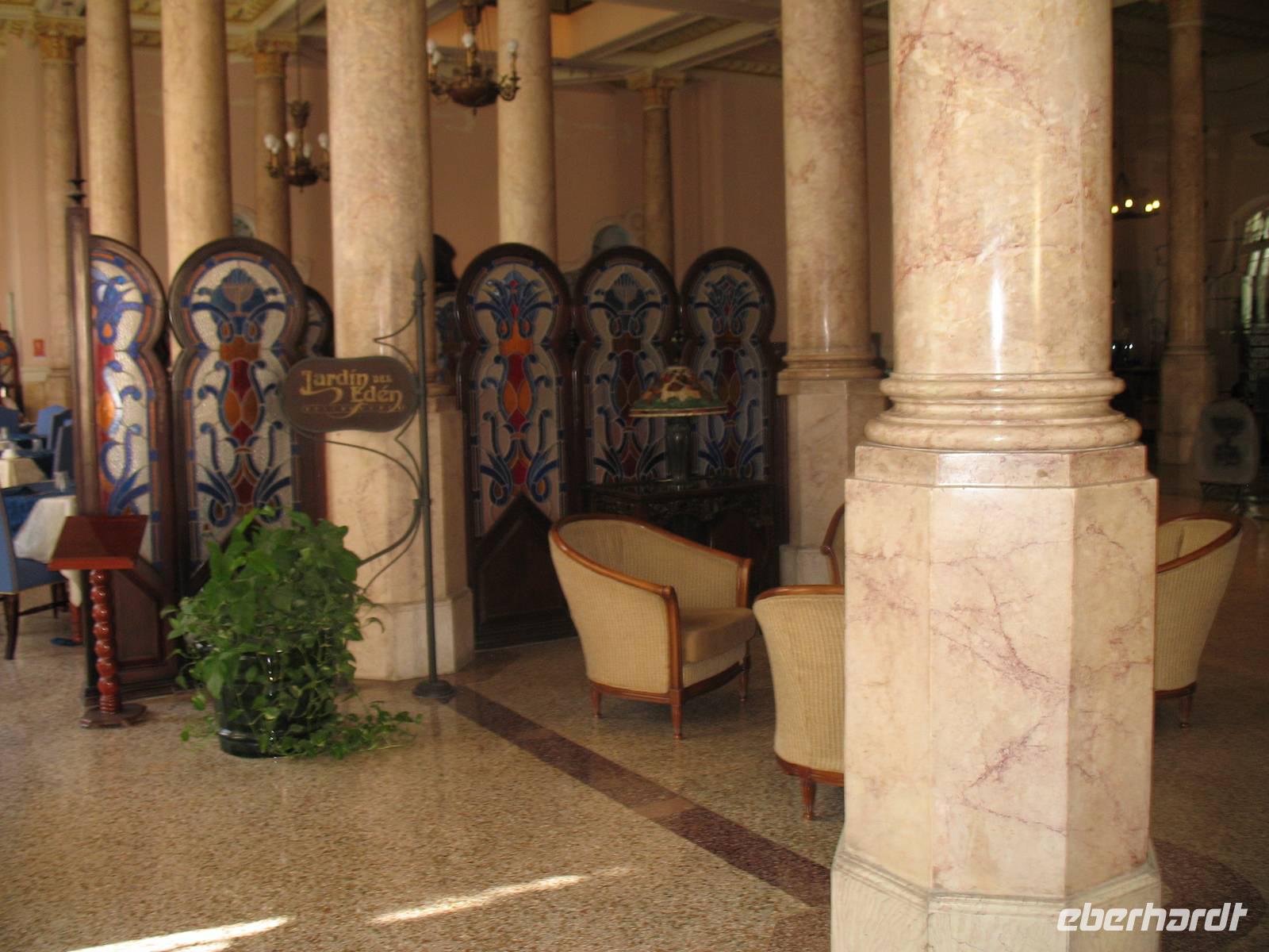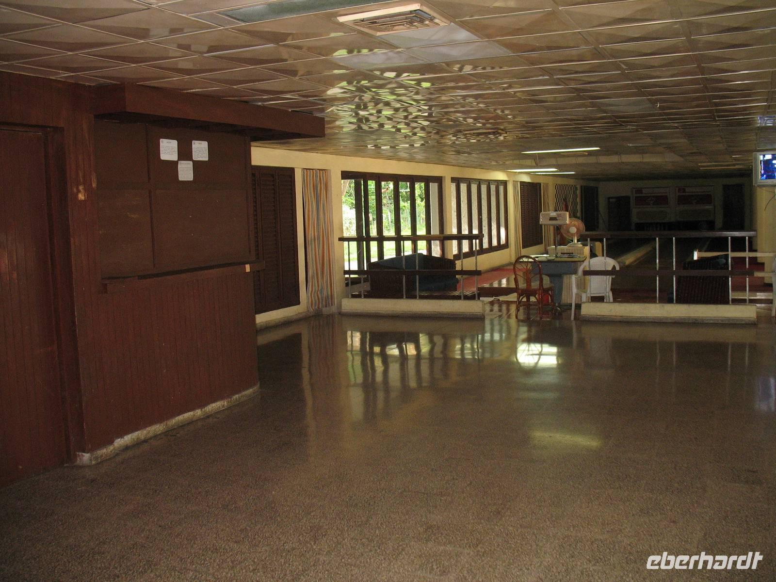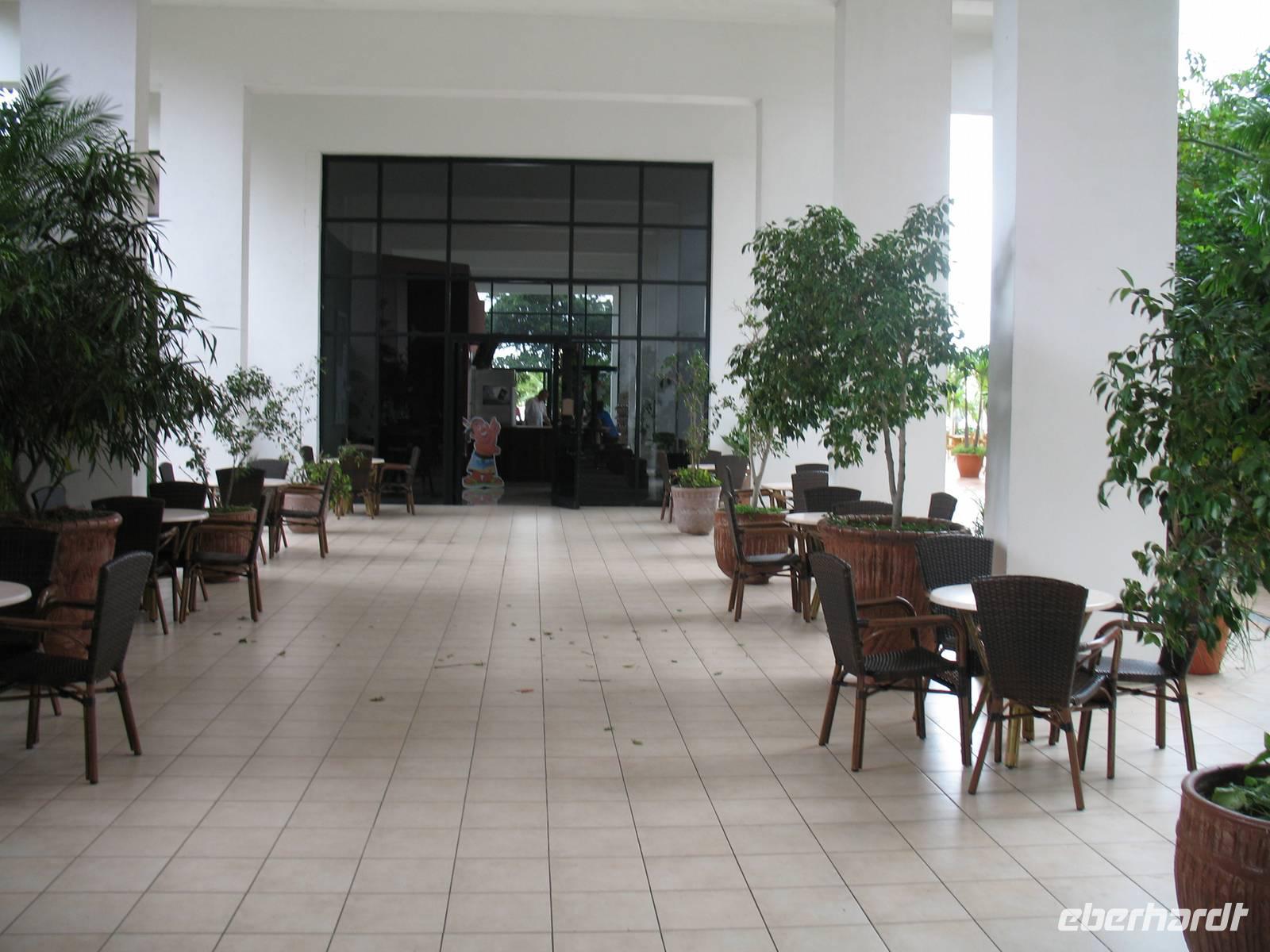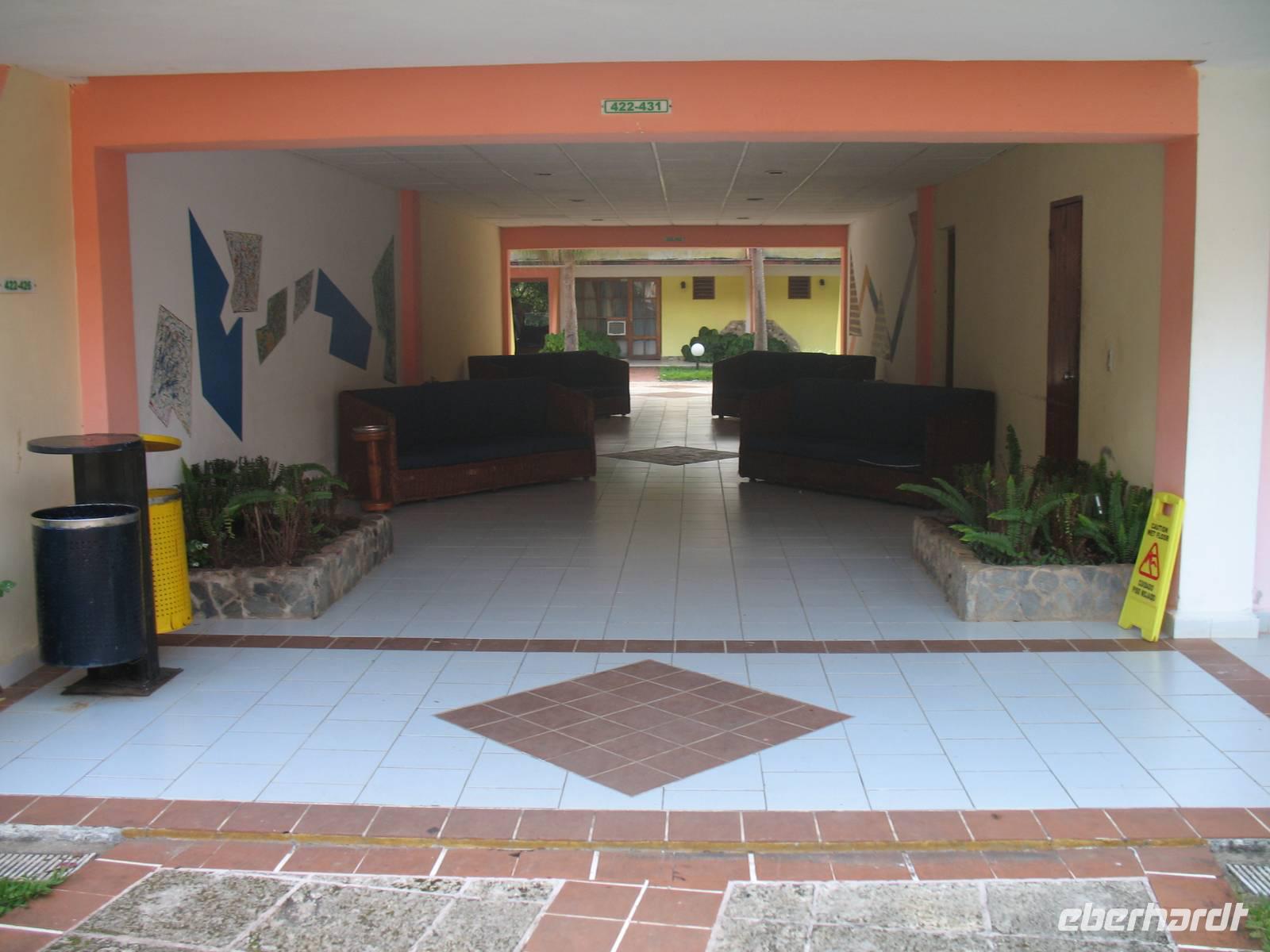 Die vergangenen Tage sind wir vor allem den Spuren Hemingways gefolgt und haben uns Havanna und Umgebung angeschaut. Heute führt uns die Reise weiter nach Cienfuegos. Allerdings scheint es das Wetter dieses Mal nicht so gut mit uns zu meinen :-( Bereits am Morgen regnet es leicht. Gegen 10.45 Uhr stoppen wir an der Finca "Fiesta Campesina" für eine kleine Kaffee- und Bio-Pause. Leider regnet es hier richtig stark und wir stellen uns eher unter statt diese tolle Anlage zu besichtigen. Es gibt jede Menge Tiere zu sehen und einen Botanischen Garten, wo an Bäumen und Pflanzen kleine Schilder mit deren Namen angebracht sind. Gleich im Eingangsbereich werden wir für ein Glücksspiel, eine Art Roulette angehalten, wo die Mitspieler ein kleines Haus mit Nummer auswählen, ein Meerschweinchen dann in die Mitte gesetzt wird und wenn es in das jeweilige ausgewählte Häuschen hineinläuft, gewinnt dieser Spieler. Das Meerschweinchen kann einem da wirklich nur leidtun! Weiter befinden sich im Inneren der Finca noch ein Café, Souvenirshops und auch eine Bar mit frisch gepresstem Zuckerrohrsaft. Dann fahren wir weiter zum ehemaligen Yacht Club Cienfuegos der High Society, wo wir unsere Mittagspause verbringen. Das Ambiente ist sehr exklusiv und es gibt ein köstliches einfaches Buffet mit guter Auswahl, es ist für Jeden etwas dabei! Nach dem Essen geht es weiter ins Zentrum mit Rundgang durch die Fußgängerzone, den Boulevard der Stadt bis in den Parque Martí. Wir besichtigen auch das berühmte Teatro Tomás Terry. Wir nehmen im Theater Platz und lassen die interessante Architektur auf uns wirken. Die freie Zeit im Anschluss nutzen wir, um uns auf dem Plaza mit der Casa de Bienes Culturales und der Catedral de la Purísima umzuschauen. Am frühen Nachmittag fahren wir zum 4-Sterne-Hotel "Jagua" in Punta Gorda, wo wir eine Nacht schlafen werden. Der Check-In verläuft reibungslos und es gibt auch einen Cocktail zur Begrüßung, zur Abwechslung in Kuba alkoholfrei und sehr süß! Das Hotel bietet einen Außenpool mit Bar und nach dem Essen gibt es sogar eine Salsa-Stunde zum Üben! Wir verabreden uns um 17.30 Uhr zur Cocktail-Happy-Hour an der Hotelbar direkt beim Außenpool, wo uns noch ein besonderes Schauspiel geboten wird. Ein betrunkener Hotelgast möchte nicht aus dem Pool steigen und das Hotelpersonal hat wirklich große Mühe, ihn herauszuholen. Direkt in der Nähe und nur eine Gehminute von unserem Hotel entfernt befindet sich das Palacio de Valle, welches wir besichtigen und wo wir von der Außenplattform über ganz Cienfuegos blicken können. Zunächst erklärt uns Vivian Besonderheiten des Gebäudes und dann erhält jeder noch einen Cocktail Ron Collins auf der Dachterrasse, welcher dieses Mal mit viel Alkohol versehen ist. Gegen 19.00 Uhr gehen wir dann gemeinsam zum Abendessen im Hotel. Es gibt wieder ein sehr leckeres Buffet mit großer Auswahl. Wir lassen es uns einfach schmecken! Während die meisten Reisegäste sich auf ihre Zimmer zurückziehen, treffen sich die anderen Gäste um 21.00 Uhr zum Salsa-Unterricht an der Hotelbar. Allerdings stimmen unsere Erwartungen nicht ganz mit dem überein, was wir sehen und besonders hören. Ein Tanzpaar zeigt zunächst ein paar Tänze und abwechselnd singt ein kubanischer Sänger. Die Tänzer sind in Ordnung, das können wir unglücklicherweise leider nicht von dem Gesang behaupten :-( Aber nun ja, nach wenigen Liedern und Tänzen beginnt endlich der Unterricht, auch anderes als erwartet. Die Tänzer fragen im Publikum, wer gerne teilnehmen möchte, anfangs traut sich aber keiner. Dann erklären sich doch noch ein paar Gäste bereit, auch wir nehmen teil :-) Uns werden vier Schritte gezeigt, welche wir an der einen oder anderen Stelle der Reise vielleicht ein weiteres Mal anwenden werden. Die Salsa-Stunde war nett, aber die großartigen Abendveranstaltungen der vergangenen zwei Tage in Havanna werden uns wohl doch eher in Erinnerung bleiben :-)