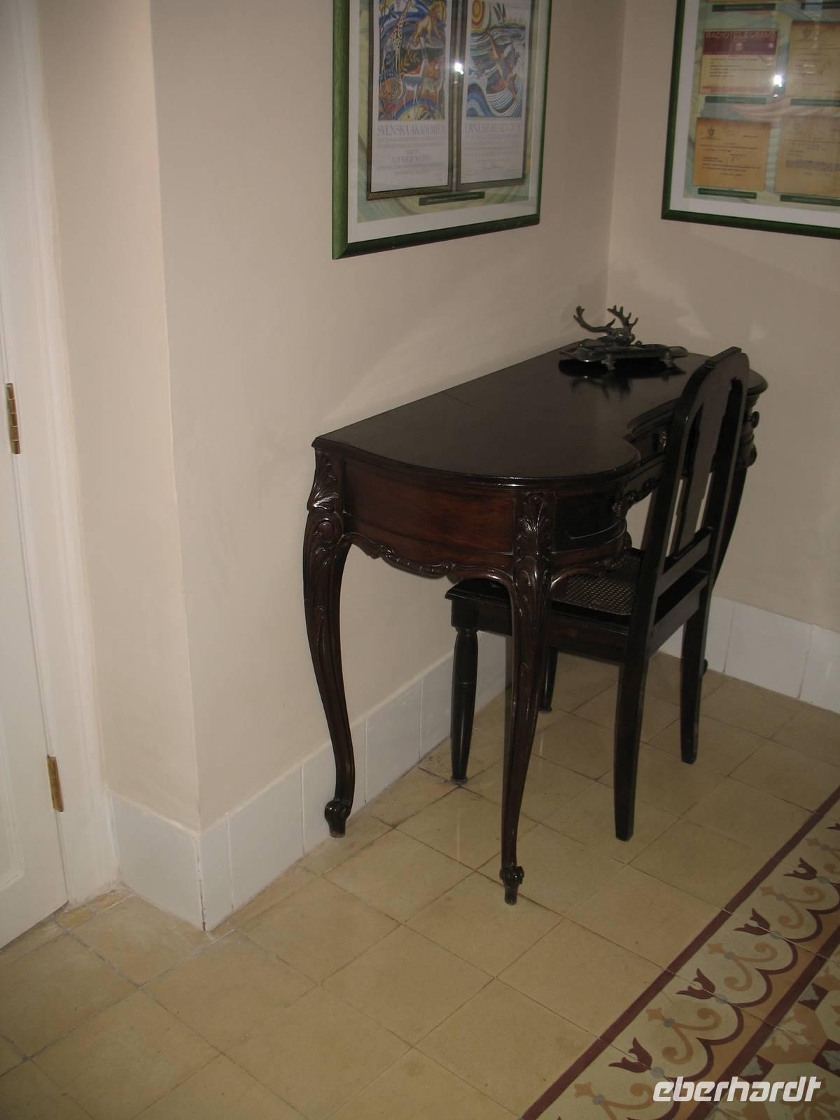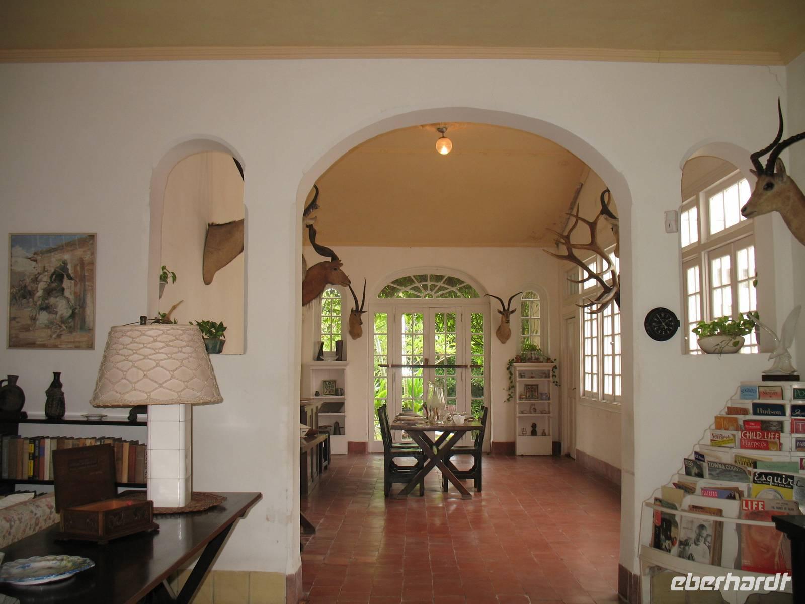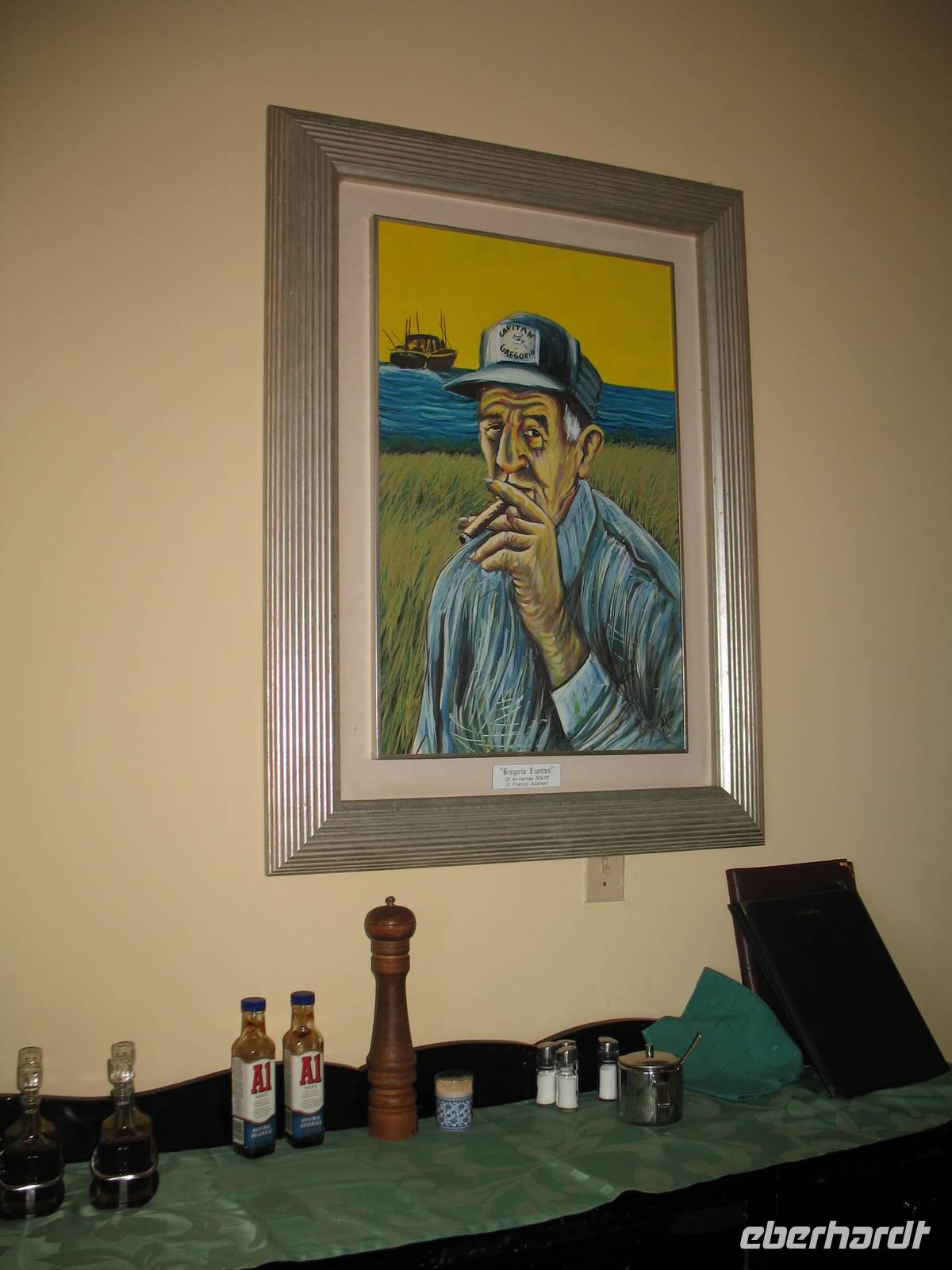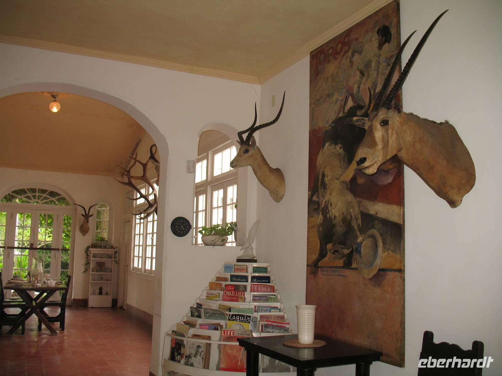 Unser dritter Reisetag beginnt wieder mit strahlendem Sonnenschein :-) Während wir gestern bereits auf Hemingways Spuren das alte Havanna erkundet haben, fahren wir heute zum Hemingway-Museum "Finca La Vigía". Gegen 10.30 Uhr besichtigen wir das interessante Museum und lauschen den Worten von Vivian. Das Anwesen ist rund vier Hektar groß. Der dreistöckige Turm diente Hemingway einerseits als Schreibwerkstatt und andererseits seiner Katze und deren circa 50 Nachkommen als Zuhause. Im Garten befindet sich sein Yacht, die "El Pilar". Nach dem Rundgang gönnen sich die meisten Gäste noch einen leckeren Cocktail mit dazugehöriger Zuckerrohrstange. Dann fahren wir zum Fischerdorf Cojímar, wo seinerzeit Hemingways Schiff lag. Zum Mittagessen im Restaurant "La Terraza", in dem auch Hemingway Stammgast war, werden wir mit einem blauen Begrüßungscocktail empfangen. Wir haben die Wahl zwischen Paella oder Fisch. Anschließend schauen wir uns Denkmal und Festung zu Ehren Hemingways an. Am frühen Nachmittag fahren wir zum Hotel zurück und besichtigen das berühmte Zimmer 511 in unserem Hotel Ambos Mundos. In diesem Eckzimmer hatte Hemingway von 1932 bis 1939 gewohnt, wo er auch teilweise seinen Roman "Wem die Stunde schlägt" geschrieben hatte. Danach haben wir wieder Freizeit bis zum Abendessen. Während einige Reisegäste entspannt durch "La Habana Vieja" bummeln möchte, werden die anderen Gäste von unserem netten Busfahrer Jadian zum Touristenstrand in Havanna chauffiert. Die nächsten drei Stunden verbringen wir am Strand, schwimmen im Meer oder sammeln kleine Muscheln. Zurück im Hotel haben wir noch freie Zeit, bevor wir gegen 19.00 Uhr zum Abendessen ins fünfzehn Minuten entfernte Restaurant "El Tocororo" fahren, wo uns das leckere 3-Gänge-Menü sehr gut mundet. Nach dem Abendessen wird es für einige Gäste noch einmal spannend. Wir genießen eine Abendveranstaltung im "La Taberna de la Muralla". Das Unterhaltungsprogramm besteht sowohl aus toller Livemusik von Sängern des Buena Vista Social Club als auch begabten Salsa-Tänzern, die Verpflegung aus drei leckeren Cocktails, wobei uns der "Ron Collins" wirklich sehr gut schmeckt. Eigentlich ist Buena Vista Social Club der Titel eines Musikalbums, aufgenommen 1996 vom Gitarristen Ry Cooder aus den USA. Dabei handelte es sich um ein gemeinsames Projekt gesungener Lieder von Juan de Marcos González und Senioren kubanischer Musik der 40er und 50er Jahre. Gegen 23.00 Uhr laufen wir wieder zum Hotel zurück. Angekommen in der Hotellobby verspüren wir langsam Müdigkeit, so dass wir uns bis zum nächsten Morgen verabschieden.