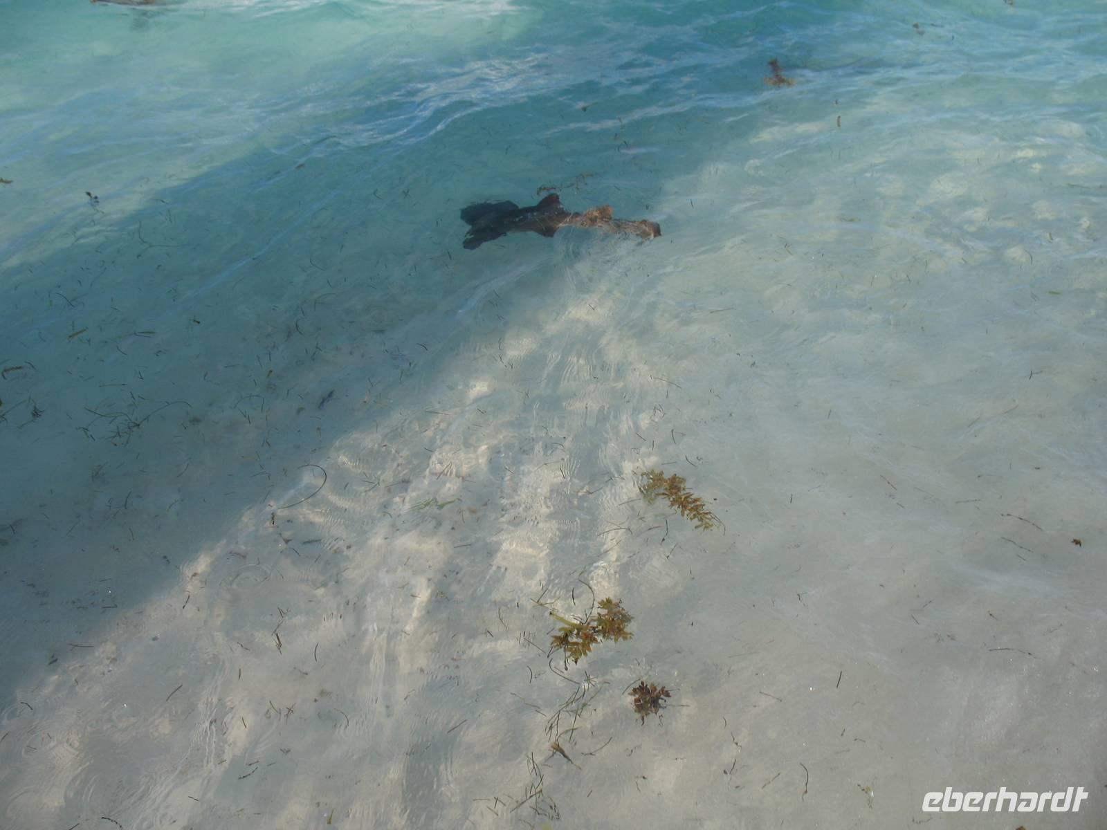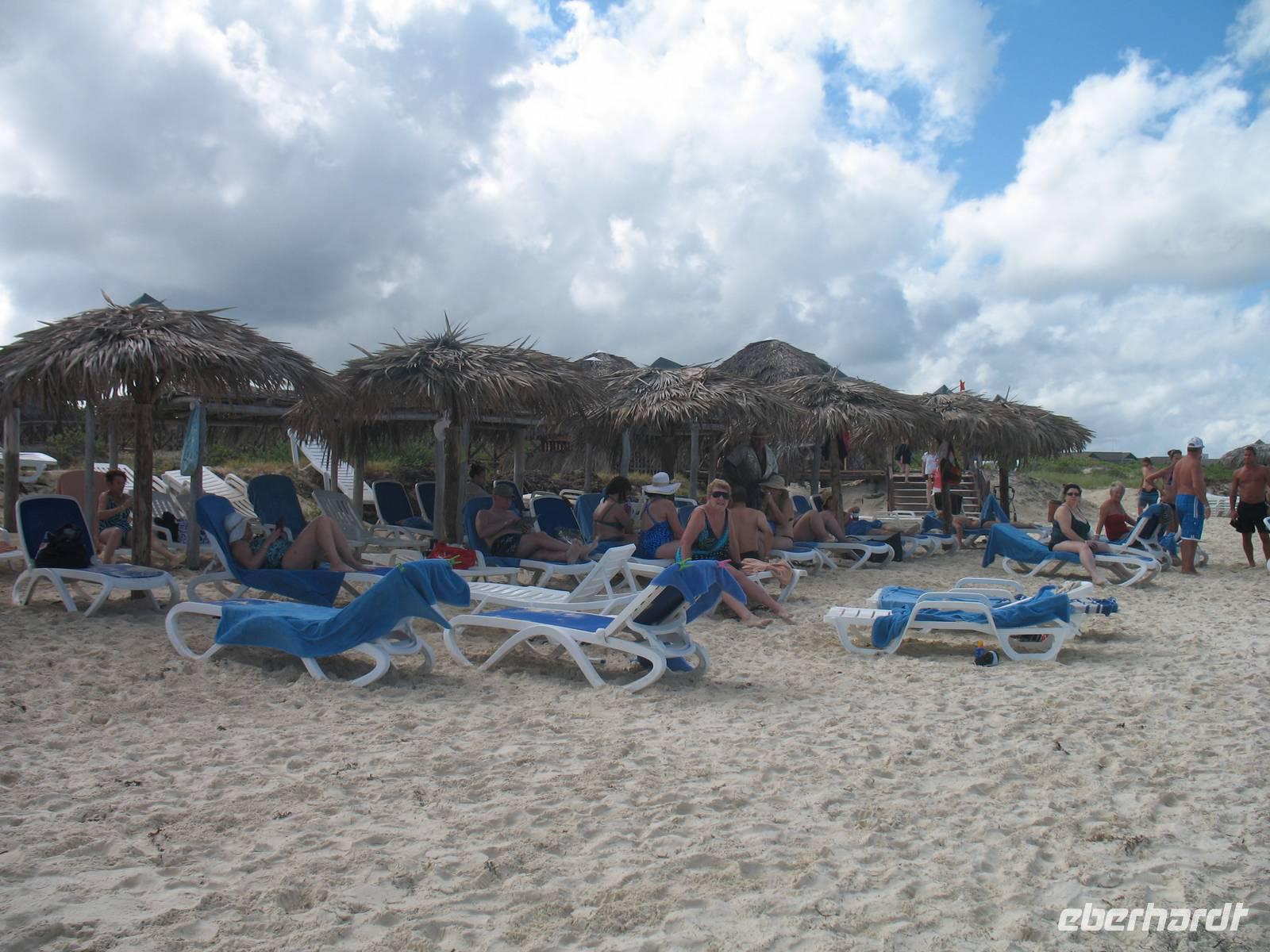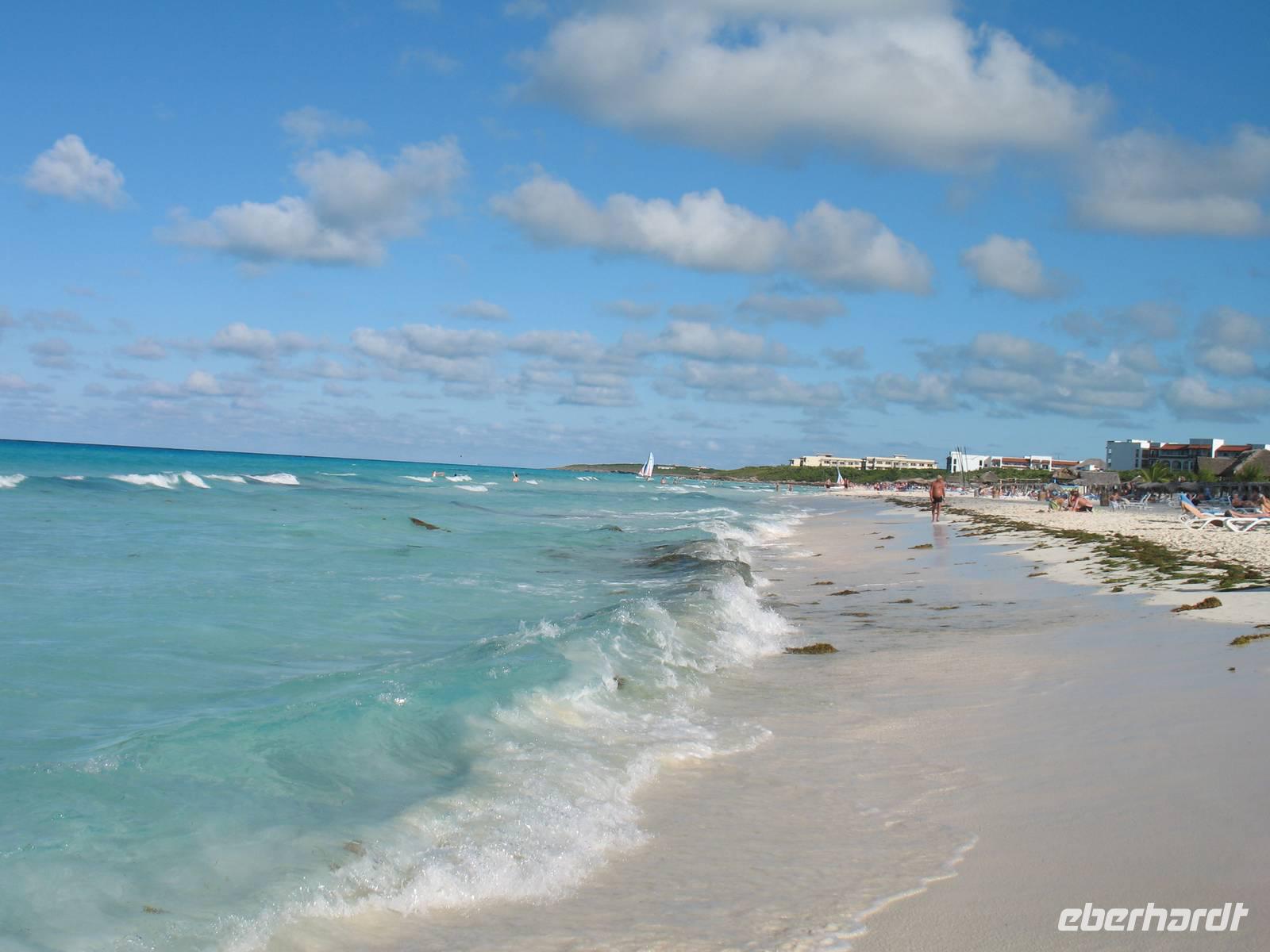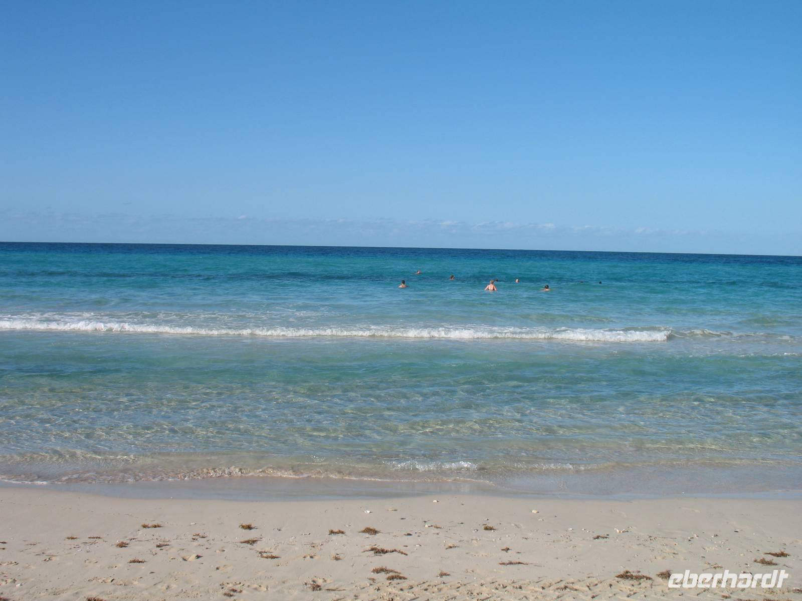 Die nächsten zwei Tage stehen im Sinne vollständiger Entspannung und Ausruhen bei supertollem Wetter in absolut relaxter Umgebung. Während wir die letzten Tage sehr viel über das Land Kuba, dessen Kultur und Menschen erfahren haben, freuen wir uns nun einfach, auch noch ein paar Tage die traumhaften Strände und das tolle karibische Flair zu genießen. Genauso lecker wie das Abendbuffet ist das Frühstück, alles sehr lecker und reichhaltig. Danach trifft sich ein Teil der Gruppe, um gemeinsam den kleinen Touristenmarkt zu besuchen, welcher nur fünf Gehminuten von unserem Bungalow entfernt ist. Hier gibt es neben mehreren kleinen Ständen mit Schmuck, Kleidung und Andenken auch eine Bank, Restaurants und Zigarrenladen. Im Anschluss treffen wir uns zum gemeinsamen Entspannen und Relaxen, Erzählen und Schwimmen im Meer. Um 13.00 Uhr genießen wir abermals ein leckeres Buffet, besonders die Garnelen sind empfehlenswert. Wir essen unter anderem auch einen leckeren selbstgestalteten Eisbecher, flambierte Banane oder tollen Kuchen. Danach schauen wir ein weiteres Mal auf dem Touristenmarkt vorbei oder genießen die tollen Sonnenstrahlen am wunderschönen Strand. Wir beobachten, wie sich eine Menschentraube am Strand bildet. Natürlich sind wir neugierig und schauen nach, was da los ist. Kaum zu glauben, aber ein Baby-Nasenhai hat sich an den Strand verirrt. Auf Nachfragen wird uns gesagt, dass sich das Tier verletzt hat und daher immer zum Strand zurückkehrt. Leider kann dem Hai nicht geholfen werden und daher lassen sie das Tier wieder ins Wasser. Aber so nah haben wir wohl noch nie einen Hai am Strand gesehen, das ist schon ein spannendes Erlebnis. Zum Abendessen gehen wir wieder ins Buffet-Restaurant, da wir Buffet wesentlich besser finden als Menüessen. Zum Geburtstag eines Gastes gibt es heute als Überraschung noch eine Geburtstagstorte und Champagner für alle Gäste :-) Das Essen ist wieder sehr lecker und vielfältig, neben Sushi und frisch zubereiteten Fisch, Fleisch und Pasta erfreuen wir uns auch am großartigen Süßspeisen-Buffet. Die heutige Show im hoteleigenen Theater ist eine Hommage an Michael Jackson "Homenaje Michael Jackson". Davor sitzen wir abermals bei erfrischenden Cocktails zusammen. Nach der großartigen Theatervorstellung lassen wir die vergangenen Tage gemeinsam bei Cocktails und Bier Revue passieren :-)