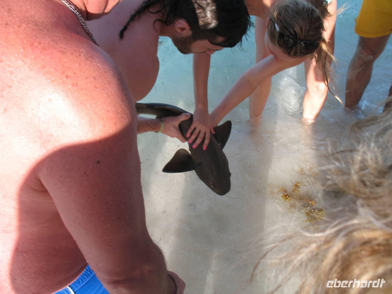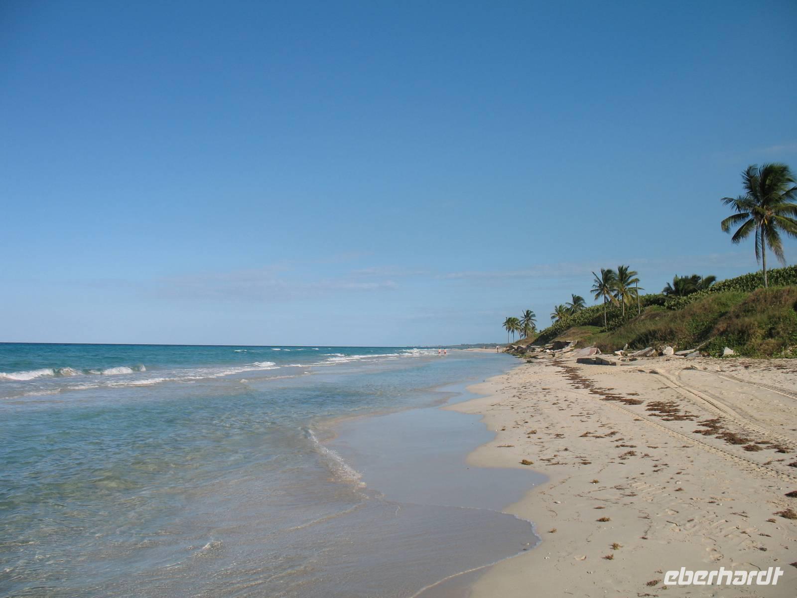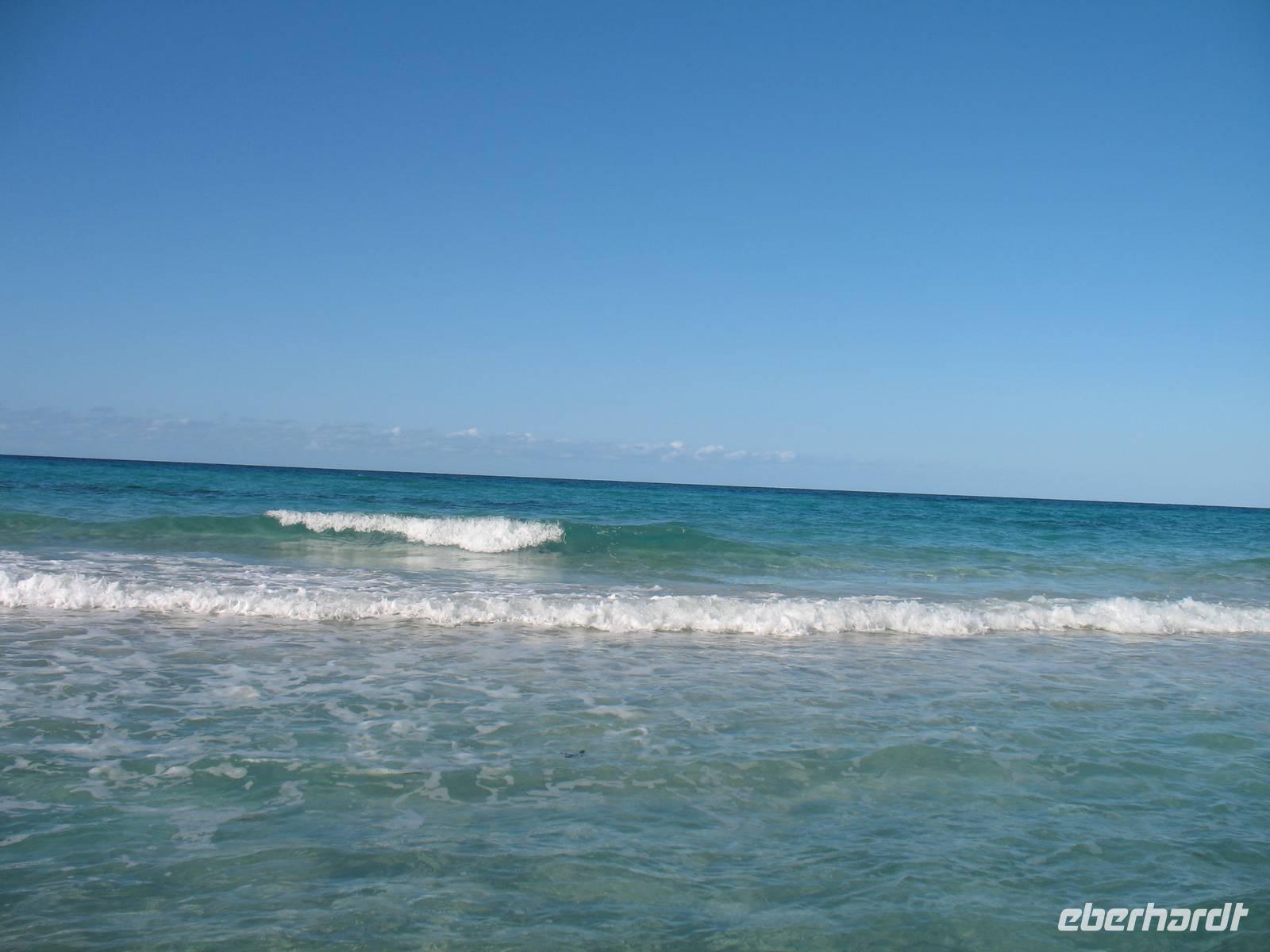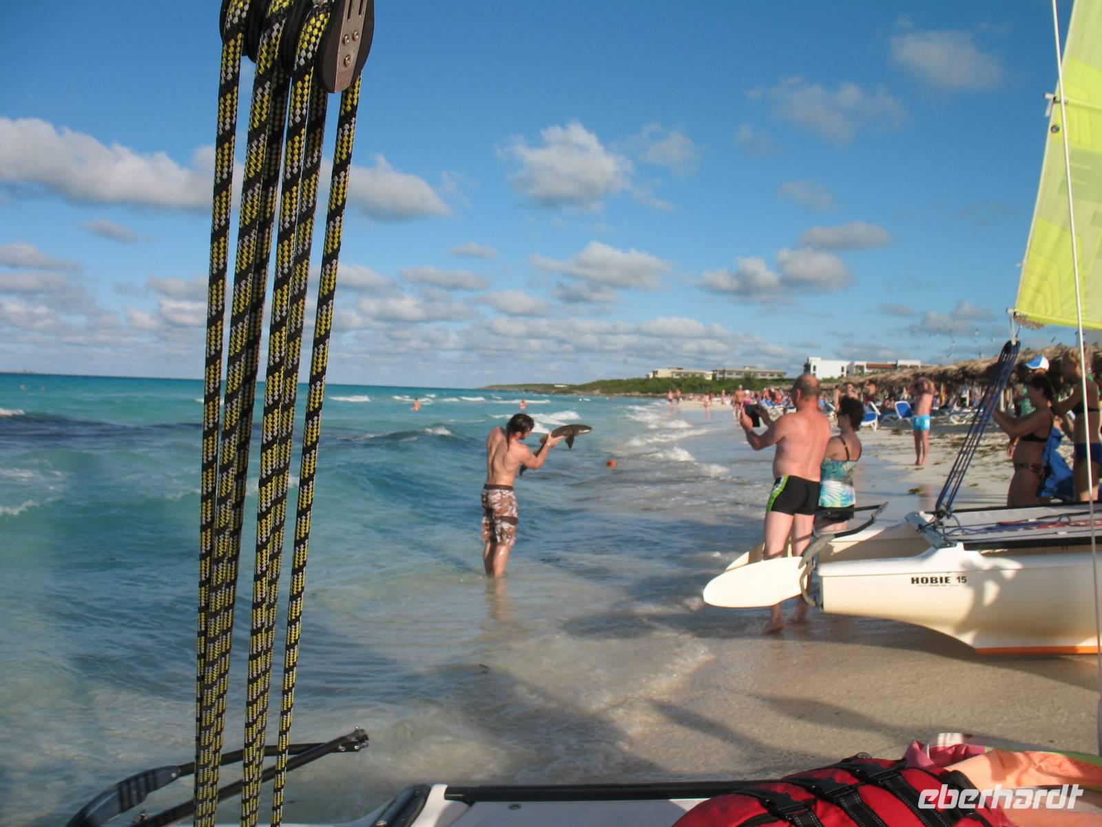 Die nächsten zwei Tage stehen im Sinne vollständiger Entspannung und Ausruhen bei supertollem Wetter in absolut relaxter Umgebung. Während wir die letzten Tage sehr viel über das Land Kuba, dessen Kultur und Menschen erfahren haben, freuen wir uns nun einfach, auch noch ein paar Tage die traumhaften Strände und das tolle karibische Flair zu genießen. Genauso lecker wie das Abendbuffet ist das Frühstück, alles sehr lecker und reichhaltig. Danach trifft sich ein Teil der Gruppe, um gemeinsam den kleinen Touristenmarkt zu besuchen, welcher nur fünf Gehminuten von unserem Bungalow entfernt ist. Hier gibt es neben mehreren kleinen Ständen mit Schmuck, Kleidung und Andenken auch eine Bank, Restaurants und Zigarrenladen. Im Anschluss treffen wir uns zum gemeinsamen Entspannen und Relaxen, Erzählen und Schwimmen im Meer. Um 13.00 Uhr genießen wir abermals ein leckeres Buffet, besonders die Garnelen sind empfehlenswert. Wir essen unter anderem auch einen leckeren selbstgestalteten Eisbecher, flambierte Banane oder tollen Kuchen. Danach schauen wir ein weiteres Mal auf dem Touristenmarkt vorbei oder genießen die tollen Sonnenstrahlen am wunderschönen Strand. Wir beobachten, wie sich eine Menschentraube am Strand bildet. Natürlich sind wir neugierig und schauen nach, was da los ist. Kaum zu glauben, aber ein Baby-Nasenhai hat sich an den Strand verirrt. Auf Nachfragen wird uns gesagt, dass sich das Tier verletzt hat und daher immer zum Strand zurückkehrt. Leider kann dem Hai nicht geholfen werden und daher lassen sie das Tier wieder ins Wasser. Aber so nah haben wir wohl noch nie einen Hai am Strand gesehen, das ist schon ein spannendes Erlebnis. Zum Abendessen gehen wir wieder ins Buffet-Restaurant, da wir Buffet wesentlich besser finden als Menüessen. Zum Geburtstag eines Gastes gibt es heute als Überraschung noch eine Geburtstagstorte und Champagner für alle Gäste :-) Das Essen ist wieder sehr lecker und vielfältig, neben Sushi und frisch zubereiteten Fisch, Fleisch und Pasta erfreuen wir uns auch am großartigen Süßspeisen-Buffet. Die heutige Show im hoteleigenen Theater ist eine Hommage an Michael Jackson "Homenaje Michael Jackson". Davor sitzen wir abermals bei erfrischenden Cocktails zusammen. Nach der großartigen Theatervorstellung lassen wir die vergangenen Tage gemeinsam bei Cocktails und Bier Revue passieren :-)