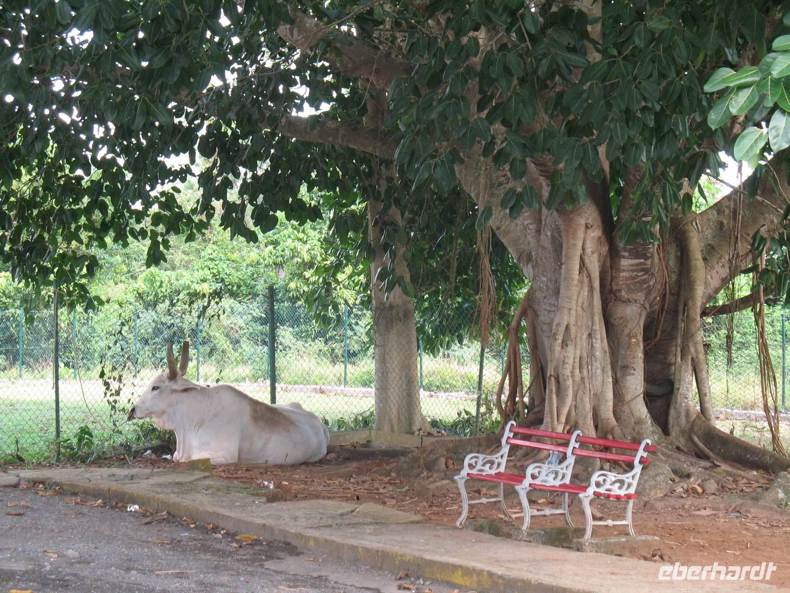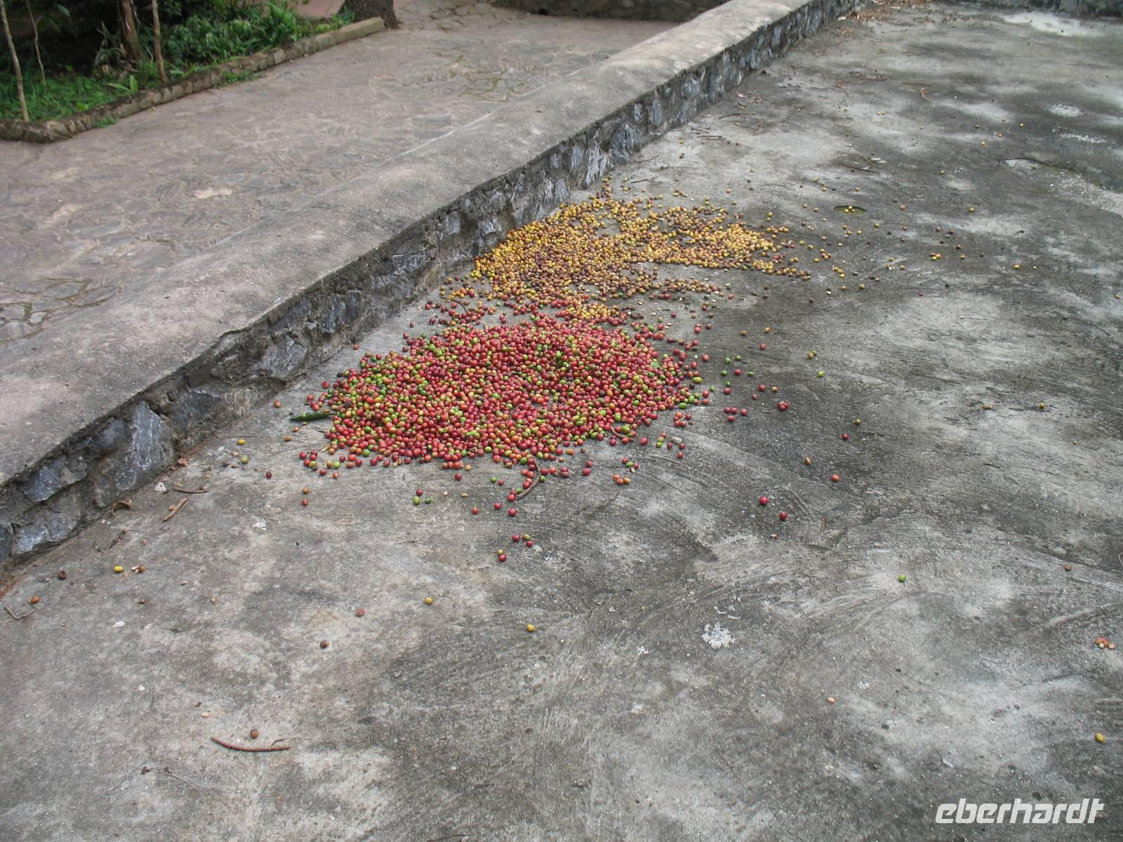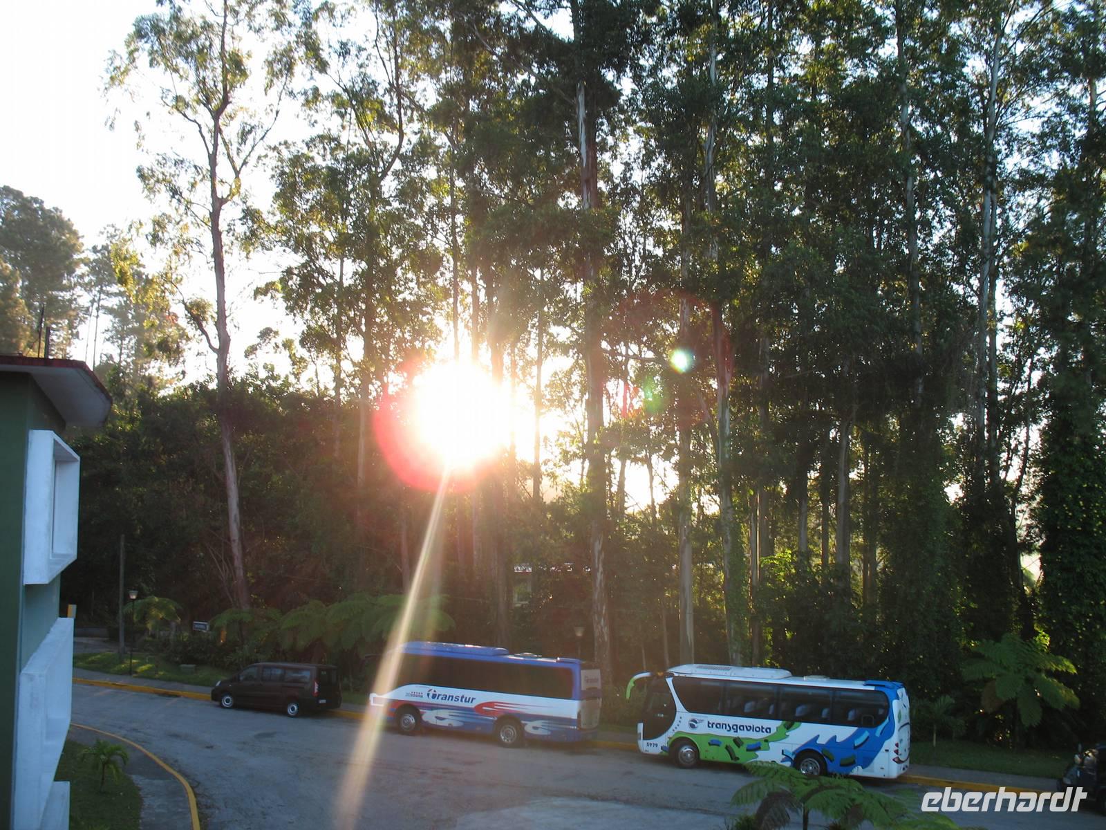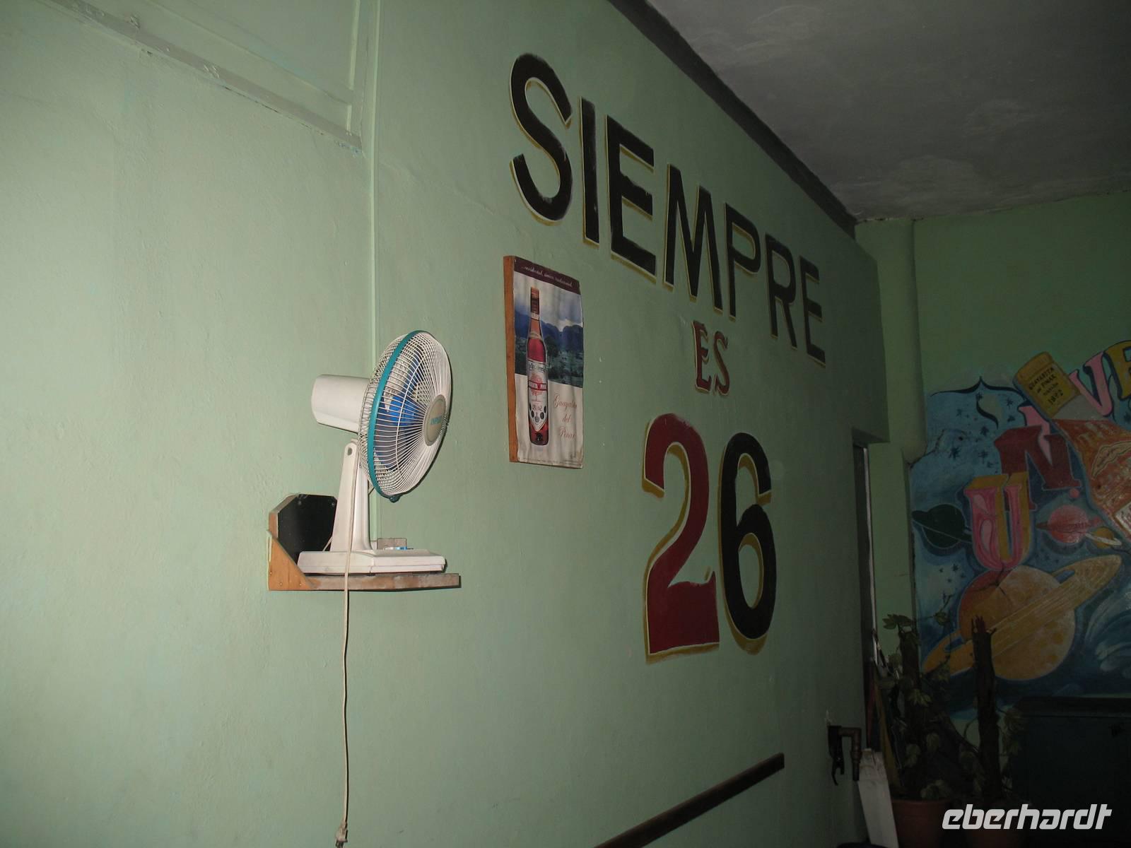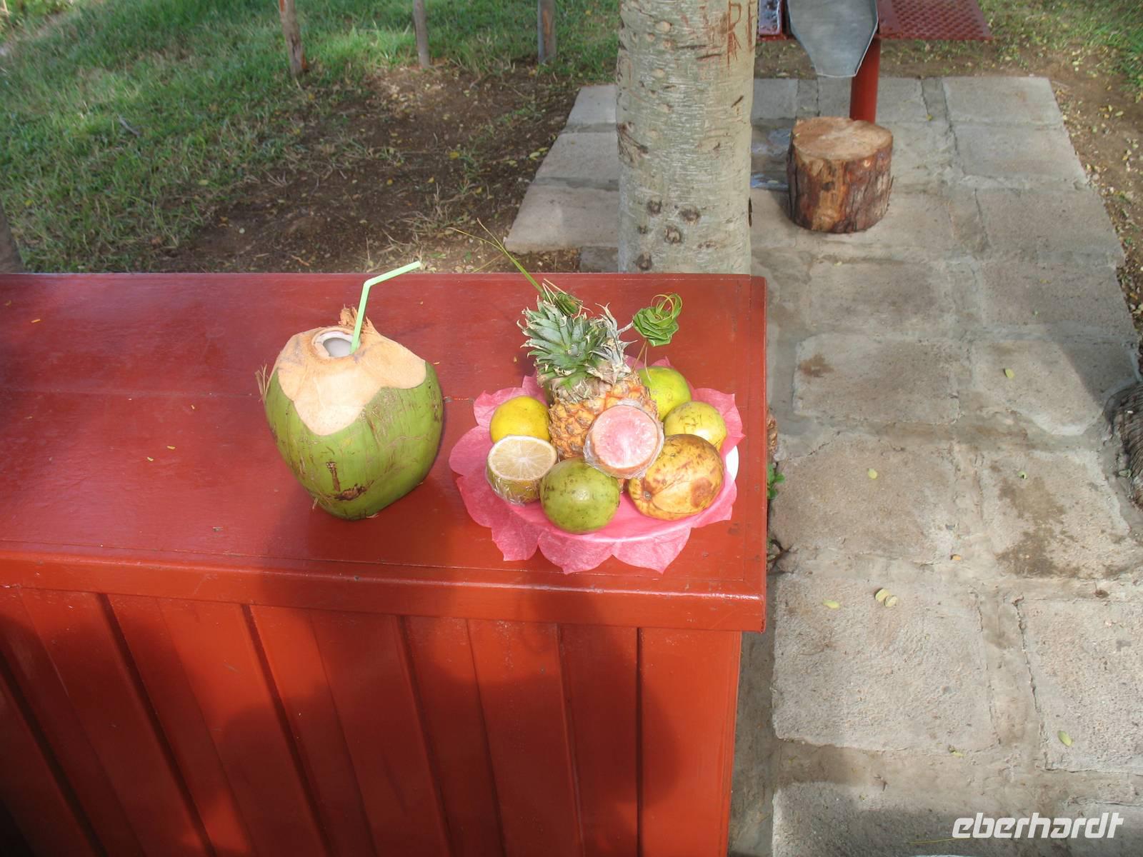 Unser heutiger Tagesprogrammpunkt zum "Bergfest" der Reise ist eine großartige Wanderung im Naturpark Guanayara! Nach reichhaltigem Frühstück fahren wir zusammen mit Vivian und unserem Wanderführer Eduardo im russischen LKW zum Park Guanayara. Die Wanderung von drei Kilometern beginnt an einer Kaffeeplantage, wo wir von Eduardo sehr viel zu Anbau und Verarbeitung des Kaffees erfahren. Mit vielen weiteren Erklärungen zur Natur sowie verschiedenen Pflanzen und Bäumen wie afrikanischer Tulpenbaum "Spathodea campanulata", Obstbanane, Yucca Palme und Mamey sapote wandern wir weiter zum Wasserfall. Eduardo berichtet uns, dass es über 8.000 unterschiedliche Bäume, Pflanzen und Sträucher sowie 96 verschiedene Palmenarten gibt. Die Königspalme ist Nationalbaum und die weiße Schmetterlingsjasmin "Mariposa blanca" Nationalblume Kubas. Der Nationalvogel heißt Kubatrogon oder besser Tocororo "Priotelus temnurus" und er ist der kubanische Nationalvogel, da er die gleichen Farben wir die Nationalflagge im Gefieder hat, also eine rote und weiße Farbe an der Brust und auf dem Höcker eine dunkle blaue Farbe. Andere kubanische Einwohner sagen auch, dass er der Nationalvogel ist, weil er genauso viel tanzt und singt wie die Kubaner selbst :-) Bevor wir den rund 30 Meter hohen Wasserfall "El Rocio" fotografieren, legen wir zuvor einen Zwischenstopp in einer kleinen Höhle ein. Weiter erzählt uns Eduardo, dass er mehrere Jahre in Sachsen gelebt und viele Orte besucht hat, an denen unsere Gäste auch zuhause sind, was für ein amüsanter Zufall :-) Nur wenige Minuten nachdem wir den tollen Wasserfall fotografiert haben, nehmen wir auch schon ein tolles Bad im natürlichen Wasserbecken in der Nähe, wirklich sehr erfrischend. Heute ist ja auch der 11.11.2014 und in Deutschland wird um 11.11 Uhr die Faschingszeit eingeleitet. Auch wenn wir in Kuba sind, wollen wir diese Zeit dennoch feiern, so dass wir pünktlich um 11.11 Uhr kubanischer Zeit gemeinsam mit leckerem mitgebrachten fünfjährigen Rum "Añejo Especial" anstoßen. Wir genießen die Natur und erhalten weitere spannende Informationen zu Kultur, Menschen und deren Leben auf dieser karibischen Insel. Beispielsweise gibt er uns interessante Auskünfte zur Lebensmittelkarte, welche jede kubanische Familie vom Staat für wenig Geld erhält. Eine Karte gilt für ein ganzes Jahr mit einer Seite für jeden Monat. Über diese Karte erhalten die Kubaner unter anderem eine bestimmte Menge im Monat unter anderem an Reis, Bohnen, Speiseöl, Milch, Brot oder Eier. Für die Mehrheit der Familien reicht diese Karte aber nicht aus, so dass sie bei privaten Händlern oder auch beim Staat für einen weitaus teuren, teilweise bis zu dreifach höheren Preis weitere Lebensmittel kaufen müssen. Außerdem erfahren wir von Eduardo, dass sowohl Erziehung und Schulbildung als auch das Gesundheitssystem vom Staat finanziert werden. In diesem Sinne gibt es keine direkten Steuerabgaben, lediglich ein gewisser Teil vom Gehalt wird für die Rente abgezogen. Beispielweise können auch Brillen und Hörgeräte für wenig Geld erworben werden. Hinsichtlich der Miete zeigt sich ein ähnliches Bild, auch hier sollen sich die Kosten im Rahmen halten. Im Gegensatz dazu sind aber andere Sachen, welche nicht alltäglich sind, wesentlich teurer, zum Beispiel Waschmaschinen, Fernsehapparate oder auch Kleidung. In Kuba soll es keine Obdachlose geben und auch sehr wenige Mütter sollen ihre Kinder verlassen, so dass diese Kinder in einem Heim leben müssen. Unsere Wanderführer erzählen uns, dass Kuba zwar ein armes Land, aber auch ein sicheres Land ist. Unfassbarer und auch unverständlich für uns ist aber vielmehr, dass es in Kuba für Mord eine wesentlich geringere Haftstrafe als für Drogenhandel gibt. Weiter essen Kubaner wenig Rindfleisch, da sie von den wenigen Kühen, welche sie haben, eher die Milch statt das Fleisch zum Leben benötigen. Das kubanische Lieblingsfleisch ist demnach nicht das Rindfleisch, sondern das Schweinefleisch oder auch das uns bereits mehrmals servierte Hühnchen. Bei diesem Thema bekommen wir direkt Hunger, so dass unsere Wanderung auch schon weitergeht. Zuvor sehen wir noch einen kleinen Kolibri in seinem Nest. Unterwegs erfahren wir von Eduardo weitere Informationen zum kubanischen Schulsystem. Die Eltern müssen unter anderem den Rucksack für ihre Kinder kaufen, das Mittagessen in der Schule ist frei, aber leider nicht gut. Bücher und Schreibzeug bekommen die Kinder in der Schule, diese müssen sie nach dem Unterricht aber wieder abgeben. Es besteht bis zur neunten Klasse Schulpflicht in Kuba. Wir laufen rund eine Stunde bis zum Restaurant "La Gellega", wo wir unser Mittagessen zu uns nehmen. Empfangen werden wir natürlich mit einem leckeren Begrüßungscocktail. Als Hauptgericht gibt es köstliches Omelette oder gebratenes Huhn zur Auswahl mit verschiedenen Beilagen. Im Anschluss fahren wir im LKW zum Kaffeemuseum "Casa Museo del Café", wo uns Eduardo zunächst an Exponaten im Außenbereich die traditionelle Verarbeitung und Zubereitung des Kaffees erklärt und dann uns auch durch das kleine Café mit historischen Gegenständen führt. Danach sitzen alle noch vor oder im Haus und genießen einen starken sehr guten Kaffee. Am frühen Nachmittag fahren wir wieder zum Hotel zurück. Angekommen im Hotel verabreden wir uns um 16.30 Uhr zum gemeinsamen Feiern des Bergfestes unsere Reise. Die freie Zeit nutzen wir zum Schwimmen im Hallenbad oder einem Spaziergang durch die Hotelanlage und Umgebung. Das Zimmer der Reisebegleitung besitzt zwei große Räume, eine Art Wohn- und Schlafzimmer, so dass wir uns hier alle zum "Bergfest" eintreffen. Als Überraschung gibt es dieses Mal den sechsjährigen Rum "Añejo Reserva" zum Probieren, welchen wir zusammen mit Coca Cola als Cuba Libre trinken. Wir genießen diesen köstlichen Cocktail und lassen dabei die wunderbaren Eindrücke der letzten Tage Revue passieren. Um 19.00 Uhr gehen wir gemeinsam zum Abe