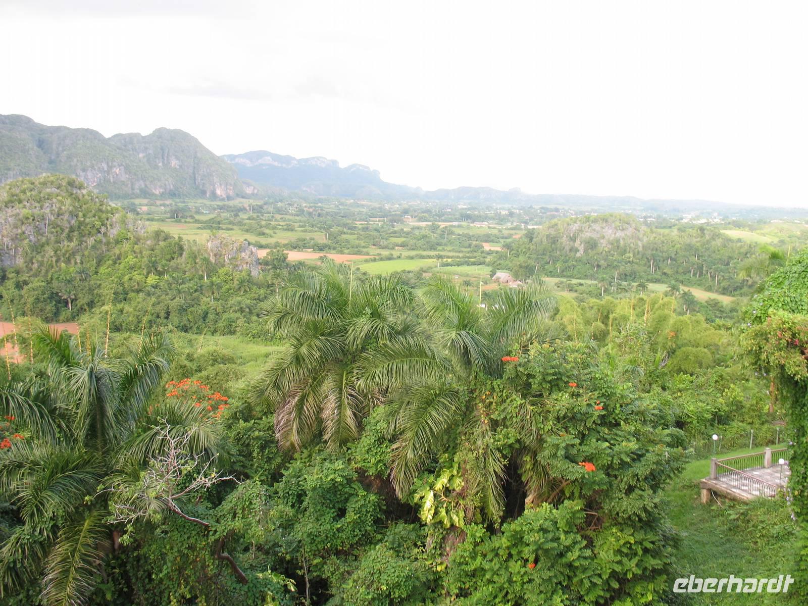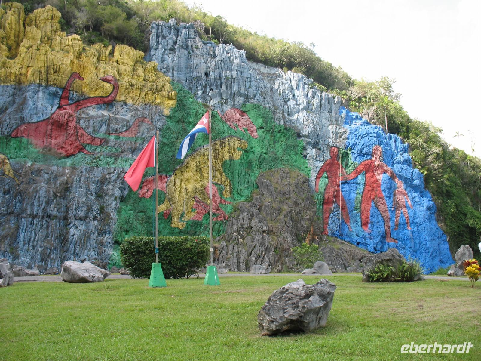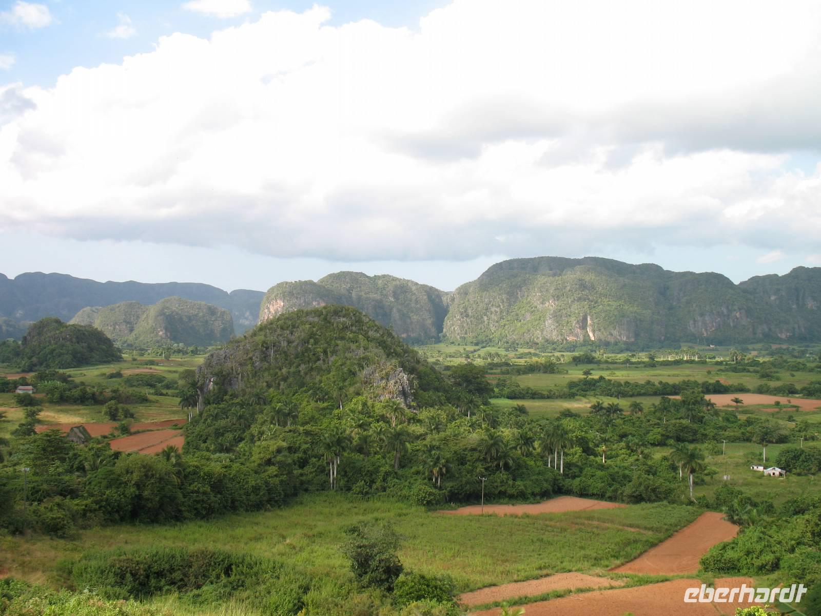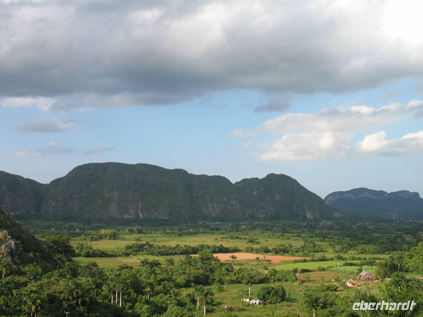 Heute haben wir eine längere Fahrt vor uns, so dass wir nach einem guten Frühstück bereits vor 09.00 Uhr zum Valle de Viñales starten. Das rund zehn Kilometer lange und circa vier Kilometer breite Tal ist eine der schönsten kubanischen Landschaften. Es befindet sich im Orgelpfeifengebirge „Sierra de los Órganos" und im Jahre 1999 erhielt es von der UNESCO die Auszeichnung „Kulturlandschaft der Menschheit". Auf unserer Fahrt legen wir einen Bio-Stopp und zudem einen Zwischenstopp in der Likörfabrik des Guayabita del Pinar als schöne unerwartete Überraschung für unsere Gäste ein :-) Nach einer kleinen Führung können wir sowohl den süßen als auch herben Schnaps probieren. Langsam gewöhnen wir uns an leckere Begrüßungscocktails und kleine Schnäpse zwischendurch, aber schließlich ist Kuba auch als das Land des Rums bekannt, so dass dieser und andere bekannte Schnäpse zum Probieren auf unserer Reise nicht fehlen dürfen :-) Anschließend fahren wir weiter zur nördlich von Viñales in der Provinz Pinar del Río gelegenen Tropfsteinhöhle "Cueva del Indio". Wir besichtigen die Höhle zu Fuß und bei einer Bootsfahrt von zehn Minuten durch die Höhle bestaunen wir weitere Gebilde an der Decke. Nächster Reiseprogrammpunkt ist die Felsmalerei "Mural de la Prehistoria", welches mit einer Höhe von 120 Metern und Breite von 180 Metern im Jahre 1961 vom mexikanischen Kunstmaler Leovigildo González Morillo auf einen Kalkfelsen geschaffen wurde. Die Farben dieses Kunstwerkes müssen regelmäßig aufgrund zahlreicher und heftiger Regenfälle aufgebessert werden. Danach fahren wir zu einer Bauernfamilie im Valle de Viñales, wo wir im Trocknungsstall "Casa Veguero" Erklärungen zum Tabakanbau erhalten und einem Tabakbauern beim Rollen einer Zigarre zuschauen. Danach gibt es abermals einen leckeren Cocktail. Im Anschluss geht es auch schon weiter zum Restaurant mit Panorama-Blick über das Valle de Viñales in der Nähe des Hotels "Los Jazmines". Das Mittagessen ist sehr lecker, es gibt mehrere verschiedene Gänge unter anderem mit köstlicher Suppe und knusprigen Bananenchips. Der Blick über das Tal ist unbezahlbar :-) Mit viel Fantasie können wir sehen, dass die Gebirgsform auf der anderen Seite wie drei liegende Elefanten ausschaut. Wir sitzen in einer Art offenem Baumhaus und genießen Aussicht, Essen und Ambiente. Uns gefällt es so gut, dass wir erst über drei Stunden später nach kurzem Blick vom Aussichtspunkt am Hotel "Los Jazmines" wieder zurück nach Havanna fahren. Unser Abendessen nehmen wir im Hotelrestaurant ein. Als Hauptgang gibt es Suppe, Fisch oder Hühnchen. Für diejenige Gäste, welche gestern nicht im "La Taberna de la Muralla" gewesen sind, wird es heute Abend spannend. Wir werden das berühmte Freiluft-Kabarett "Tropicana" mit tollem Unterhaltungsprogramm besuchen. Dabei ist es wichtig zu wissen, dass die Männer lange Hosen tragen müssen. Zwar hat einer der Gäste eine halblange Hose an, aber glücklicherweise können wir eine Ersatzhose bei der Garderobe für den Abend leihen :-) Am Eingang erhalten Männer eine Zigarre und Damen eine Rose, auf Anfrage auch gern eine Zigarre für die Frauen. Es folgt eine großartige zweistündige Tanz- und Musikshow, eine Flasche fünfjährigen Rums für drei Personen, ein Glas Coca Cola für jeden und eine kleine Schale mit Nüssen und Pralinen. Falls wir die Flasche nicht komplett leeren, dann können wir den Rest mitnehmen. Wir sind ganz begeistert von der Show und dem musikalischem Gesang. Nach der Show haben wir noch die Möglichkeit, selbst auf der Bühne mitzutanzen, was wir natürlich gern wahrnehmen. Wir haben so viel Spaß, dass wir gar nicht aufhören möchten. Aber es ist schon halb eins morgens, unserer Busfahrer sollte auch schlafen gehen und somit fahren wir zurück zum Hotel. Wirklich ein gelungener Abschluss eines wunderbaren Tages :-)