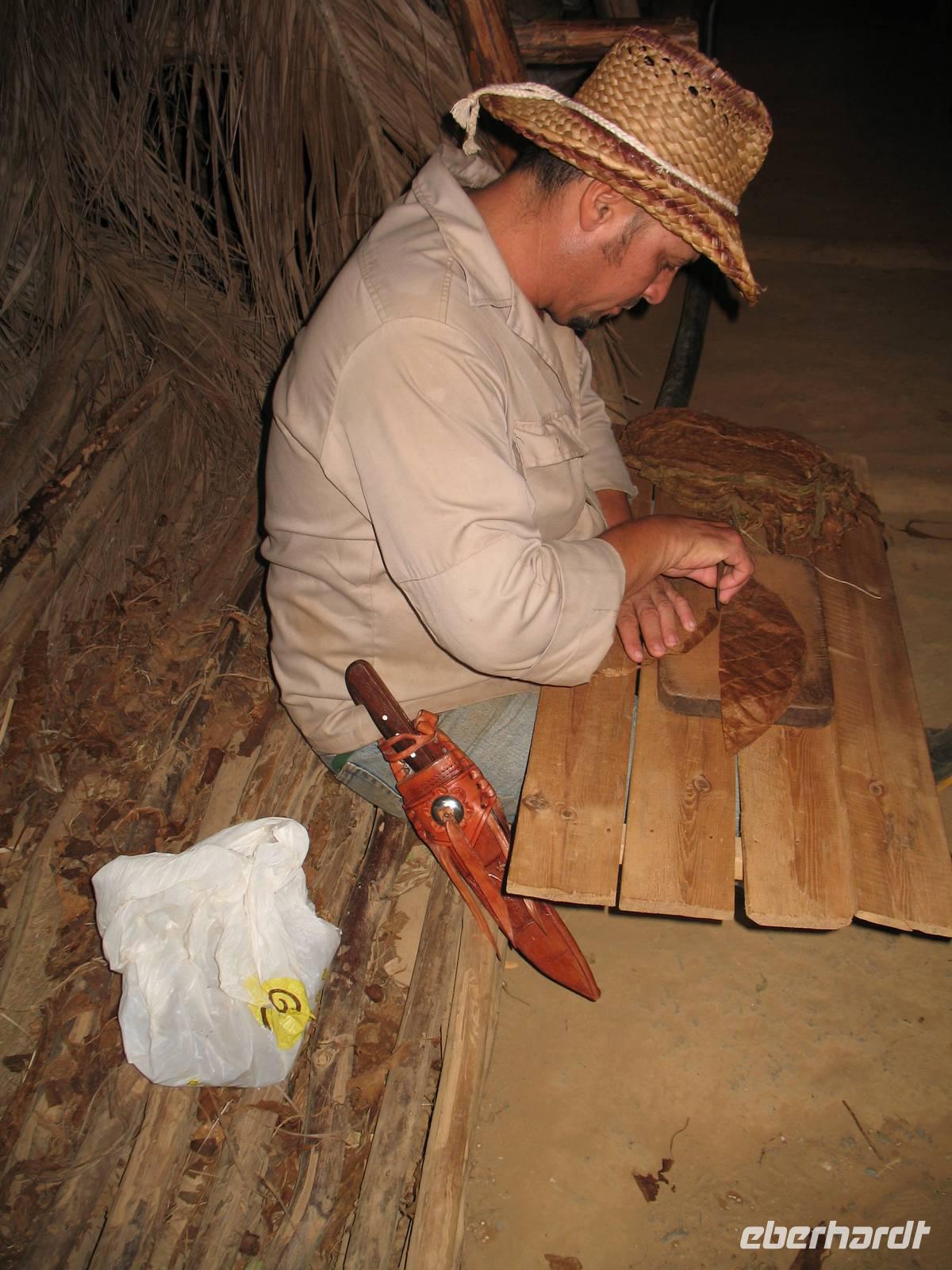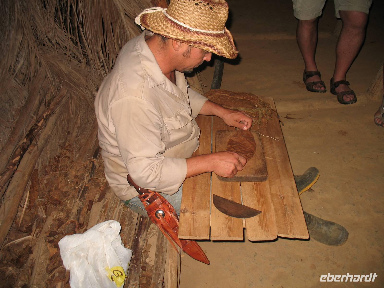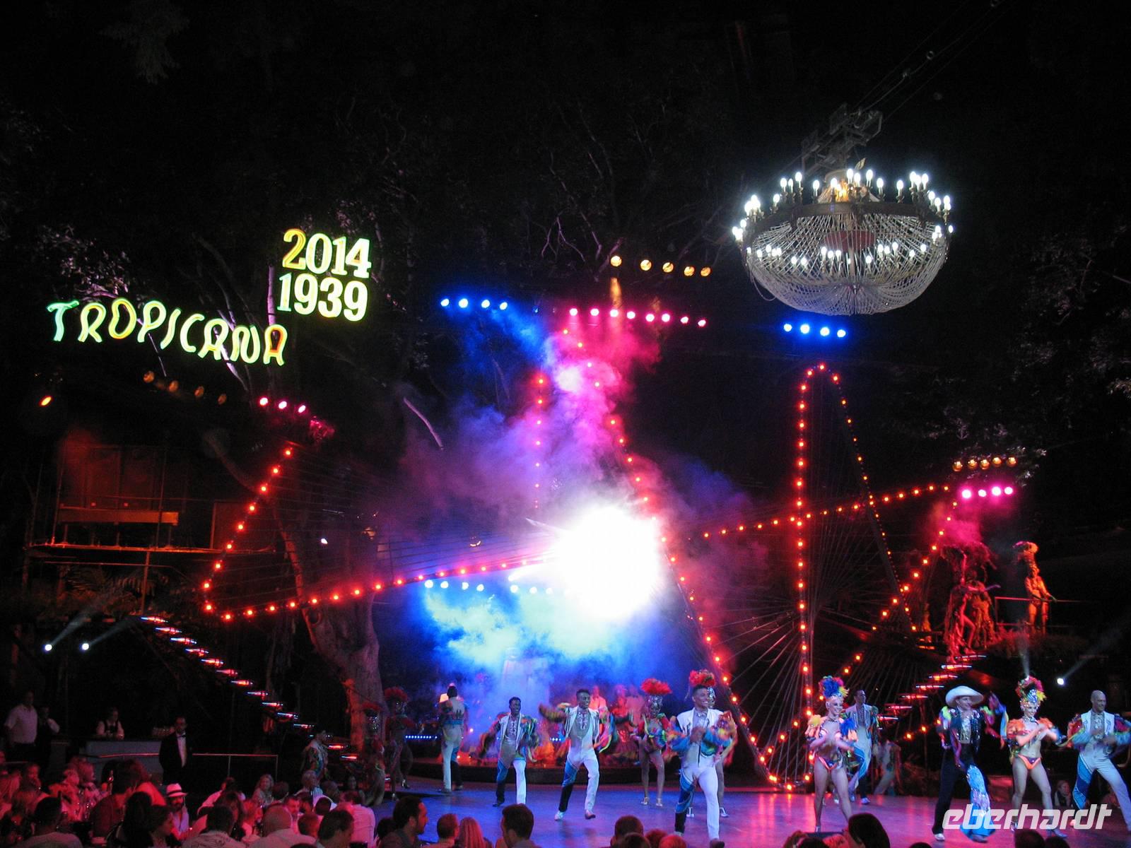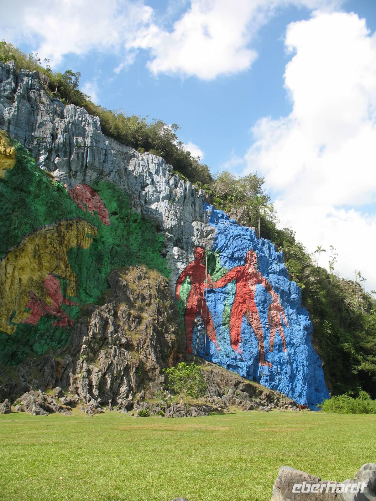 Heute haben wir eine längere Fahrt vor uns, so dass wir nach einem guten Frühstück bereits vor 09.00 Uhr zum Valle de Viñales starten. Das rund zehn Kilometer lange und circa vier Kilometer breite Tal ist eine der schönsten kubanischen Landschaften. Es befindet sich im Orgelpfeifengebirge „Sierra de los Órganos" und im Jahre 1999 erhielt es von der UNESCO die Auszeichnung „Kulturlandschaft der Menschheit". Auf unserer Fahrt legen wir einen Bio-Stopp und zudem einen Zwischenstopp in der Likörfabrik des Guayabita del Pinar als schöne unerwartete Überraschung für unsere Gäste ein :-) Nach einer kleinen Führung können wir sowohl den süßen als auch herben Schnaps probieren. Langsam gewöhnen wir uns an leckere Begrüßungscocktails und kleine Schnäpse zwischendurch, aber schließlich ist Kuba auch als das Land des Rums bekannt, so dass dieser und andere bekannte Schnäpse zum Probieren auf unserer Reise nicht fehlen dürfen :-) Anschließend fahren wir weiter zur nördlich von Viñales in der Provinz Pinar del Río gelegenen Tropfsteinhöhle "Cueva del Indio". Wir besichtigen die Höhle zu Fuß und bei einer Bootsfahrt von zehn Minuten durch die Höhle bestaunen wir weitere Gebilde an der Decke. Nächster Reiseprogrammpunkt ist die Felsmalerei "Mural de la Prehistoria", welches mit einer Höhe von 120 Metern und Breite von 180 Metern im Jahre 1961 vom mexikanischen Kunstmaler Leovigildo González Morillo auf einen Kalkfelsen geschaffen wurde. Die Farben dieses Kunstwerkes müssen regelmäßig aufgrund zahlreicher und heftiger Regenfälle aufgebessert werden. Danach fahren wir zu einer Bauernfamilie im Valle de Viñales, wo wir im Trocknungsstall "Casa Veguero" Erklärungen zum Tabakanbau erhalten und einem Tabakbauern beim Rollen einer Zigarre zuschauen. Danach gibt es abermals einen leckeren Cocktail. Im Anschluss geht es auch schon weiter zum Restaurant mit Panorama-Blick über das Valle de Viñales in der Nähe des Hotels "Los Jazmines". Das Mittagessen ist sehr lecker, es gibt mehrere verschiedene Gänge unter anderem mit köstlicher Suppe und knusprigen Bananenchips. Der Blick über das Tal ist unbezahlbar :-) Mit viel Fantasie können wir sehen, dass die Gebirgsform auf der anderen Seite wie drei liegende Elefanten ausschaut. Wir sitzen in einer Art offenem Baumhaus und genießen Aussicht, Essen und Ambiente. Uns gefällt es so gut, dass wir erst über drei Stunden später nach kurzem Blick vom Aussichtspunkt am Hotel "Los Jazmines" wieder zurück nach Havanna fahren. Unser Abendessen nehmen wir im Hotelrestaurant ein. Als Hauptgang gibt es Suppe, Fisch oder Hühnchen. Für diejenige Gäste, welche gestern nicht im "La Taberna de la Muralla" gewesen sind, wird es heute Abend spannend. Wir werden das berühmte Freiluft-Kabarett "Tropicana" mit tollem Unterhaltungsprogramm besuchen. Dabei ist es wichtig zu wissen, dass die Männer lange Hosen tragen müssen. Zwar hat einer der Gäste eine halblange Hose an, aber glücklicherweise können wir eine Ersatzhose bei der Garderobe für den Abend leihen :-) Am Eingang erhalten Männer eine Zigarre und Damen eine Rose, auf Anfrage auch gern eine Zigarre für die Frauen. Es folgt eine großartige zweistündige Tanz- und Musikshow, eine Flasche fünfjährigen Rums für drei Personen, ein Glas Coca Cola für jeden und eine kleine Schale mit Nüssen und Pralinen. Falls wir die Flasche nicht komplett leeren, dann können wir den Rest mitnehmen. Wir sind ganz begeistert von der Show und dem musikalischem Gesang. Nach der Show haben wir noch die Möglichkeit, selbst auf der Bühne mitzutanzen, was wir natürlich gern wahrnehmen. Wir haben so viel Spaß, dass wir gar nicht aufhören möchten. Aber es ist schon halb eins morgens, unserer Busfahrer sollte auch schlafen gehen und somit fahren wir zurück zum Hotel. Wirklich ein gelungener Abschluss eines wunderbaren Tages :-)