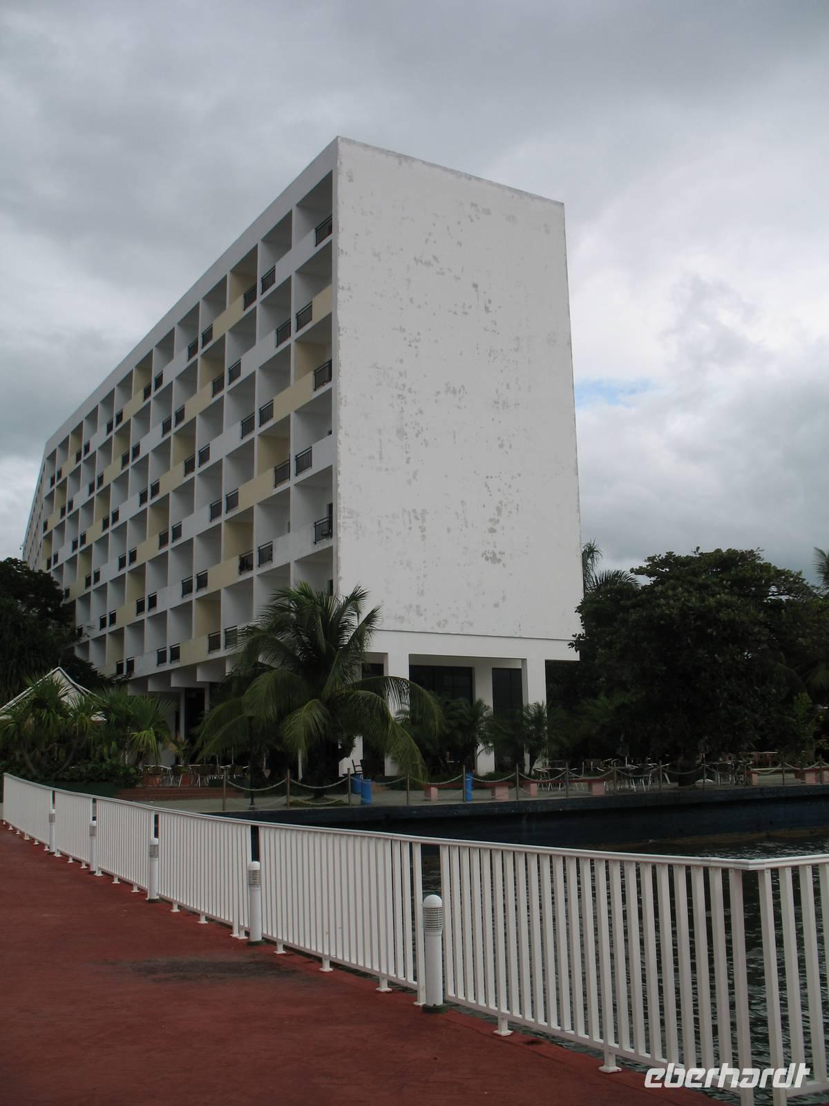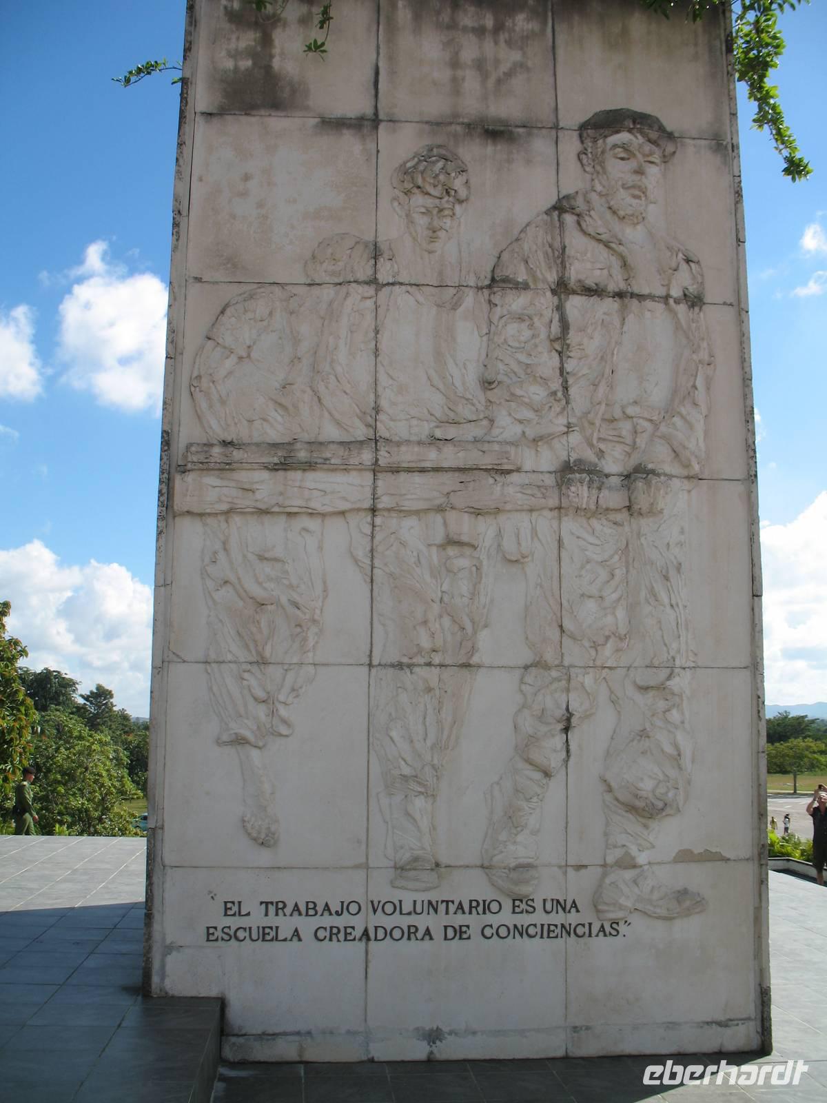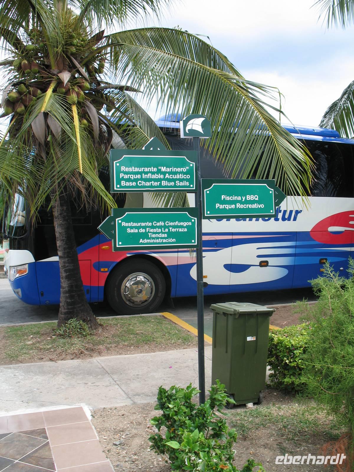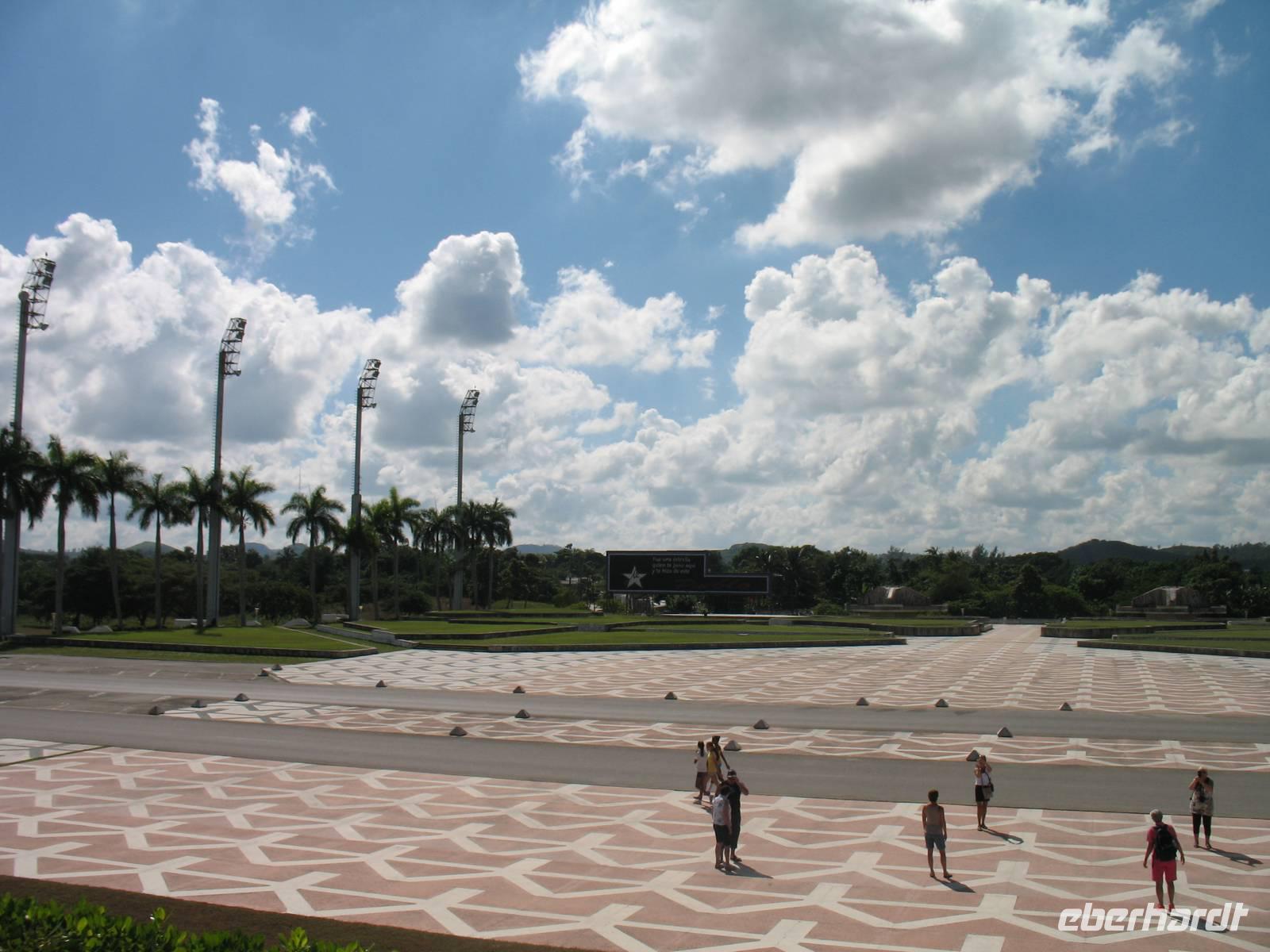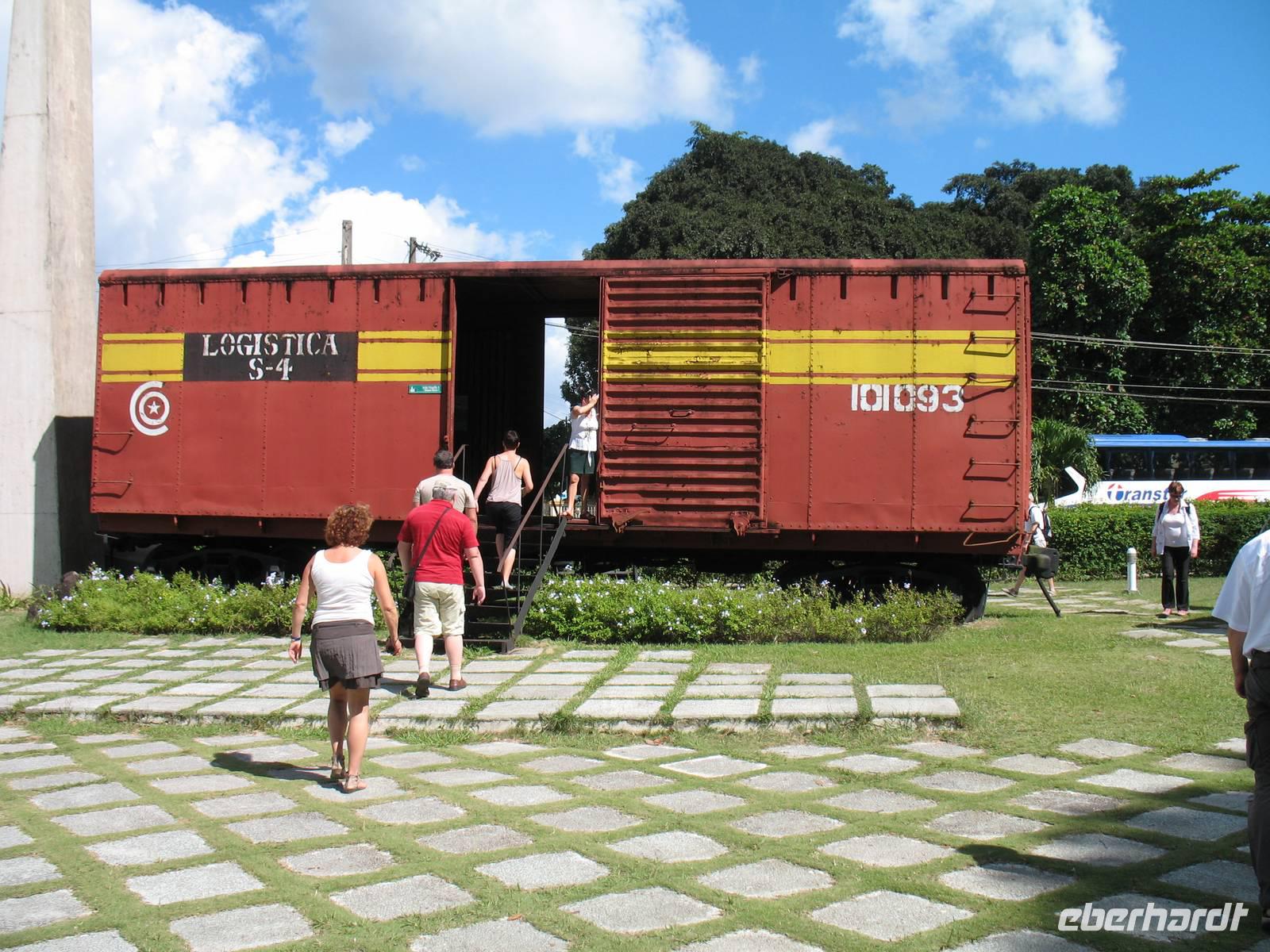 Kaum zu glauben, aber wir sind schon seit neun Tagen auf dieser wunderschönen Insel unterwegs und haben bereits viele Highlights erlebt. Heute fahren wir über Santa Clara nach Cayo Santa María, wo wir zwei traumhafte Tage mit All-Inklusive-Badeaufenthalt verbringen werden. Auf unserer Fahrt legen wir noch einen kleinen Fotostopp an der Snack Bar "Mirador del Hanabanilla" mit atemberaubenden Blick über Topes de Collantes ein. Unterwegs können wir auch wieder die verschiedenen Palmenarten der karibischen Insel wie die Königspalme "Roystonea regia", die "schwangeren" Barrigona-Palmen oder Kokospalmen betrachten. Am frühen Vormittag erreichen wir Santa Clara, um das Memorial und Museum von Che Guevara auf dem Revolutionsplatz zu besuchen. Sein richtiger Name lautet Ernesto Rafael Guevara de la Serna und von 1956 bis 1959 spielte er als Kommandant der Rebellenarmee bei der Kubanischen Revolution eine bedeutende Führungsrolle. Der Argentinier Che Guervara wird noch bis heute als Volksheld in Kuba geschätzt und ist neben Fidel Castro einer der bedeutendsten kubanischen Leitfiguren. Im Jahre 1967 wurde er von der Regierung Boliviens gefangen und nur kurze Zeit später erschossen. Der 1926 geborene Fidel Alejandro Castro Ruz ist ebenfalls kubanischer Revolutionär und Politiker, welcher zusammen mit Che Guervara treibende Kraft der kubanischen Revolution und mit insgesamt 49 Jahren längster regierender Herrscher in Kuba war. Seine politischen Ämter hatte er nach schwerer Erkrankung 2006 vorübergehend abgegeben, zwei Jahre später gab er seinen endgültigen Rücktritt bekannt. Sein Bruder Raúl Castro ist momentan kubanischer Regierungschef, welchen Fidel Castro nur noch beratend zur Seite stehen soll. In Museum und Mausoleum sind keine Taschen oder Kameras erlaubt, auch das Reden im Memorial ist streng verboten! Revolutionsandenken und die Lebensgeschichte Che Guevaras sind im Museum erkennbar. Dann fahren wir nur wenige Minuten weiter, um das Sitio-Museo "Acción contra el Tren Blindado" zu besichtigen und anschließend geht es auch schon zum Restaurant "El Palmas" in Santa Clara. Wir sind ein paar Minuten zu früh am Restaurant, so dass wir uns noch ein wenig in der Hotelanlage umschauen. Dann finden wir uns auch schon zum Mittagessen ein. Es gibt ein sehr leckeres Buffet mit riesiger Auswahl und ganz vielen köstlichen warmen und kalten Speisen, sogar frisch aufgeschnittenes Obst und tolle Süßspeisen, eine wirklich gelungene Einstimmung auf das Essen der kommenden drei Tage :-) Bevor wir zum Hotel nach Cayo Santa María fahren, genießen wir einen leckeren kleinen Becher fünfjährigen Rum, welcher noch vom Besuch im "Tropicana" übrig geblieben ist. Cayo Santa María ist eine Insel, welche über eine 50 Kilometer vom Meer umgebene Straße zu erreichen ist. Kurz zuvor verabschieden wir uns bei einem kurzen Stopp von Vivian und Jadian, welche heute wieder nach Havanna zurückfahren werden. Natürlich gibt es für jeden von uns, der möchte, noch einmal einen Becher Rum, damit wir die Flasche nicht noch ins Hotel mitnehmen müssen. Angekommen im Hotel ist es sehr hektisch, da viele Gruppen gerade abreisen und auf ihre Transfers warten. Trotzdem funktioniert der Check-In im 4-Sterne-Hotel "Memories Paraiso Beach Resort" in Cayo Santa María relativ reibungslos und zur Begrüßung erhalten wir einen tollen Begrüßungscocktail. Dann werden wir in einer Art Golf Caddy zu unserem Bungalow 36 chauffiert. Wir verabreden uns 18.30 Uhr vor der Zimmertür der Reisebegleitung, um gemeinsam zum Abendessen im Buffet-Restaurant zu gehen. Die Zeit bis dahin nutzen wir zum Entspannen, schwimmen im Meer oder besichtigen der Hotelanlage. Als wir abends das Buffet-Restaurant betreten, sind wir zugleich begeistert und fassungslos von der Vielfalt und Angebot an Speisen. Einige Gäste eschrecken sich vielleicht auch vor der Dame, welche auf dem Süßspeisen-Buffet komplett mit Schokolade überzogen sitzt, wirklich eher kurios und befremdlich statt schön anzusehen. Die Schokoladendame sitzt über zwei Stunden dort und lässt sich von den Hotelgästen fotografieren. Nach dem leckersten Essen der ganzen Reise setzen wir uns vorm hoteleigenen Theater "La Parranda" zusammen und trinken gemeinsam leckere Cocktails, bevor wir 21.00 Uhr die Show "Cubano" im Theater anschauen. Nach der tollen Show laufen wir zu unseren Zimmern zurück und verabschieden uns bis zum nächsten Tag.