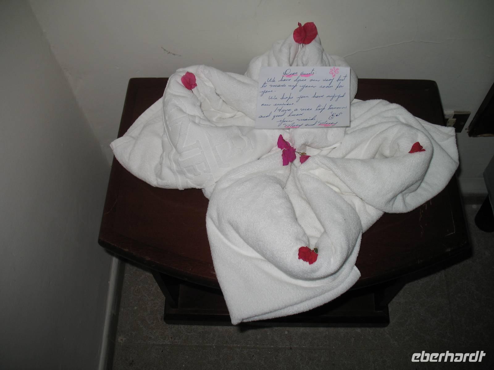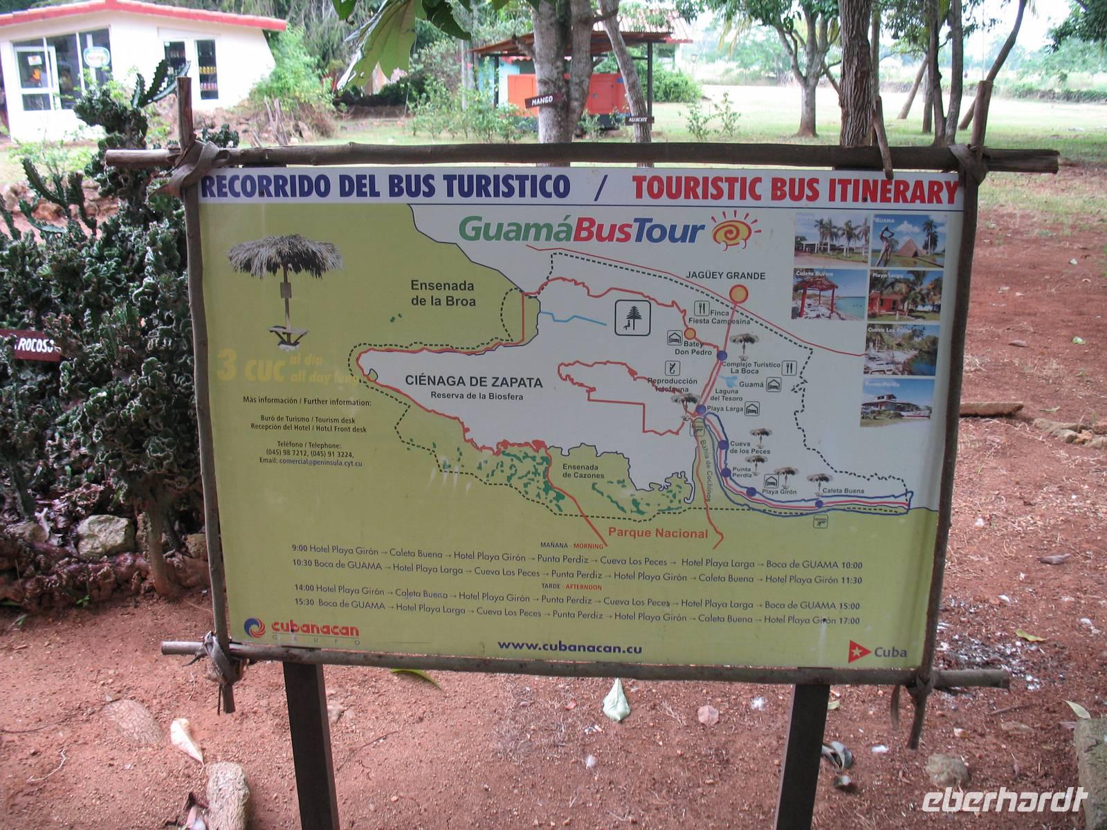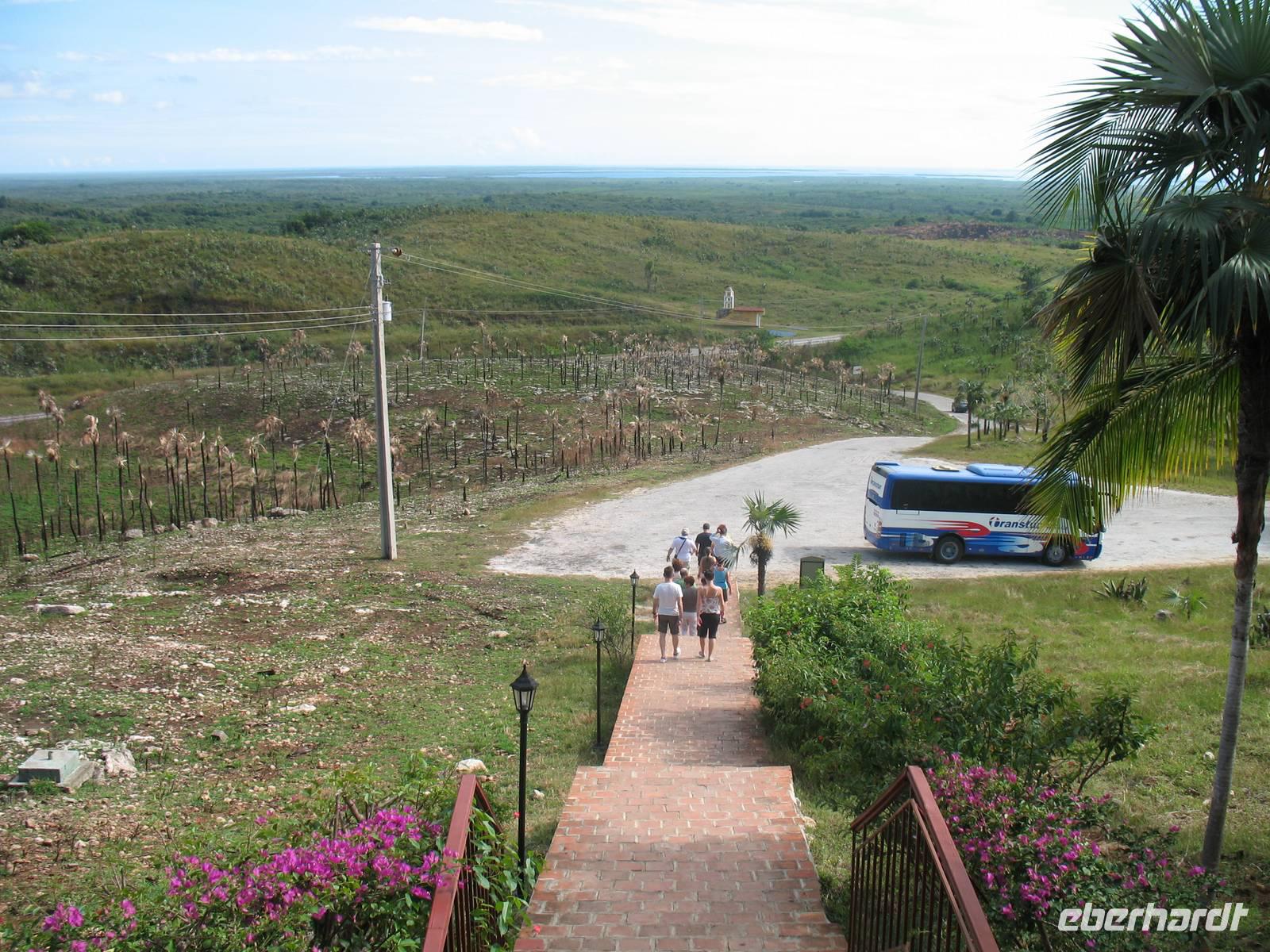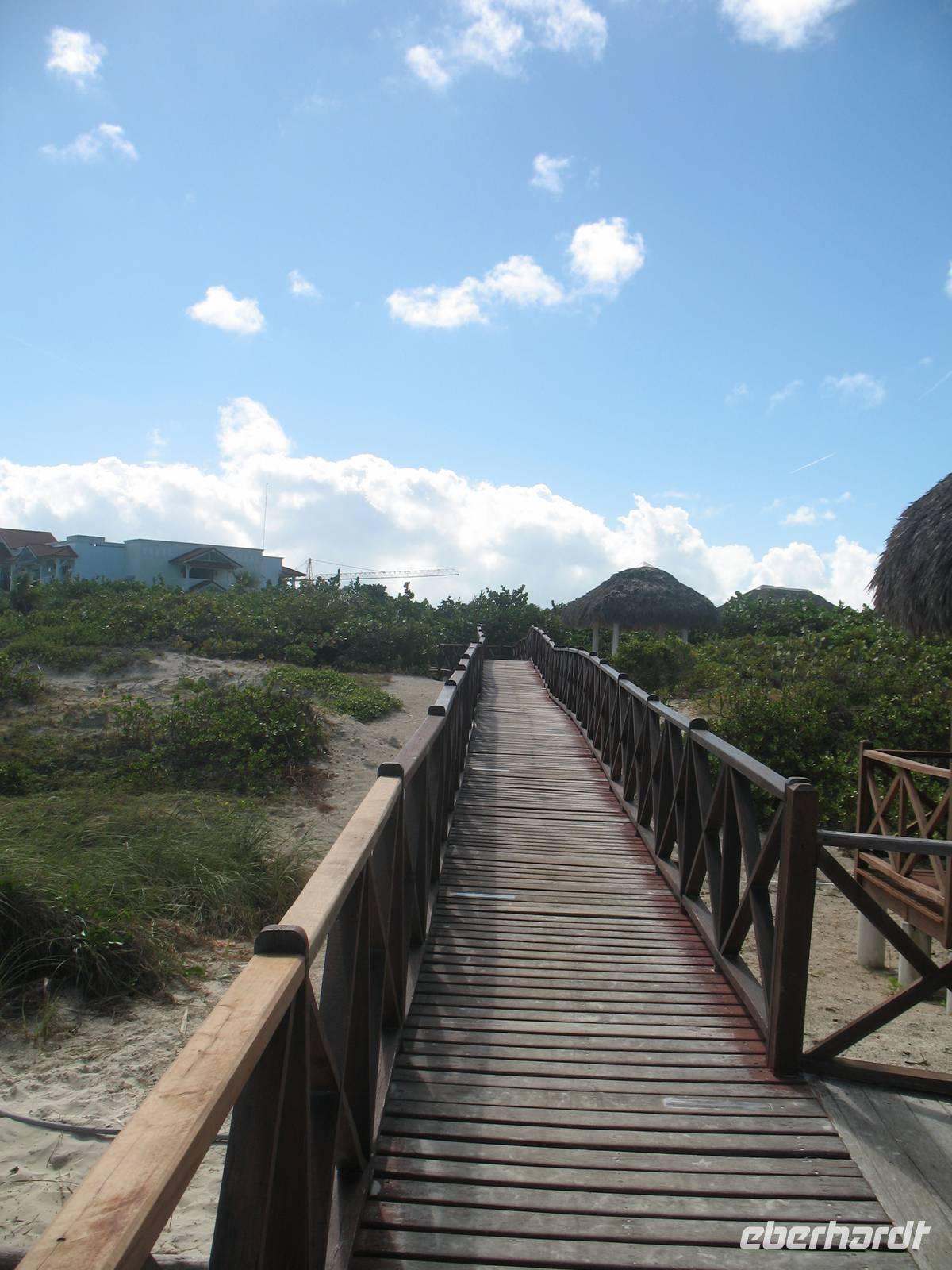 Kaum zu glauben, aber wir sind schon seit neun Tagen auf dieser wunderschönen Insel unterwegs und haben bereits viele Highlights erlebt. Heute fahren wir über Santa Clara nach Cayo Santa María, wo wir zwei traumhafte Tage mit All-Inklusive-Badeaufenthalt verbringen werden. Auf unserer Fahrt legen wir noch einen kleinen Fotostopp an der Snack Bar "Mirador del Hanabanilla" mit atemberaubenden Blick über Topes de Collantes ein. Unterwegs können wir auch wieder die verschiedenen Palmenarten der karibischen Insel wie die Königspalme "Roystonea regia", die "schwangeren" Barrigona-Palmen oder Kokospalmen betrachten. Am frühen Vormittag erreichen wir Santa Clara, um das Memorial und Museum von Che Guevara auf dem Revolutionsplatz zu besuchen. Sein richtiger Name lautet Ernesto Rafael Guevara de la Serna und von 1956 bis 1959 spielte er als Kommandant der Rebellenarmee bei der Kubanischen Revolution eine bedeutende Führungsrolle. Der Argentinier Che Guervara wird noch bis heute als Volksheld in Kuba geschätzt und ist neben Fidel Castro einer der bedeutendsten kubanischen Leitfiguren. Im Jahre 1967 wurde er von der Regierung Boliviens gefangen und nur kurze Zeit später erschossen. Der 1926 geborene Fidel Alejandro Castro Ruz ist ebenfalls kubanischer Revolutionär und Politiker, welcher zusammen mit Che Guervara treibende Kraft der kubanischen Revolution und mit insgesamt 49 Jahren längster regierender Herrscher in Kuba war. Seine politischen Ämter hatte er nach schwerer Erkrankung 2006 vorübergehend abgegeben, zwei Jahre später gab er seinen endgültigen Rücktritt bekannt. Sein Bruder Raúl Castro ist momentan kubanischer Regierungschef, welchen Fidel Castro nur noch beratend zur Seite stehen soll. In Museum und Mausoleum sind keine Taschen oder Kameras erlaubt, auch das Reden im Memorial ist streng verboten! Revolutionsandenken und die Lebensgeschichte Che Guevaras sind im Museum erkennbar. Dann fahren wir nur wenige Minuten weiter, um das Sitio-Museo "Acción contra el Tren Blindado" zu besichtigen und anschließend geht es auch schon zum Restaurant "El Palmas" in Santa Clara. Wir sind ein paar Minuten zu früh am Restaurant, so dass wir uns noch ein wenig in der Hotelanlage umschauen. Dann finden wir uns auch schon zum Mittagessen ein. Es gibt ein sehr leckeres Buffet mit riesiger Auswahl und ganz vielen köstlichen warmen und kalten Speisen, sogar frisch aufgeschnittenes Obst und tolle Süßspeisen, eine wirklich gelungene Einstimmung auf das Essen der kommenden drei Tage :-) Bevor wir zum Hotel nach Cayo Santa María fahren, genießen wir einen leckeren kleinen Becher fünfjährigen Rum, welcher noch vom Besuch im "Tropicana" übrig geblieben ist. Cayo Santa María ist eine Insel, welche über eine 50 Kilometer vom Meer umgebene Straße zu erreichen ist. Kurz zuvor verabschieden wir uns bei einem kurzen Stopp von Vivian und Jadian, welche heute wieder nach Havanna zurückfahren werden. Natürlich gibt es für jeden von uns, der möchte, noch einmal einen Becher Rum, damit wir die Flasche nicht noch ins Hotel mitnehmen müssen. Angekommen im Hotel ist es sehr hektisch, da viele Gruppen gerade abreisen und auf ihre Transfers warten. Trotzdem funktioniert der Check-In im 4-Sterne-Hotel "Memories Paraiso Beach Resort" in Cayo Santa María relativ reibungslos und zur Begrüßung erhalten wir einen tollen Begrüßungscocktail. Dann werden wir in einer Art Golf Caddy zu unserem Bungalow 36 chauffiert. Wir verabreden uns 18.30 Uhr vor der Zimmertür der Reisebegleitung, um gemeinsam zum Abendessen im Buffet-Restaurant zu gehen. Die Zeit bis dahin nutzen wir zum Entspannen, schwimmen im Meer oder besichtigen der Hotelanlage. Als wir abends das Buffet-Restaurant betreten, sind wir zugleich begeistert und fassungslos von der Vielfalt und Angebot an Speisen. Einige Gäste eschrecken sich vielleicht auch vor der Dame, welche auf dem Süßspeisen-Buffet komplett mit Schokolade überzogen sitzt, wirklich eher kurios und befremdlich statt schön anzusehen. Die Schokoladendame sitzt über zwei Stunden dort und lässt sich von den Hotelgästen fotografieren. Nach dem leckersten Essen der ganzen Reise setzen wir uns vorm hoteleigenen Theater "La Parranda" zusammen und trinken gemeinsam leckere Cocktails, bevor wir 21.00 Uhr die Show "Cubano" im Theater anschauen. Nach der tollen Show laufen wir zu unseren Zimmern zurück und verabschieden uns bis zum nächsten Tag.