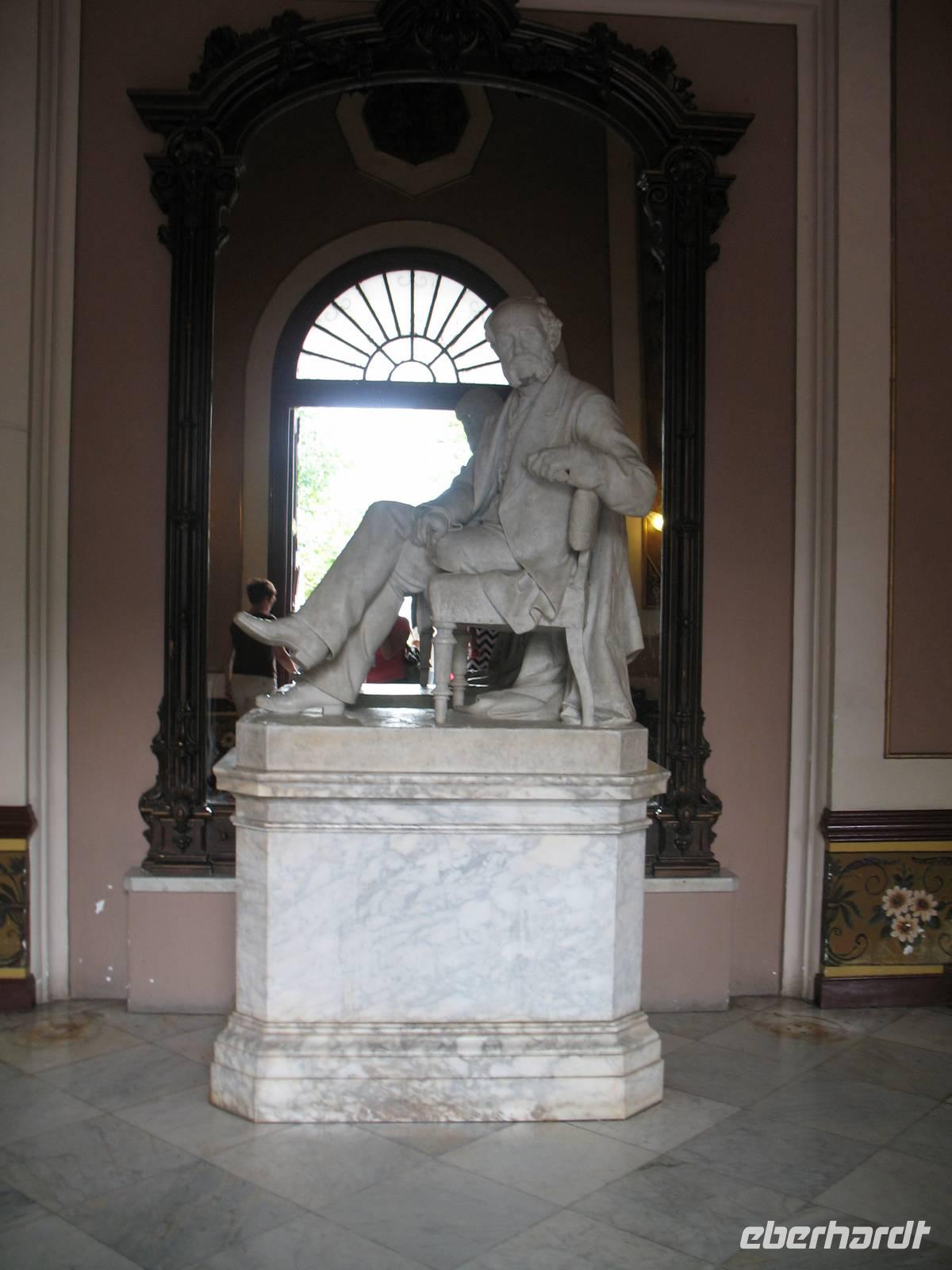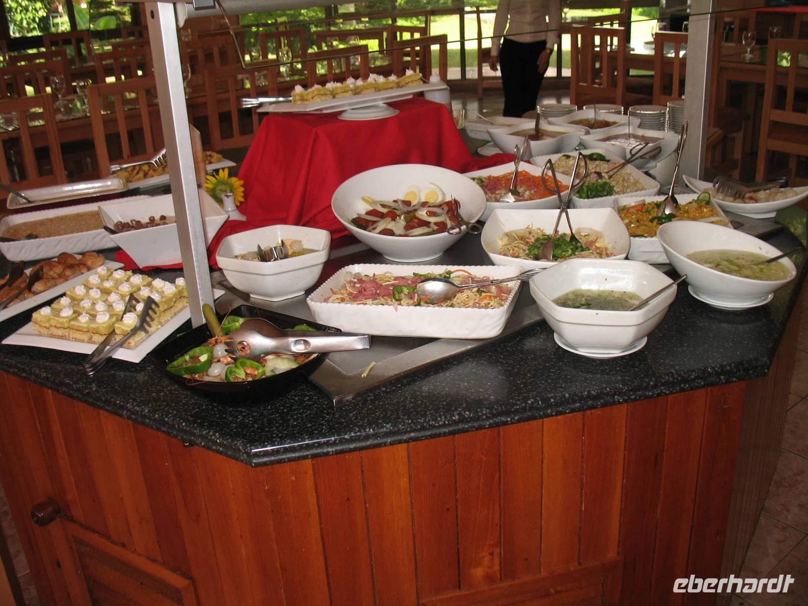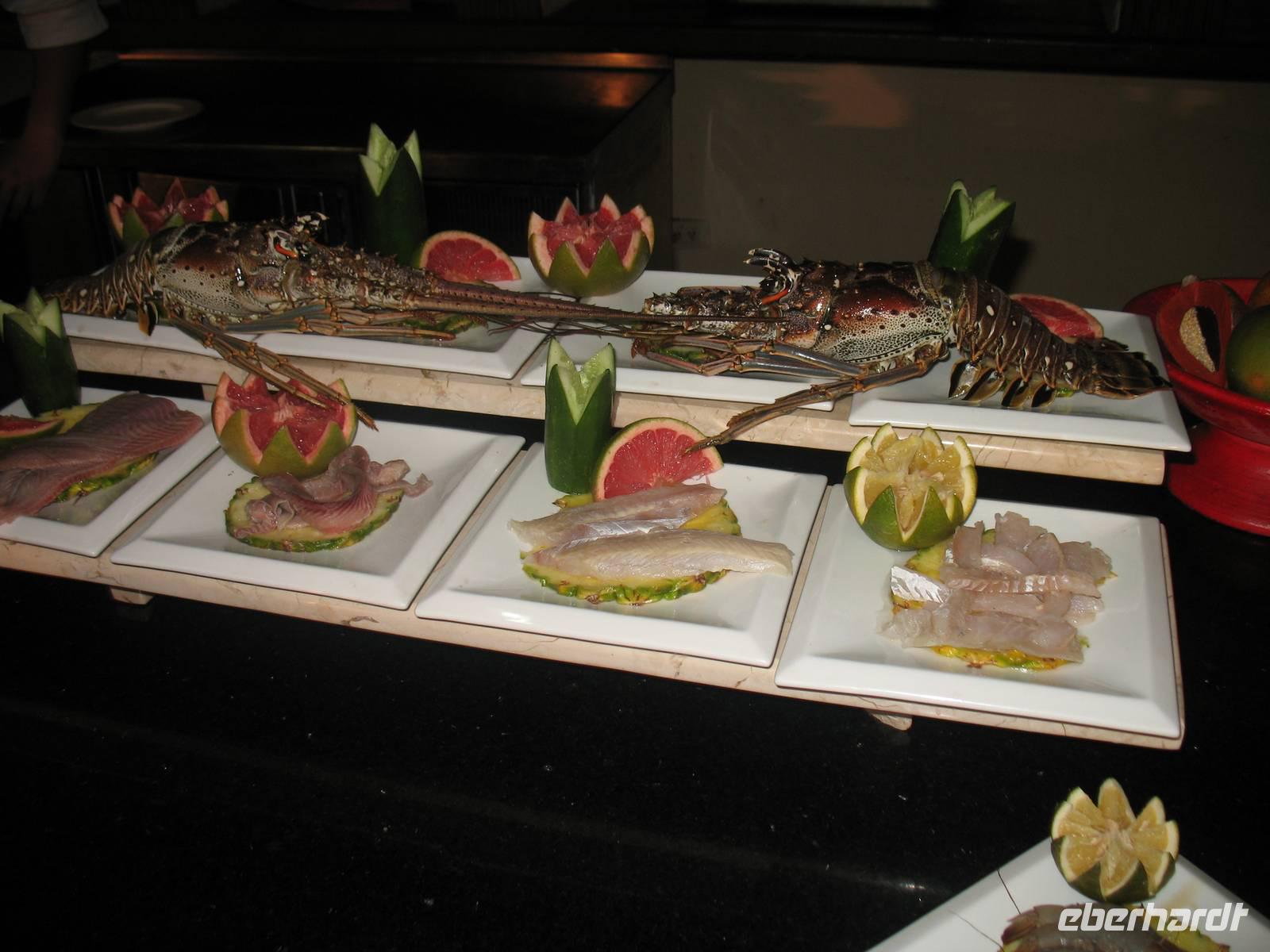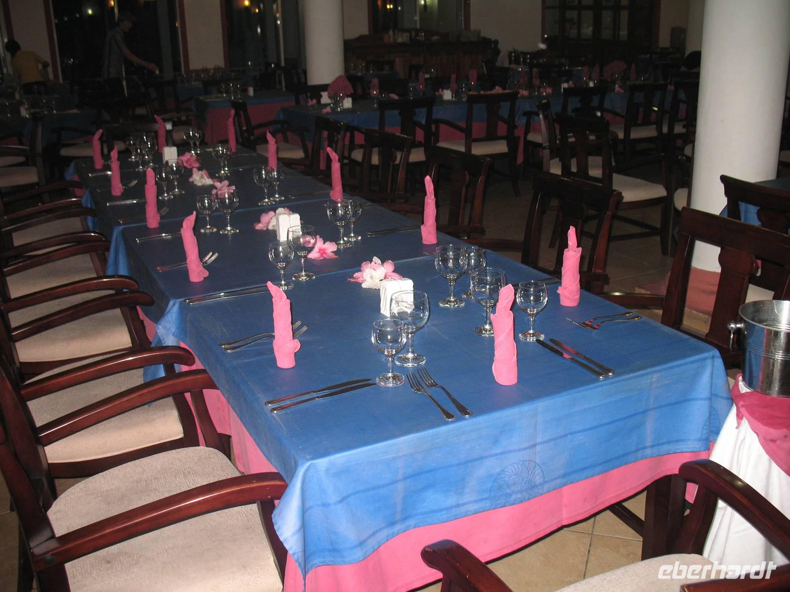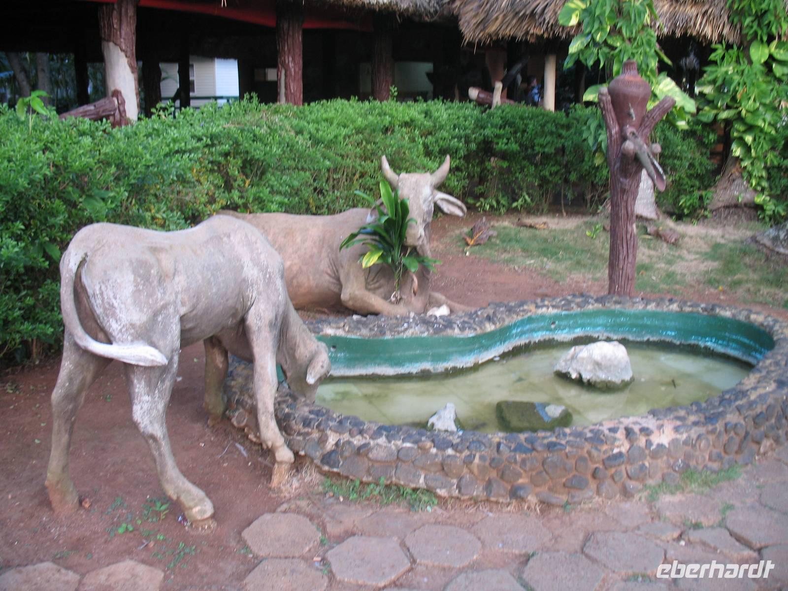 Kaum zu glauben, aber wir sind schon seit neun Tagen auf dieser wunderschönen Insel unterwegs und haben bereits viele Highlights erlebt. Heute fahren wir über Santa Clara nach Cayo Santa María, wo wir zwei traumhafte Tage mit All-Inklusive-Badeaufenthalt verbringen werden. Auf unserer Fahrt legen wir noch einen kleinen Fotostopp an der Snack Bar "Mirador del Hanabanilla" mit atemberaubenden Blick über Topes de Collantes ein. Unterwegs können wir auch wieder die verschiedenen Palmenarten der karibischen Insel wie die Königspalme "Roystonea regia", die "schwangeren" Barrigona-Palmen oder Kokospalmen betrachten. Am frühen Vormittag erreichen wir Santa Clara, um das Memorial und Museum von Che Guevara auf dem Revolutionsplatz zu besuchen. Sein richtiger Name lautet Ernesto Rafael Guevara de la Serna und von 1956 bis 1959 spielte er als Kommandant der Rebellenarmee bei der Kubanischen Revolution eine bedeutende Führungsrolle. Der Argentinier Che Guervara wird noch bis heute als Volksheld in Kuba geschätzt und ist neben Fidel Castro einer der bedeutendsten kubanischen Leitfiguren. Im Jahre 1967 wurde er von der Regierung Boliviens gefangen und nur kurze Zeit später erschossen. Der 1926 geborene Fidel Alejandro Castro Ruz ist ebenfalls kubanischer Revolutionär und Politiker, welcher zusammen mit Che Guervara treibende Kraft der kubanischen Revolution und mit insgesamt 49 Jahren längster regierender Herrscher in Kuba war. Seine politischen Ämter hatte er nach schwerer Erkrankung 2006 vorübergehend abgegeben, zwei Jahre später gab er seinen endgültigen Rücktritt bekannt. Sein Bruder Raúl Castro ist momentan kubanischer Regierungschef, welchen Fidel Castro nur noch beratend zur Seite stehen soll. In Museum und Mausoleum sind keine Taschen oder Kameras erlaubt, auch das Reden im Memorial ist streng verboten! Revolutionsandenken und die Lebensgeschichte Che Guevaras sind im Museum erkennbar. Dann fahren wir nur wenige Minuten weiter, um das Sitio-Museo "Acción contra el Tren Blindado" zu besichtigen und anschließend geht es auch schon zum Restaurant "El Palmas" in Santa Clara. Wir sind ein paar Minuten zu früh am Restaurant, so dass wir uns noch ein wenig in der Hotelanlage umschauen. Dann finden wir uns auch schon zum Mittagessen ein. Es gibt ein sehr leckeres Buffet mit riesiger Auswahl und ganz vielen köstlichen warmen und kalten Speisen, sogar frisch aufgeschnittenes Obst und tolle Süßspeisen, eine wirklich gelungene Einstimmung auf das Essen der kommenden drei Tage :-) Bevor wir zum Hotel nach Cayo Santa María fahren, genießen wir einen leckeren kleinen Becher fünfjährigen Rum, welcher noch vom Besuch im "Tropicana" übrig geblieben ist. Cayo Santa María ist eine Insel, welche über eine 50 Kilometer vom Meer umgebene Straße zu erreichen ist. Kurz zuvor verabschieden wir uns bei einem kurzen Stopp von Vivian und Jadian, welche heute wieder nach Havanna zurückfahren werden. Natürlich gibt es für jeden von uns, der möchte, noch einmal einen Becher Rum, damit wir die Flasche nicht noch ins Hotel mitnehmen müssen. Angekommen im Hotel ist es sehr hektisch, da viele Gruppen gerade abreisen und auf ihre Transfers warten. Trotzdem funktioniert der Check-In im 4-Sterne-Hotel "Memories Paraiso Beach Resort" in Cayo Santa María relativ reibungslos und zur Begrüßung erhalten wir einen tollen Begrüßungscocktail. Dann werden wir in einer Art Golf Caddy zu unserem Bungalow 36 chauffiert. Wir verabreden uns 18.30 Uhr vor der Zimmertür der Reisebegleitung, um gemeinsam zum Abendessen im Buffet-Restaurant zu gehen. Die Zeit bis dahin nutzen wir zum Entspannen, schwimmen im Meer oder besichtigen der Hotelanlage. Als wir abends das Buffet-Restaurant betreten, sind wir zugleich begeistert und fassungslos von der Vielfalt und Angebot an Speisen. Einige Gäste eschrecken sich vielleicht auch vor der Dame, welche auf dem Süßspeisen-Buffet komplett mit Schokolade überzogen sitzt, wirklich eher kurios und befremdlich statt schön anzusehen. Die Schokoladendame sitzt über zwei Stunden dort und lässt sich von den Hotelgästen fotografieren. Nach dem leckersten Essen der ganzen Reise setzen wir uns vorm hoteleigenen Theater "La Parranda" zusammen und trinken gemeinsam leckere Cocktails, bevor wir 21.00 Uhr die Show "Cubano" im Theater anschauen. Nach der tollen Show laufen wir zu unseren Zimmern zurück und verabschieden uns bis zum nächsten Tag.