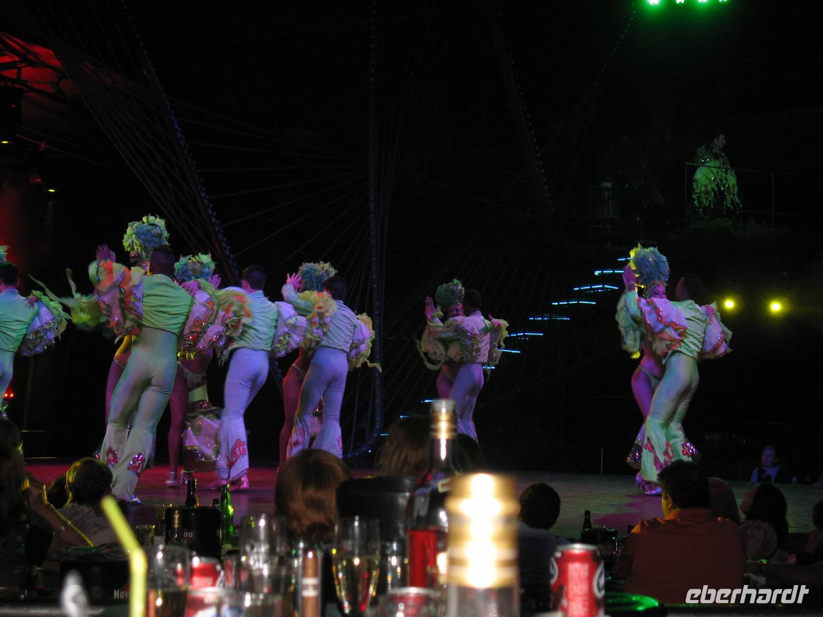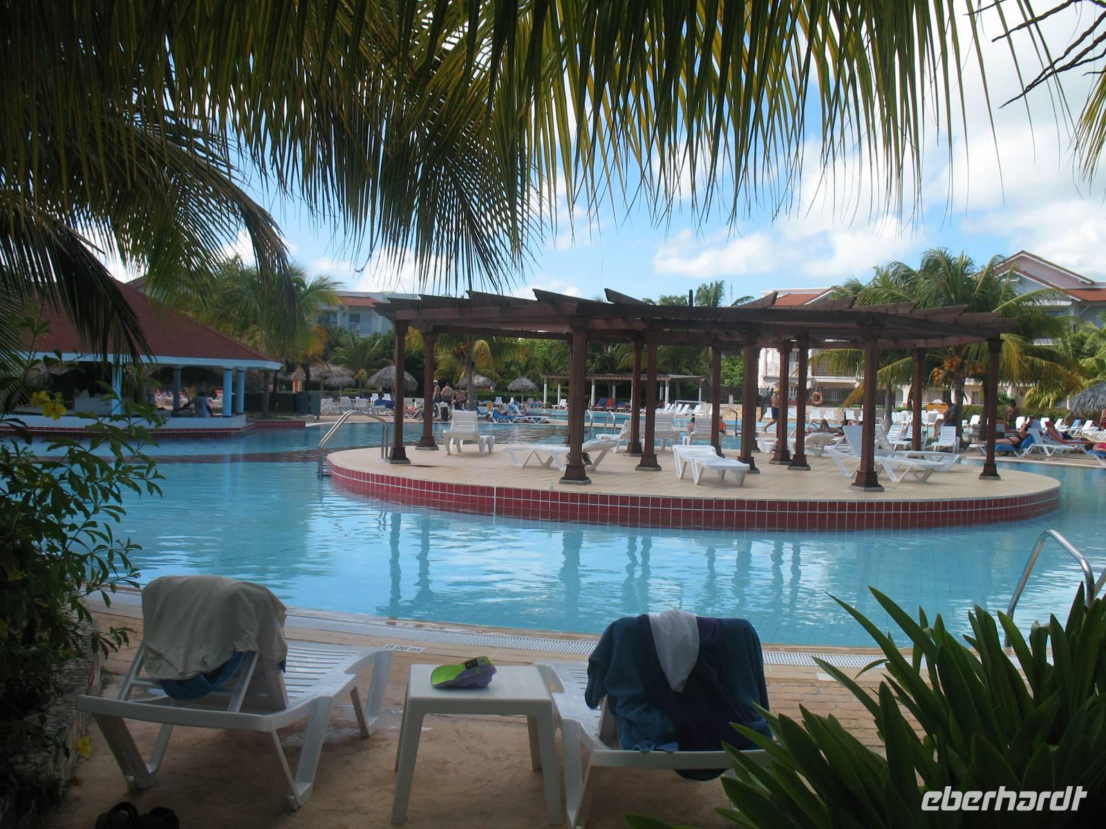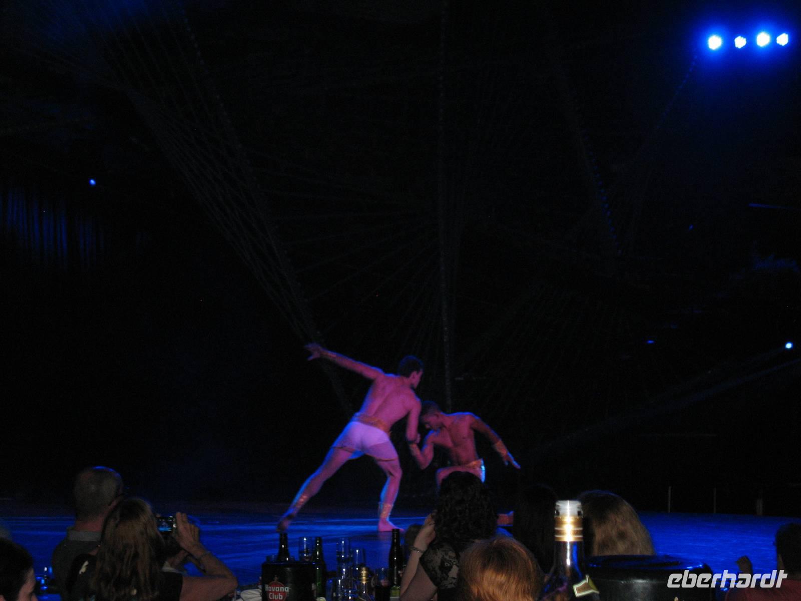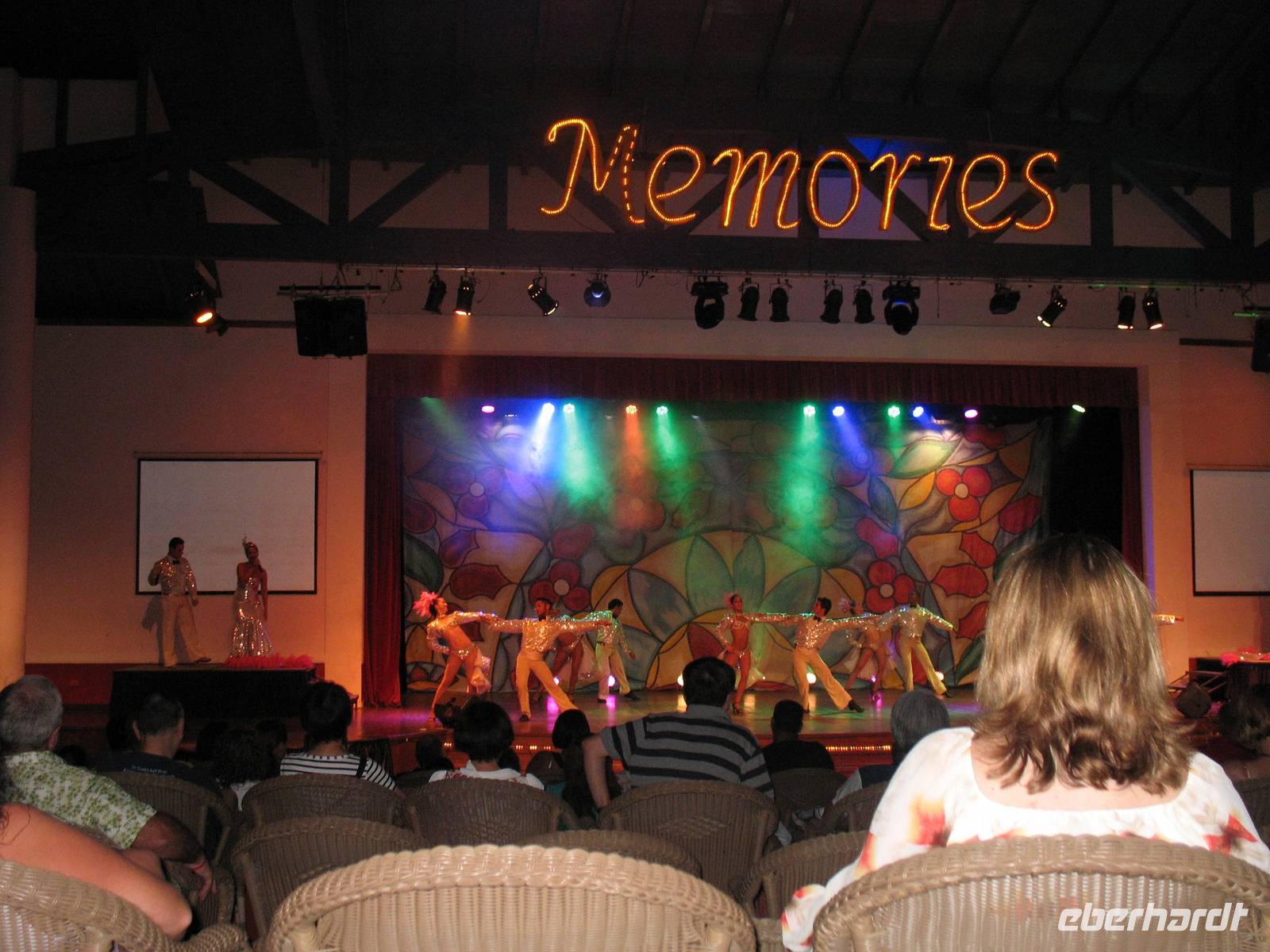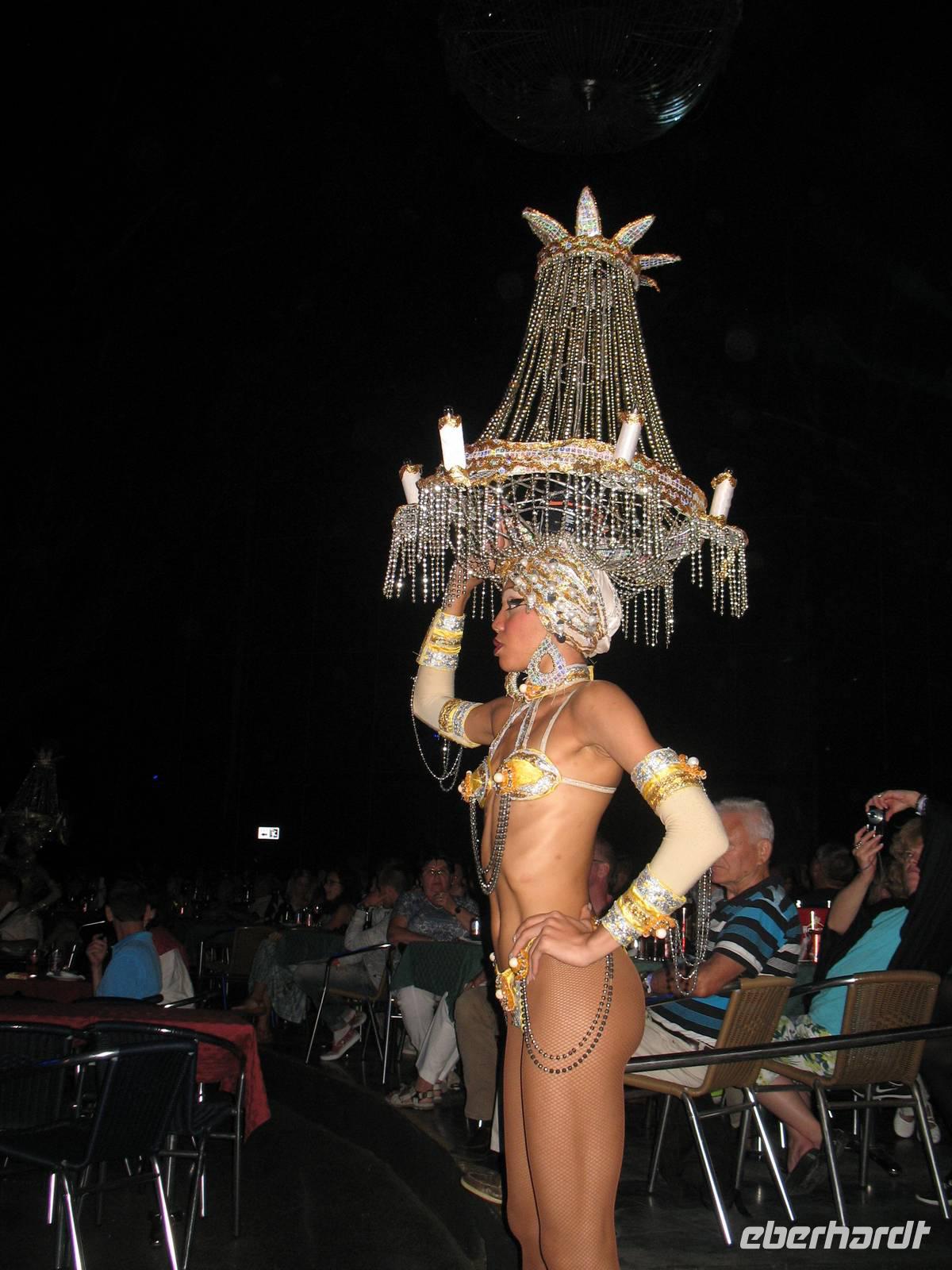 Der heutige Tag ähnelt sehr dem vergangenen Tag :-) Wir genießen wiederholt ein sehr leckeres Buffet zum Frühstück und Mittag, schauen uns für weitere Souvenirs auf dem Touristenmarkt um, entspannen gemeinsam am traumhaft weißen Strand, erzählen spannende Geschichten und schwimmen im Meer. Einige Gäste testen auch die Poolbar. Es ist schon toll, mitten im Pool zu stehen und Cocktails an der Bar zu trinken :-) Wir spazieren wieder gemeinsam zum leckeren Abendbuffet, immer noch ganz begeistert von der tollen Auswahl und den köstlichen Speisen. Eine mit Schokolade überzogene Dame sitzt ebenfalls wieder auf dem Süßigkeiten-Buffet. Heute findet die Show "Romántico" im hoteleigenen Theater statt, nicht so gut wie die anderen zwei Shows, aber auch nicht schlecht. Danach sind wir sehr müde, so dass wir uns auf unsere Zimmer zurückziehen.