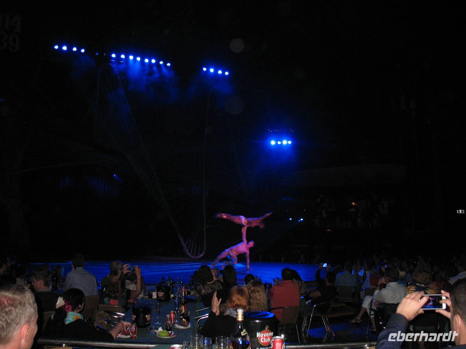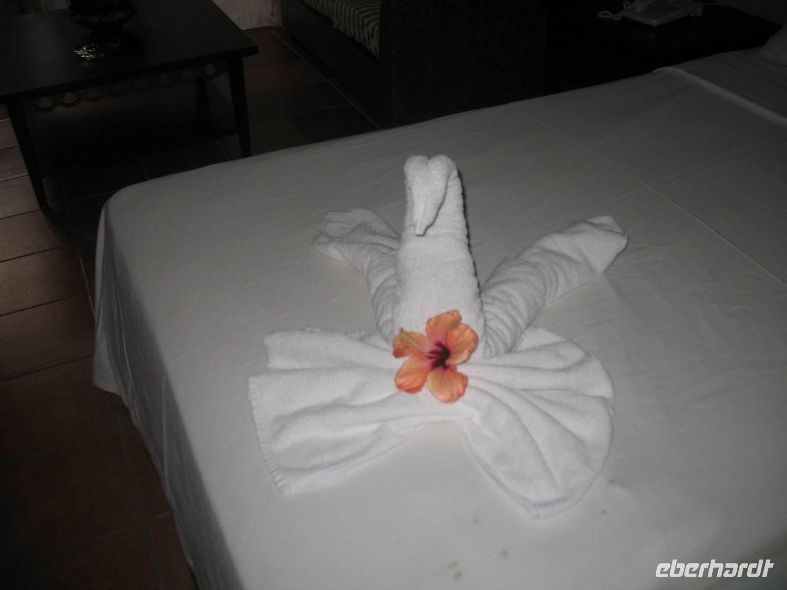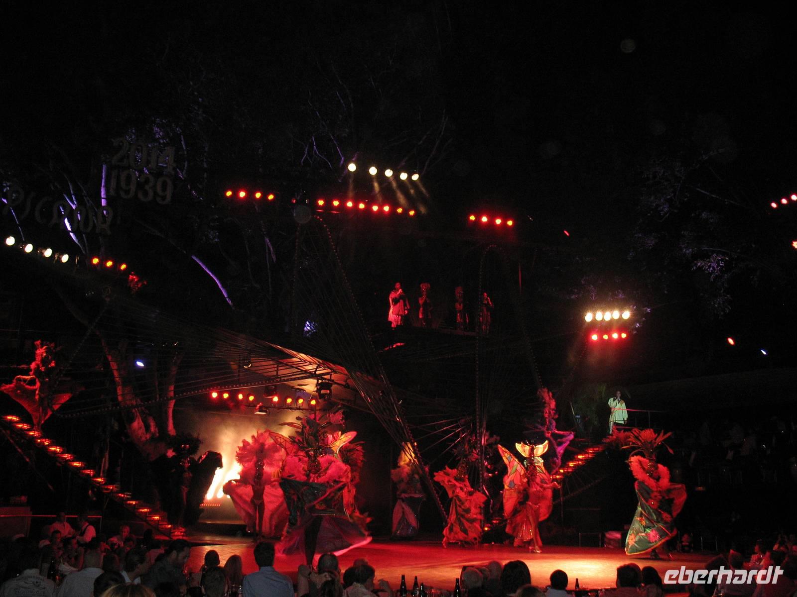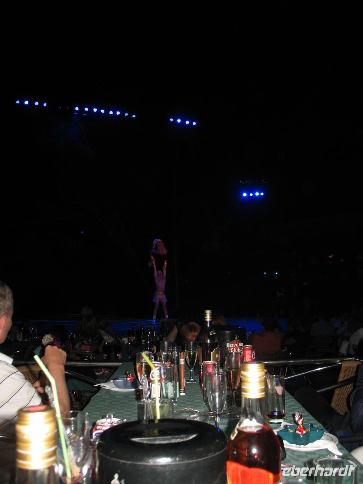 Der heutige Tag ähnelt sehr dem vergangenen Tag :-) Wir genießen wiederholt ein sehr leckeres Buffet zum Frühstück und Mittag, schauen uns für weitere Souvenirs auf dem Touristenmarkt um, entspannen gemeinsam am traumhaft weißen Strand, erzählen spannende Geschichten und schwimmen im Meer. Einige Gäste testen auch die Poolbar. Es ist schon toll, mitten im Pool zu stehen und Cocktails an der Bar zu trinken :-) Wir spazieren wieder gemeinsam zum leckeren Abendbuffet, immer noch ganz begeistert von der tollen Auswahl und den köstlichen Speisen. Eine mit Schokolade überzogene Dame sitzt ebenfalls wieder auf dem Süßigkeiten-Buffet. Heute findet die Show "Romántico" im hoteleigenen Theater statt, nicht so gut wie die anderen zwei Shows, aber auch nicht schlecht. Danach sind wir sehr müde, so dass wir uns auf unsere Zimmer zurückziehen.