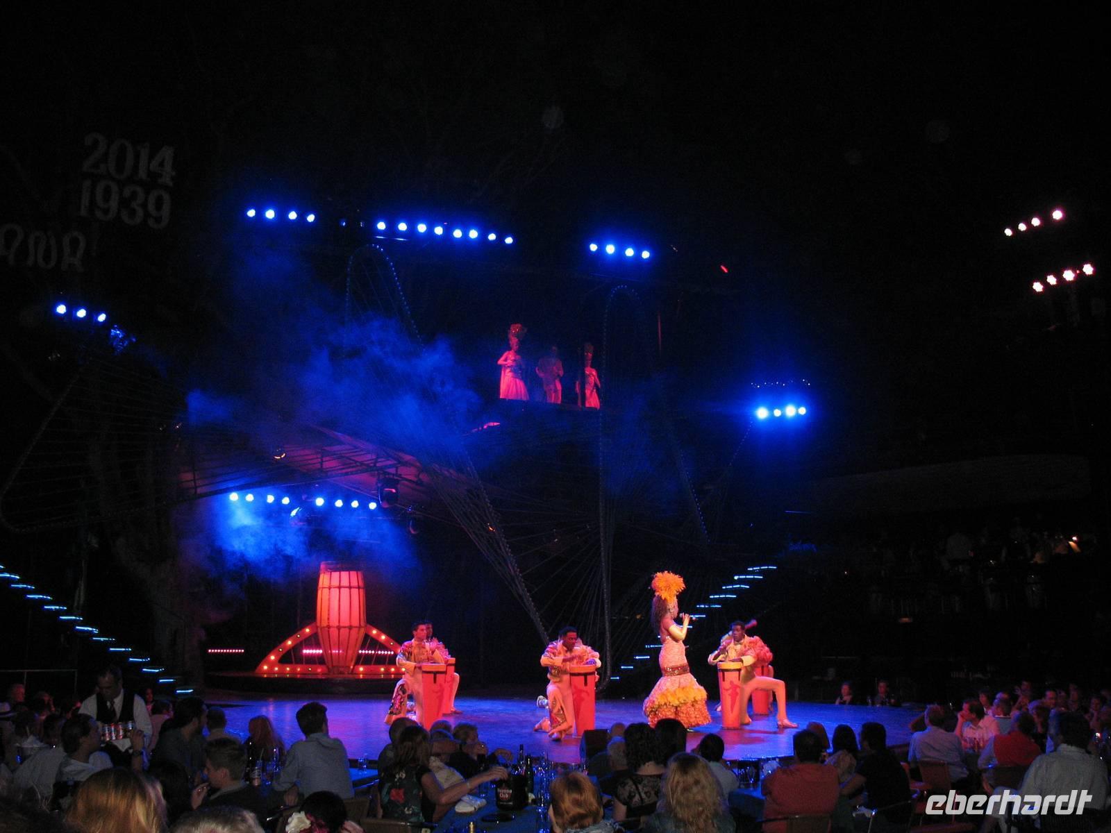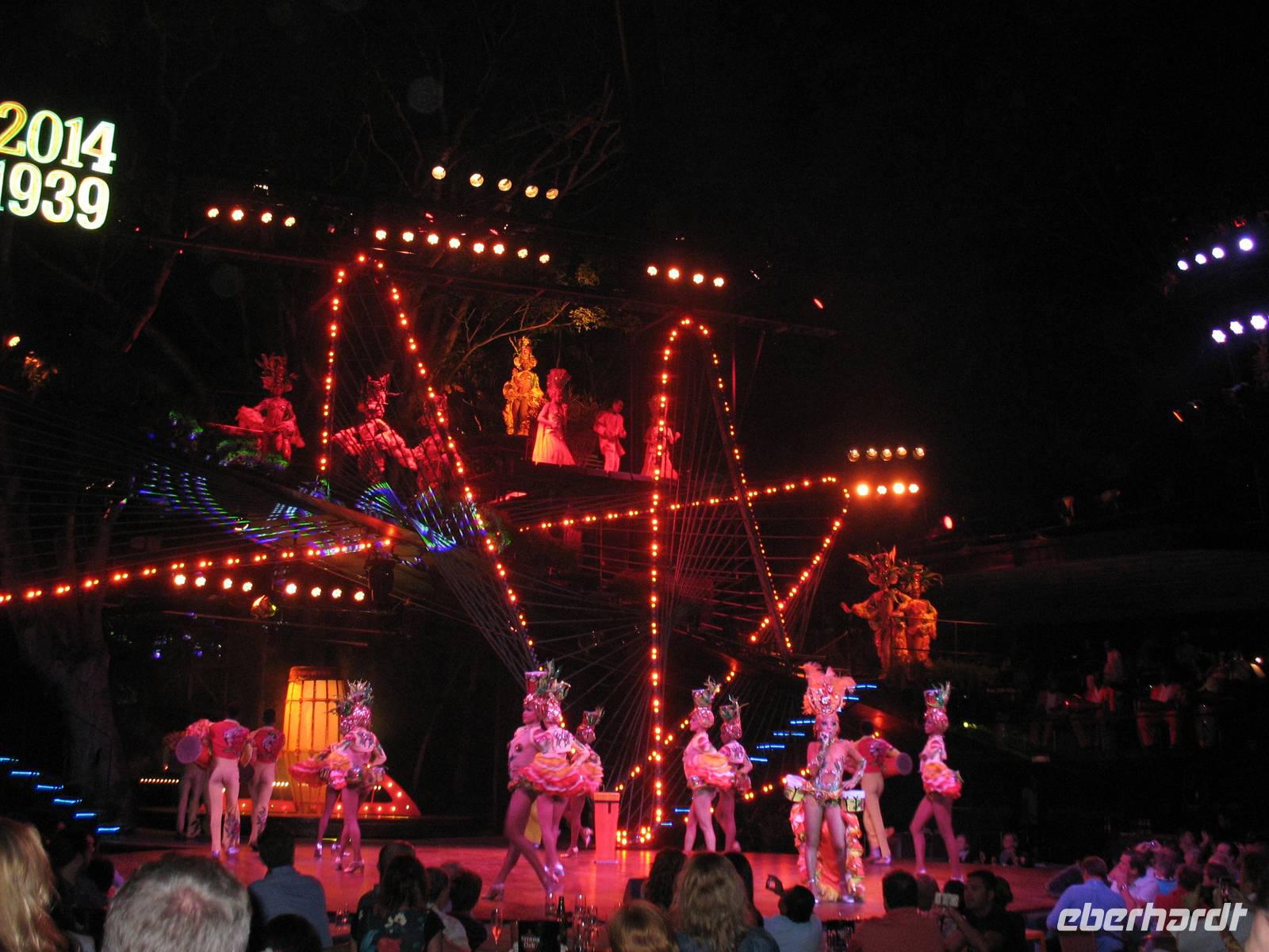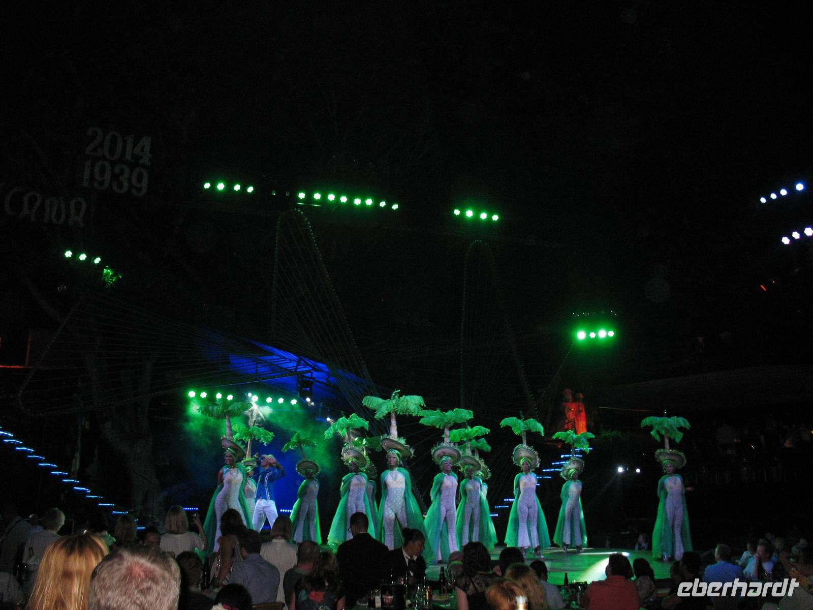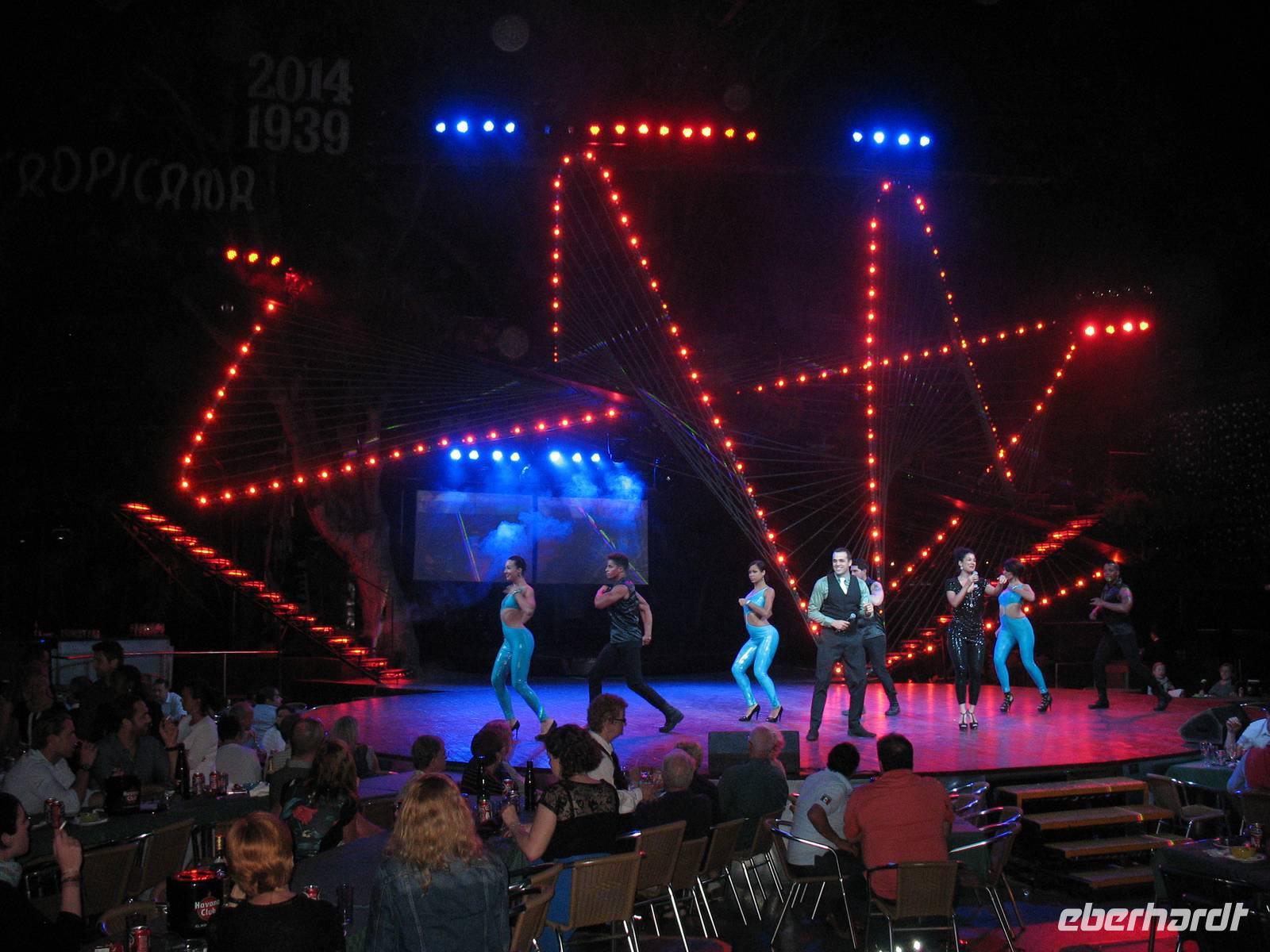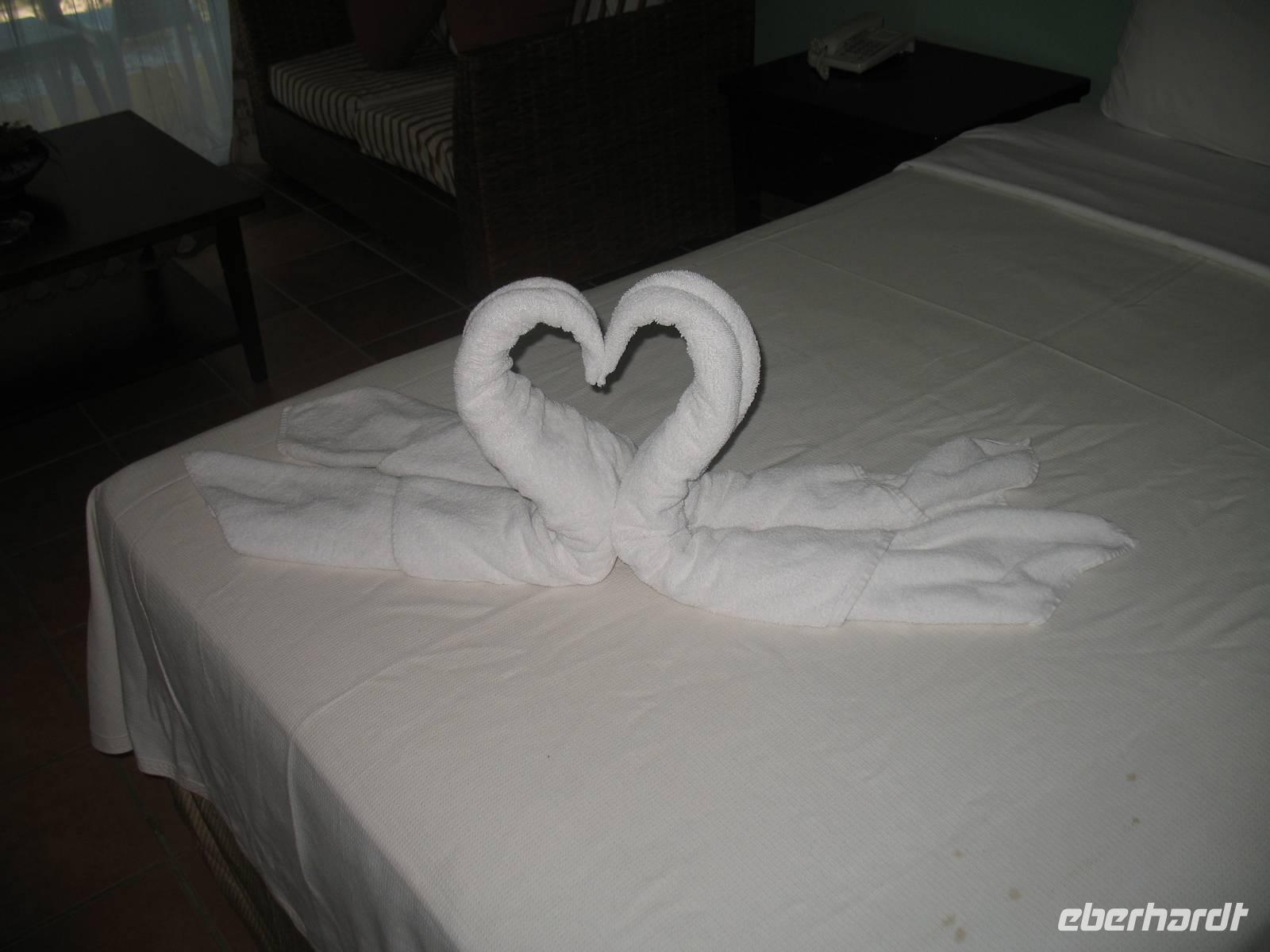 Der heutige Tag ähnelt sehr dem vergangenen Tag :-) Wir genießen wiederholt ein sehr leckeres Buffet zum Frühstück und Mittag, schauen uns für weitere Souvenirs auf dem Touristenmarkt um, entspannen gemeinsam am traumhaft weißen Strand, erzählen spannende Geschichten und schwimmen im Meer. Einige Gäste testen auch die Poolbar. Es ist schon toll, mitten im Pool zu stehen und Cocktails an der Bar zu trinken :-) Wir spazieren wieder gemeinsam zum leckeren Abendbuffet, immer noch ganz begeistert von der tollen Auswahl und den köstlichen Speisen. Eine mit Schokolade überzogene Dame sitzt ebenfalls wieder auf dem Süßigkeiten-Buffet. Heute findet die Show "Romántico" im hoteleigenen Theater statt, nicht so gut wie die anderen zwei Shows, aber auch nicht schlecht. Danach sind wir sehr müde, so dass wir uns auf unsere Zimmer zurückziehen.