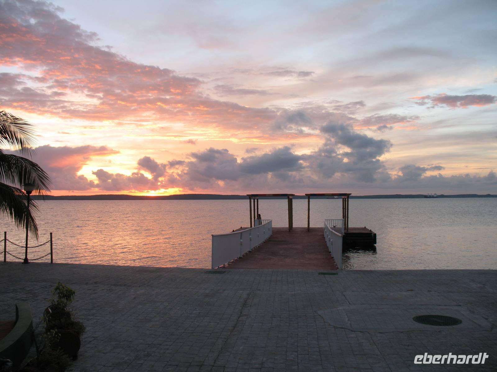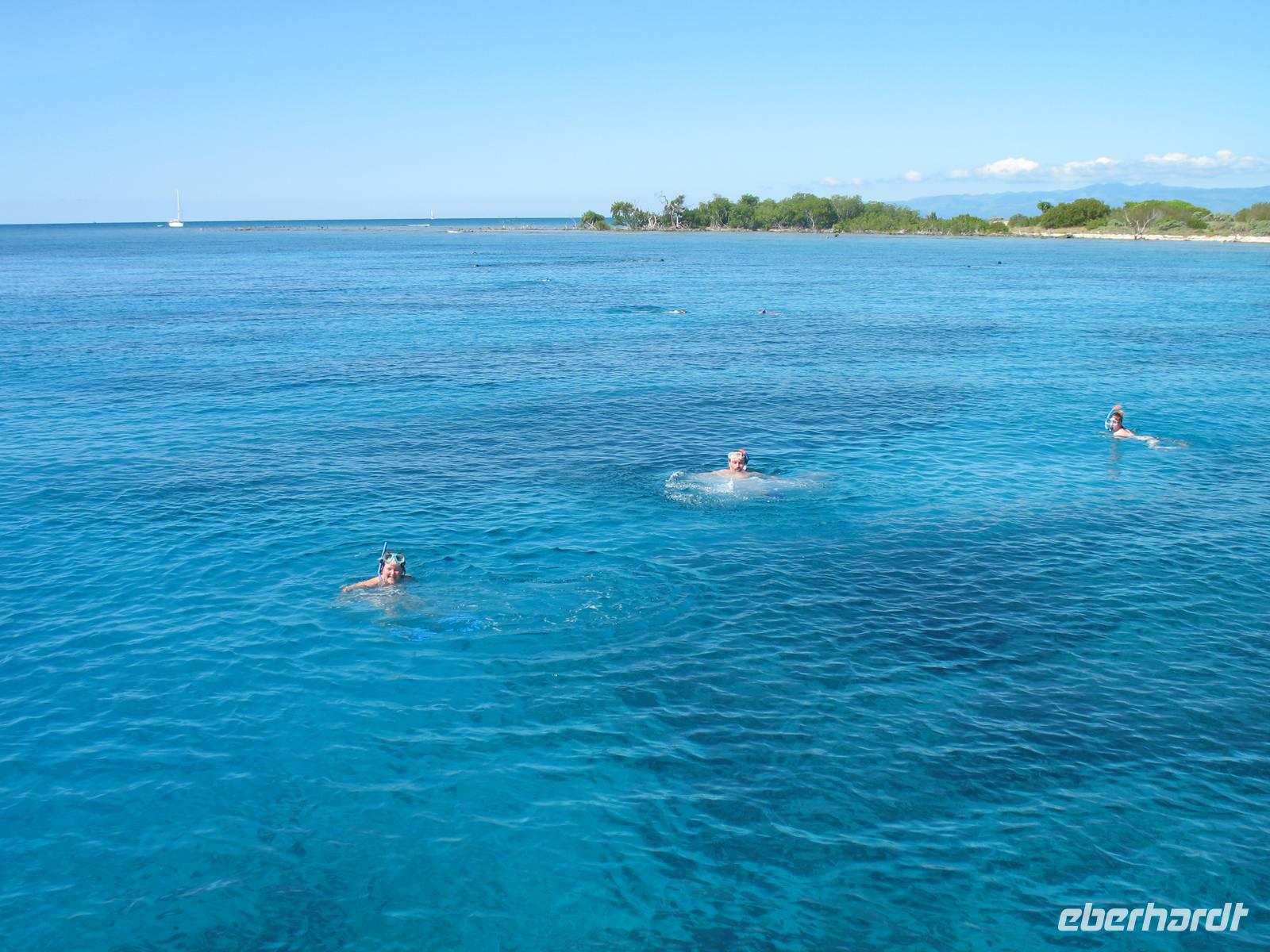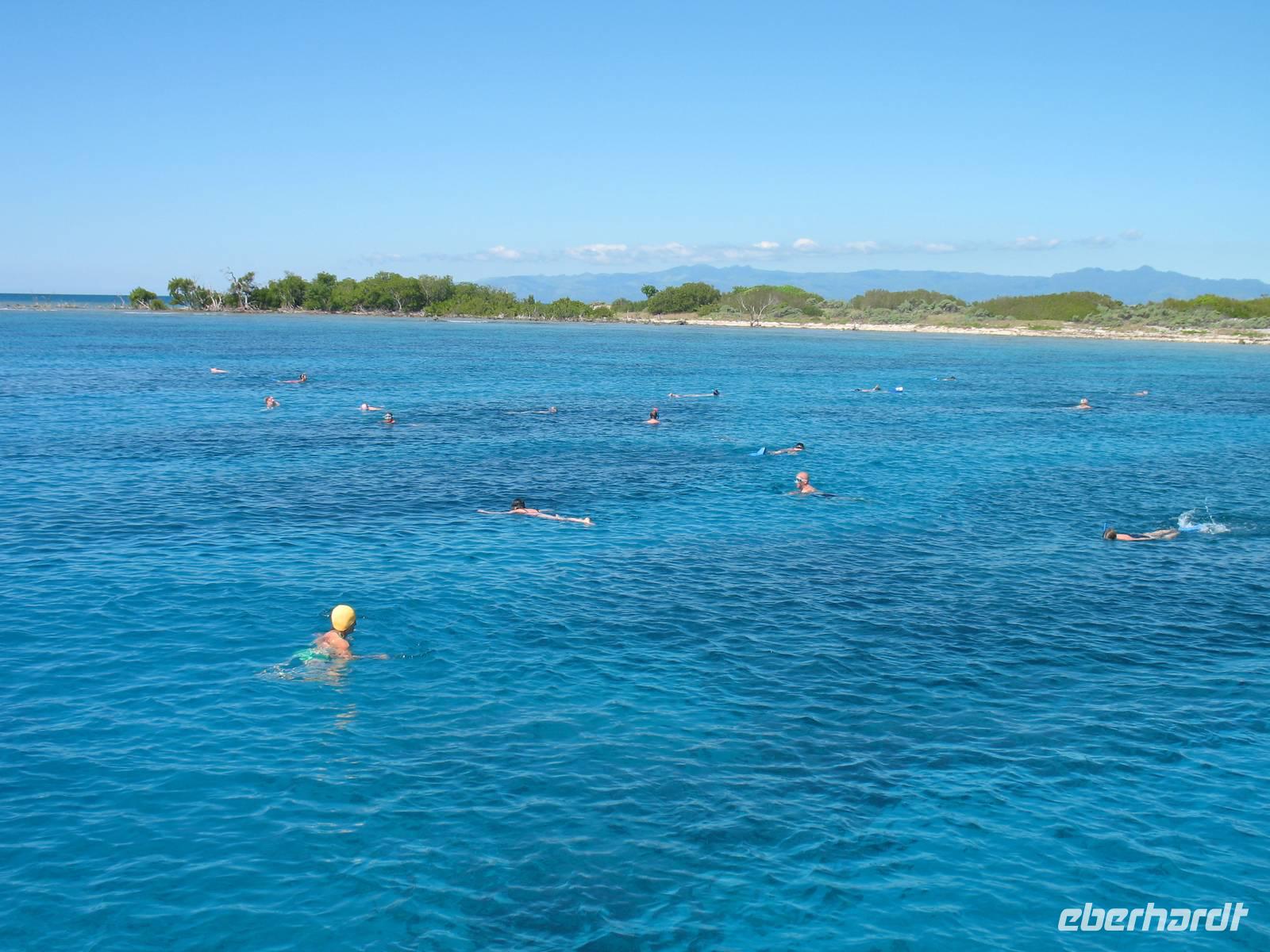 Ein weiterer spannender Tag auf der karibischen Insel erwartet uns :-) Wir fahren bereits um 08.00 Uhr zum kleinen Hafen am Strand Playa Ancón von Trinidad, um pünktlich mit dem Katamaran zur Insel Cayo Blanco de Zaza zu starten. An der Anlegestelle haben wir noch Zeit, bevor wir zur Insel fahren. Aber das Wetter meint es heute besonders gut mit uns, wir haben großartigen Sonnenschein und es ist sehr warm! Die Zeit bis zur Abfahrt nutzen wir, um uns schon einmal zu sonnen :-) Dann geht es auch schon los! Mit uns reisen noch 40 Gäste verschiedener Nationen, vorrangig aber Kanadier. Das Mittagessen nehmen wir auf der Insel ein, es gibt Paella mit Meeresfrüchten oder ersatzweise Hühnchen, die Bestellung wird vor Abfahrt aufgenommen und an die Insel per Funk weitergegeben. Alkoholfreie und auch alkoholische Getränke wie Cocktails und Bier sind bereits ausreichend an Bord zu bekommen, natürlich alles im Preis inbegriffen. Gegen 10.45 Uhr erreichen wir die Insel Cayo Blanco de Zaza. Wer nicht schnorcheln möchte, kann nun schon an Land gehen und sich am Strand entspannen, die anderen Gäste fahren weiter zum Riff. Zunächst gibt es angekommen am Riff eine Belehrung durch den Kapitän und danach erfolgt die Ausgabe von Schnorchel-Brillen und Schwimmflossen. Es ist wirklich ein toller Spaß und alle sind begeistert. Rund eine Stunde später fahren wir zurück zur Insel und wir essen leckere Paella, Hühnchen, Salat und Obst. Die Getränke sind wie auch auf dem Schiff im Preis inklusive. Wir können hinter der Bar sogar eine Krabbenwanderung beobachten, das sieht schon sehr witzig und spannend aus :-) Dann erholen wir uns am Strand und schwimmen im Wasser. Am frühen Nachmittag fahren wir mit dem Boot zum Hafen zurück und anschließend werden wir von unserem Busfahrer Jadian noch einmal ins Zentrum von Trinidad chauffiert. Leider ist es schon zu spät, um die Kirche zu besuchen oder den Turm hinaufzulaufen, daher spazieren wir an den Souvenirständen entlang und kaufen das eine oder andere Andenken für unsere Lieben. Langsam wird es auch dunkel und wir fahren zum Hotel zurück. Wir legen noch einen Zwischenstopp am Aussichtspunkt über Topes de Collantes ein. Angekommen im Hotel haben wir wenige Minuten in unseren Zimmern, bevor wir uns 19.00 Uhr wieder zum Abendessen treffen. Nach diesem tollen Tag sind wir vollkommen entspannt, aber doch ein wenig müde, so dass wir uns heute etwas zeitiger auf unsere Zimmer zurückziehen. Wir wünschen uns eine gute Nacht und freuen uns schon auf morgen und weitere einzigartige Ereignisse :-)