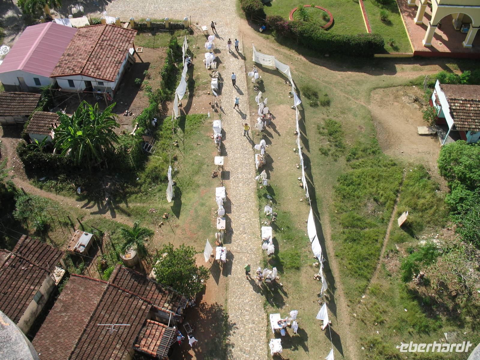 Heute werden wir von warmen Sonnenstrahlen geweckt und genießen ein leckeres Frühstück im Hotel. Dann packen wir unsere Koffer und die Reise führt uns weiter nach Trinidad. Den Besuch einer Tabakfabrik lassen wir ausfallen, da leider noch zwei Gruppen vor uns sind und wir über eine halbe Stunde bei purer Sonneneinstrahlung warten müssten. Wir schauen daher nur durch die Fenster und können einen kleinen Blick erhaschen! Also fahren wir weiter nach Trinidad, wo wir gegen 11.00 Uhr ankommen. Gegründet wurde diese Stadt 1514 von Diego Velázquez. Wir beginnen gleich mit unserem Stadtrundgang durch alle wichtigen Straßen und Plätze. Unsere Führung endet in der Bar "La Canchánchara", wo wir auch den typischen Cocktail "Canchánchara" zu uns nehmen, welches das traditionelle Getränk der "Mambises" ist, also die kubanischen Kämpfer der Befreiungsarmee im 19. Jahrhundert. Dieser leckere Cocktail setzt sich aus Honig, Zitrone, Schnaps, Eis und Mineralwasser zusammen. Im Jahre 1988 erfolgte die Erklärung der Stadt Trinidad zum Weltkulturerbe durch die UNESCO. Danach laufen wir auch schon zum Mittagessen ins Restaurant "El Mesón del Regidor". Es stehen Fisch, Hühnchen und Garnelen zur Auswahl. Das Essen ist abermals sehr lecker und es gibt auch gute musikalische Unterhaltung. Nach dem Essen haben wir Freizeit unter anderem für den Einkauf von Souvenirs oder die Besichtigung der Kirche Iglesia Parroquial Mayor de la Santísima Trinidad, also die Kirche der Heiligen Dreifaltigkeit. Einige Reisegäste genießen auch einen tollen Blick über die ganze Stadt vom Turm des Palacio de Cantaro, ein alter Palast eines Zuckerrohrbarons. Dann fahren wir weiter zur ehemaligen Hacienda Manaca Iznaga. Das Tal der Zuckermühlen "Valle de los Ingenios" östlich von Trinidad wurde ebenfalls 1988 zum UNESCO-Weltkulturerbe erklärt. Im Zentrum des Tales befindet sich der bekannte siebenstöckige Sklaventurm Torre de Iznaga, erbaut 1816 von der Familie Iznaga, um die Sklaven bei ihrer Arbeit auf den Zuckerrohrfeldern zu beaufsichtigen. Auf den Weg dahin haben wir noch einen Fotostopp und Bio-Pause an den Hängen des Escambray-Gebirges auf einem Aussichtspunkt mit der Bar "Mirador" und Aussicht auf eine Zuckerrohrplantage. Am frühen Nachmittag erreichen wir die Hacienda Manaca Iznaga mit dem 45 Meter hohen Iznaga-Turm. Um deren Turmspitze in Glockenform zu erreichen, sind 137 Stufen zu erklimmen. Die Hälfte der Gruppe läuft hinauf und oben angekommen haben wir einen großartigen Blick über das ehemalige Herrenhaus der Familie Iznaga und einen weitläufigen Blick über die schöne Umgebung. Außerdem befindet sich hier ein kleiner Touristenmarkt. Wir bummeln an den Souvenirständen entlang und genehmigen uns noch einen Cocktail an der Bar im ehemaligen Herrenhaus. Im Anschluss fahren wir zum 3-Sterne-Hotel "Los Helechos" in Topes de Collantes. Zunächst halten wir an der zentralen Touristeninformation unterhalb des Kurhotels "Escambray", danach fahren wir noch ein kurzes Stück und stehen auch schon vor dem Hotel. Der Check-In verläuft wieder reibungslos und natürlich gibt es einen leckeren Begrüßungscocktail :-) Die Zeit bis zum Abendessen nutzen wir, um die Anlage zu erkunden, im Hallenbad zu schwimmen oder um uns einfach nur zu entspannen. Zum Abendessen in Buffetform gibt es eine gute Auswahl und es besteht sogar die Möglichkeit, Fisch und Fleisch direkt vor unseren Augen braten zu lassen. Zur Anlage gehört ebenfalls eine Bowlingbahn, welche heute aber geschlossen ist. Daher finden wir uns nach dem Abendessen an der Hotelbar ein, wir unterhalten uns über die vergangenen Tage und bei einem oder auch zwei leckeren Cocktails und Bier lassen wir gemeinsam den schönen Tag ausklingen :-)
