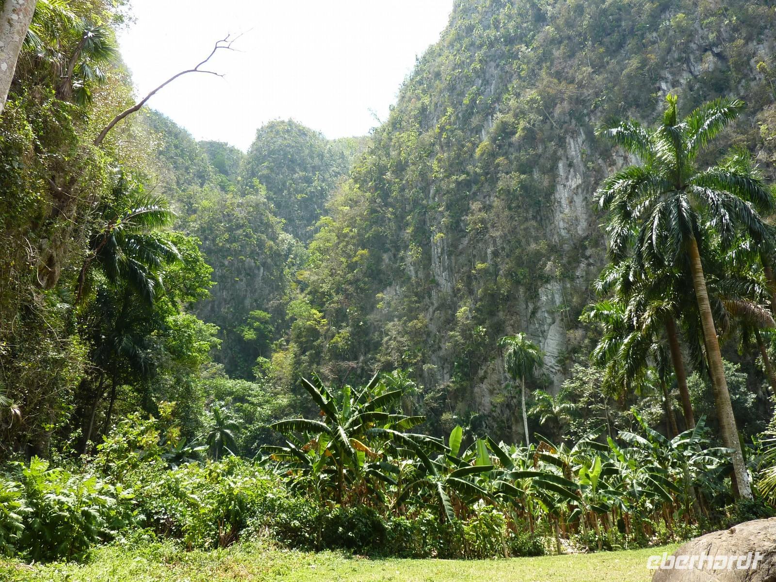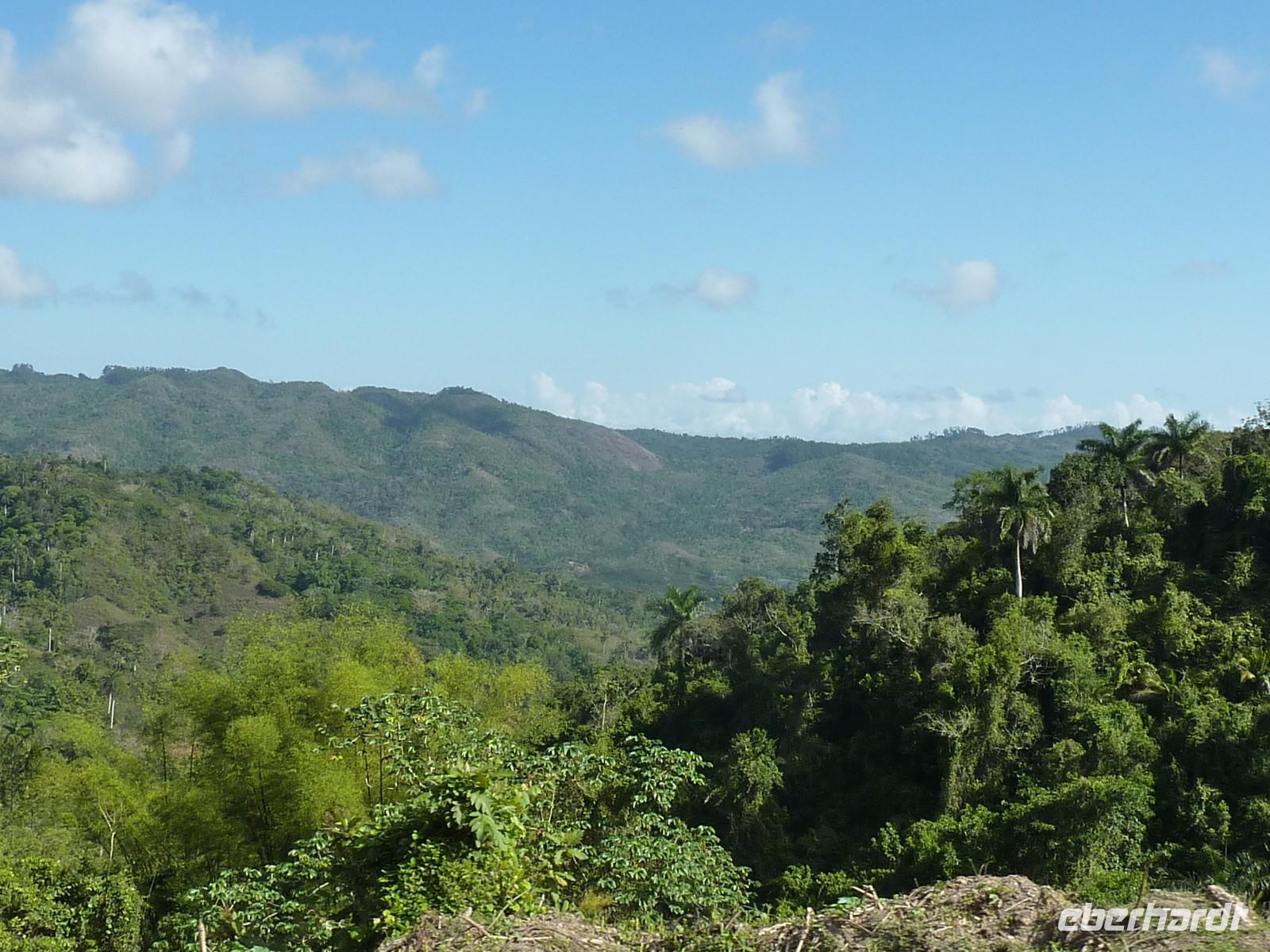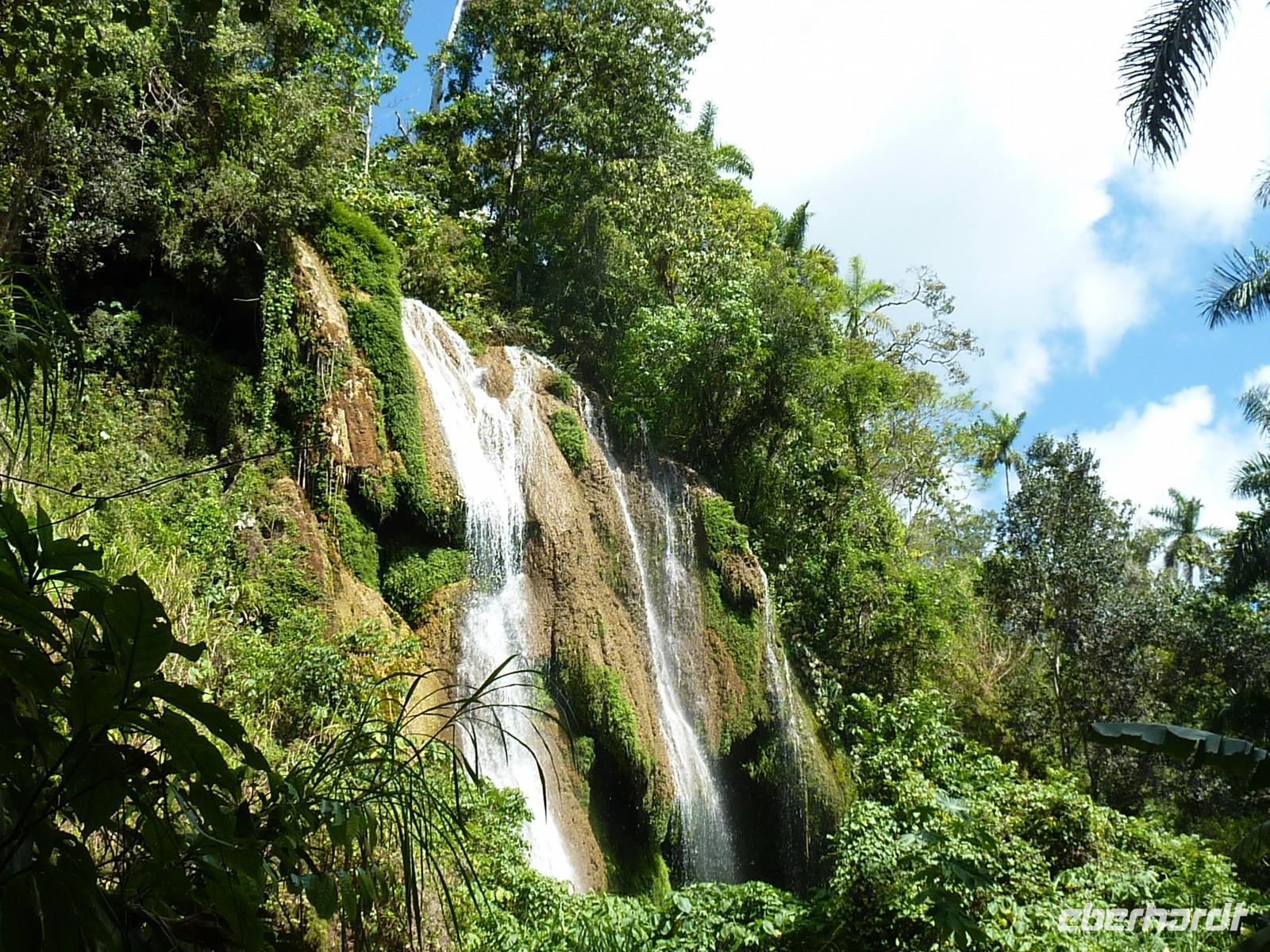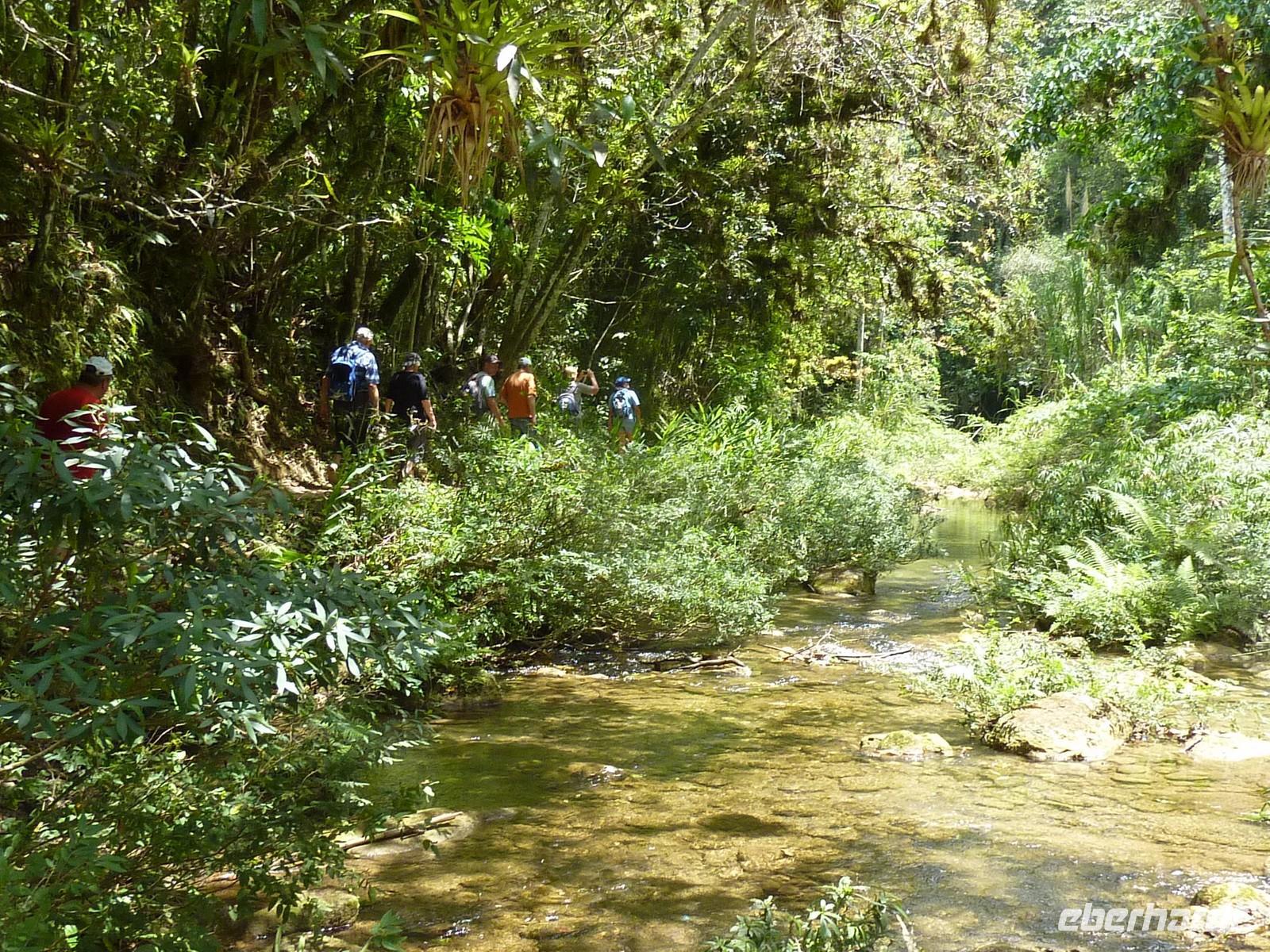 Wir verlassen den Karibikstrand und fahren nun in die „Sierra del Escambray“, die direkt hinter Trinidad aufsteigt. Langsam arbeitet sich unser Bus zu dem auf 900 Metern Höhe gelegenen Ort „Topes de Collantes“ hinauf. Hier steigen wir in ein 5-Sterne-Cabrio um, einen umfunktionierten LKW. Nach einer halben Stunde Fahrt erreichen wir den Ausgangspunkt unserer Wanderung. Unsere einheimische Führerin Milady ist gut gelaunt und stellt uns nicht nur die verschiedenen Pflanzen und Gewächse sondern auch einige Geschichten der „kubanischen Heilkunde“ vor. Unterwegs bestaunen wir Bromelien, Orchideen, die Mamai-Frucht und einige nutzen die Möglichkeit, ein erfrischendes Bad in einem Naturpool zu nehmen. Nach der Wanderung speisen wir auf der Terrasse der Finca und treten den Rückweg im LKW nach „Topes de Collantes“ an. Hier steigen wir in den bequemen Reisebus und reisen entlang der Karibikküste nach Cienfuegos, wo wir im Hotel direkt am Meer übernachten.