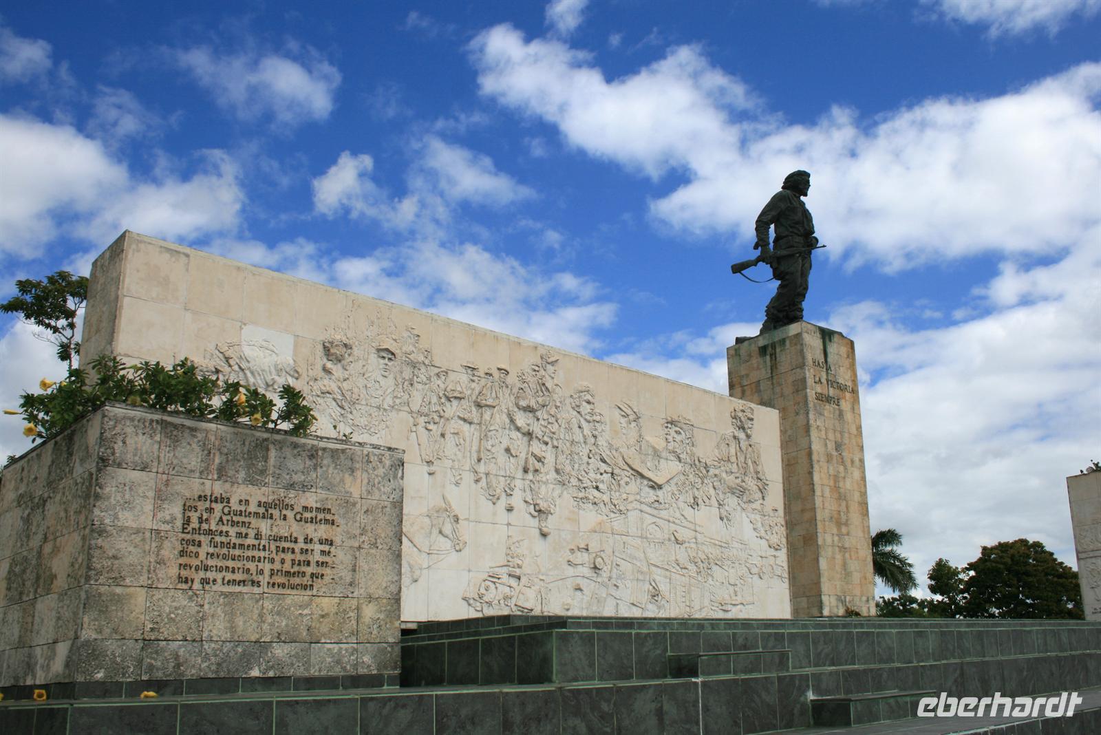 Hier sieht man eine Gedenkwand, in der die sterblichen Überreste der Revolutionshelden eingelassen und mit Gedenktafeln versehen sind sowie eine ewige Flamme. Im Museum sind Bilder, Dokumente, Waffen und persönliche Gegenstände der Revolutionäre ausgestellt. In einem Souvenirladen gegenüber vom Mausoleum kann man Bücher, Anstecker und Plakate rund um Che Guevara kaufen. (hier gibt es auch öffentliche Toiletten, Weiterfahrt ca. 13.00 Uhr)