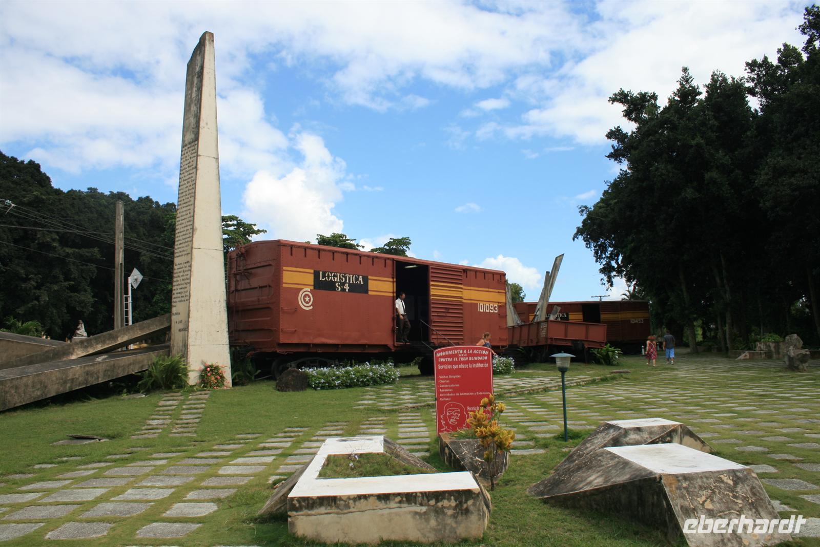 In der Stadt Santa Clara sehen wir uns auch die Gedenkstätte des Angriffs auf den Munitionszug an, den Che Guevara und die Revolutionäre damals angriffen. Hier sind ein paar Eisenbahnwaggons ausgestellt und der Bulldozer, der die Schienen zerstörte und den Zug zum Entgleisen brachte.
