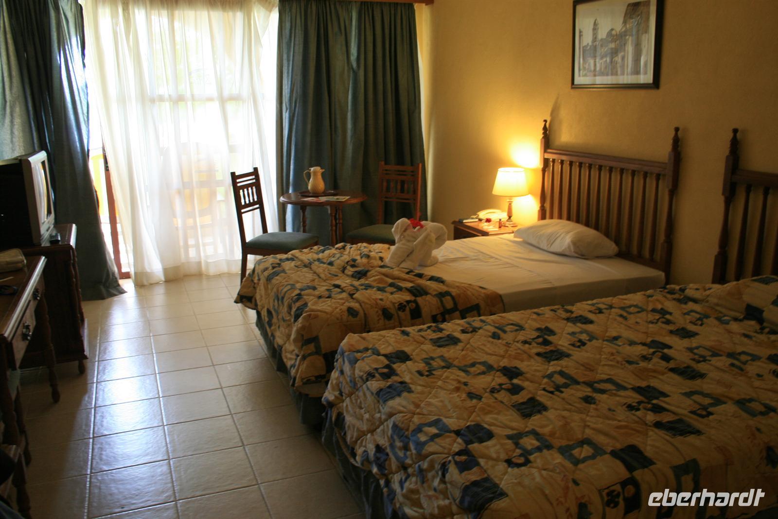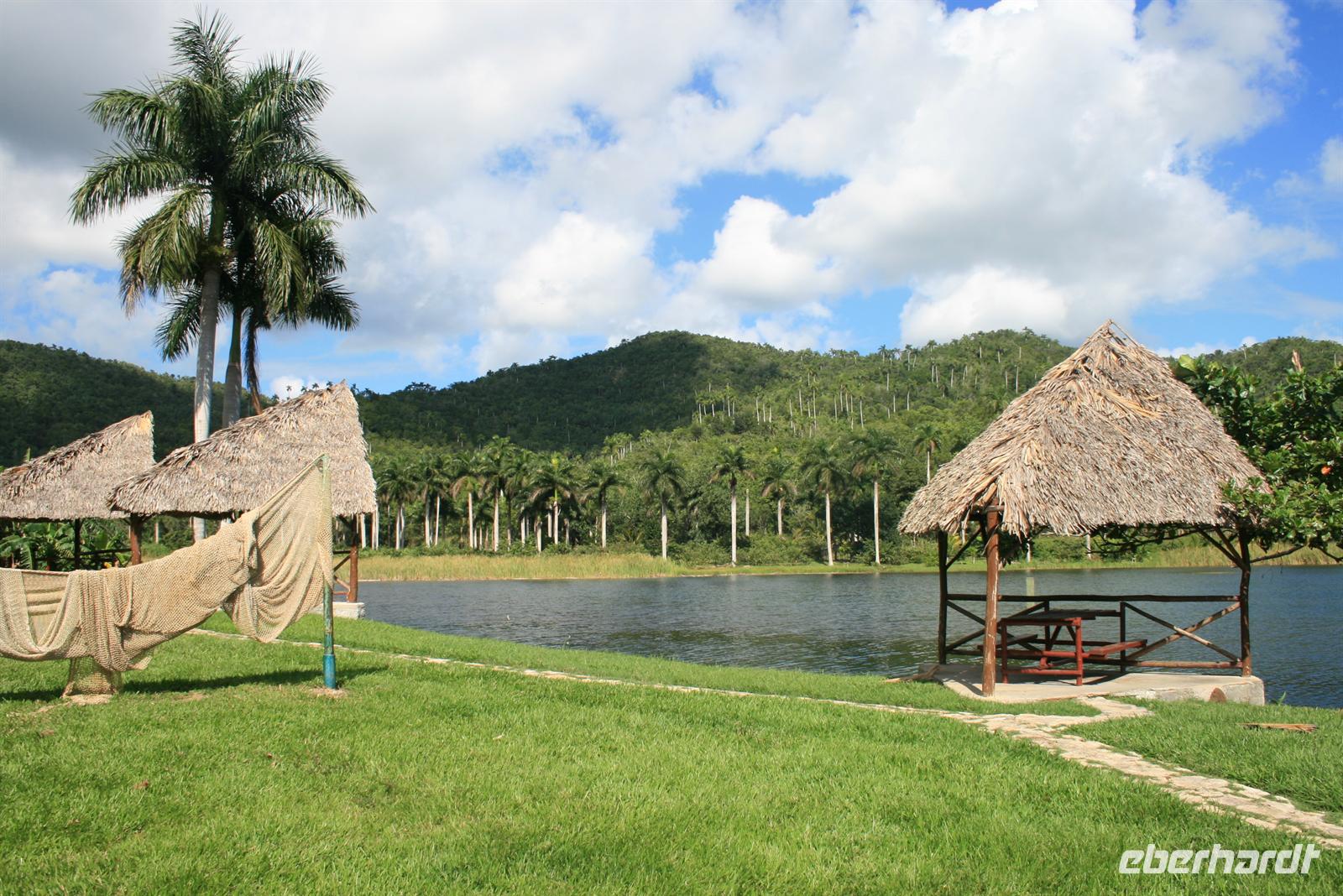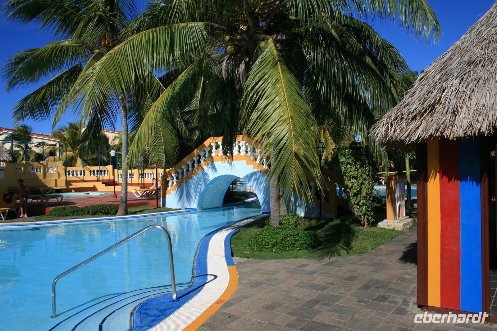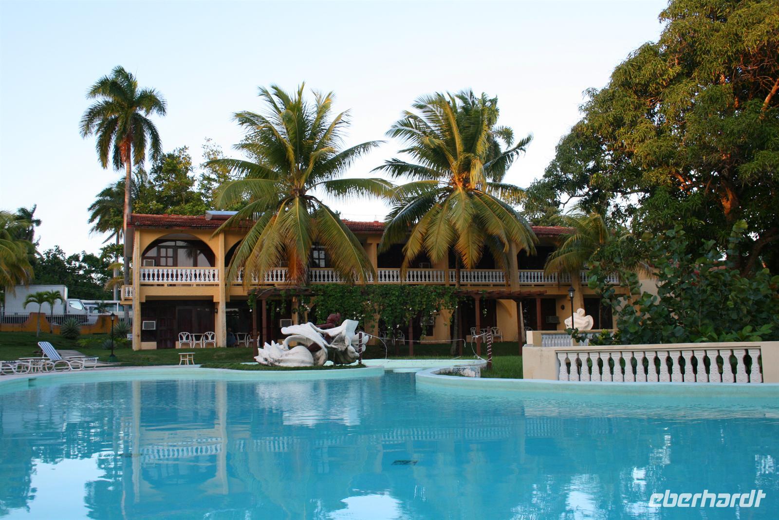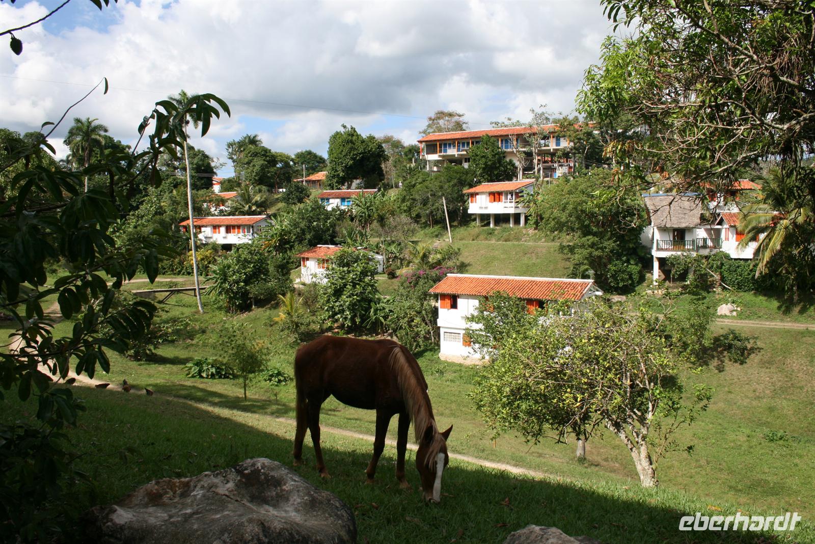 Gegen 15.00 Uhr gelangen wir zu unserem Hotel für die heutige Nacht. Die weitläufige Hotelanlage „La Granjita“ liegt etwa 2 Kilometer von Santa Clara entfernt und besteht aus verschieden großen Bungalows und Rundhütten mit Palmenblattdächern. Es gibt kleine Rundhütten, die ein Doppelzimmer darstellen und größere Rundhütten, in denen 4 bis 5 Doppelzimmer untergebracht sind. Die Bungalows sind ausgestattet mit Dusche/WC, Shampoo, TV, Telefon und Klimaanlage. (Hier kann es kleine Tiere/Eidechsen und Insekten im Zimmer geben, denn es ist eine parkähnliche Anlage)