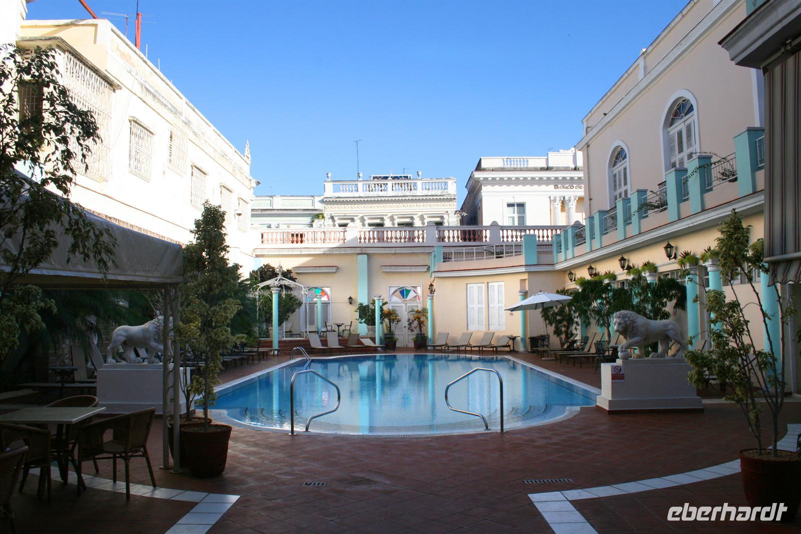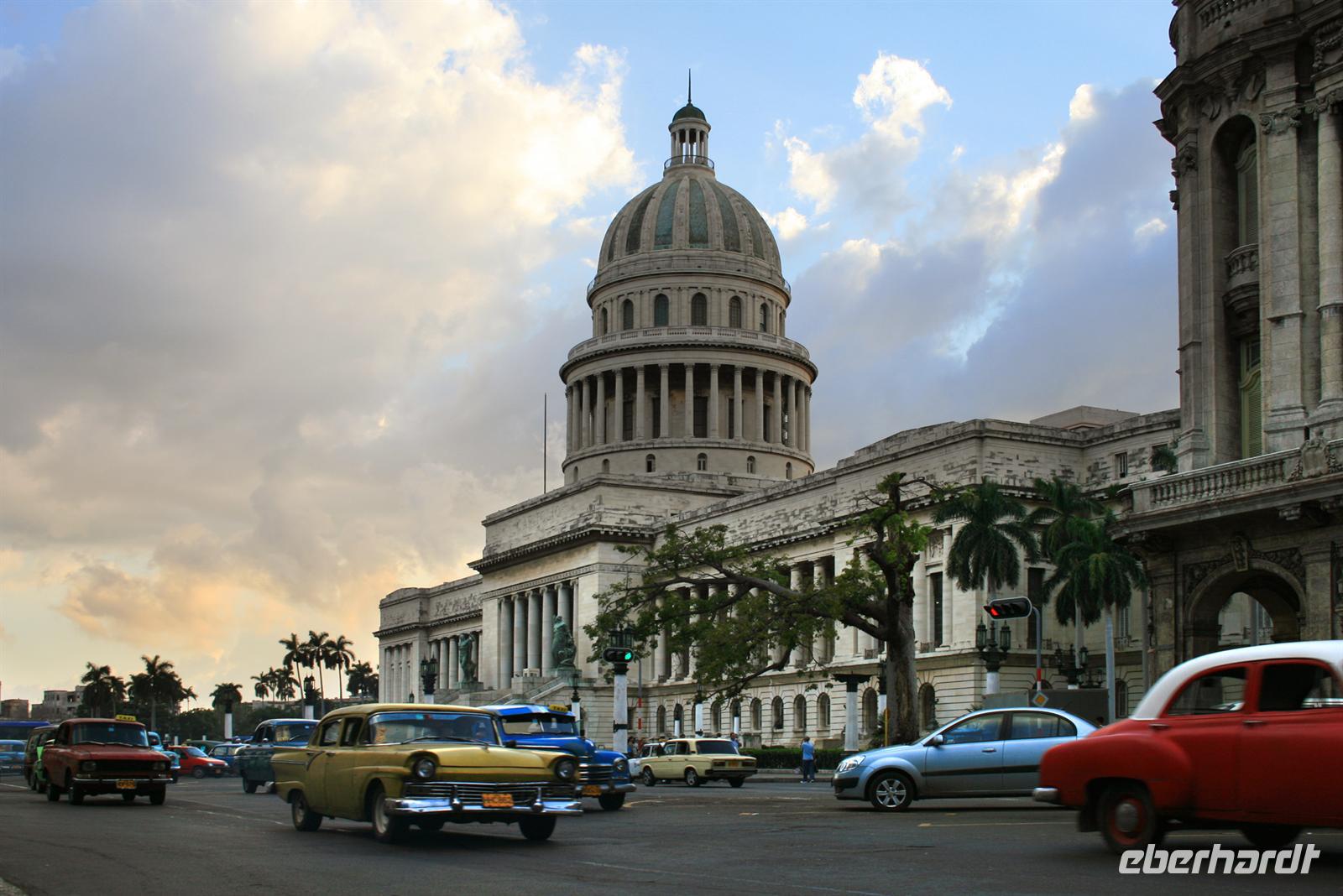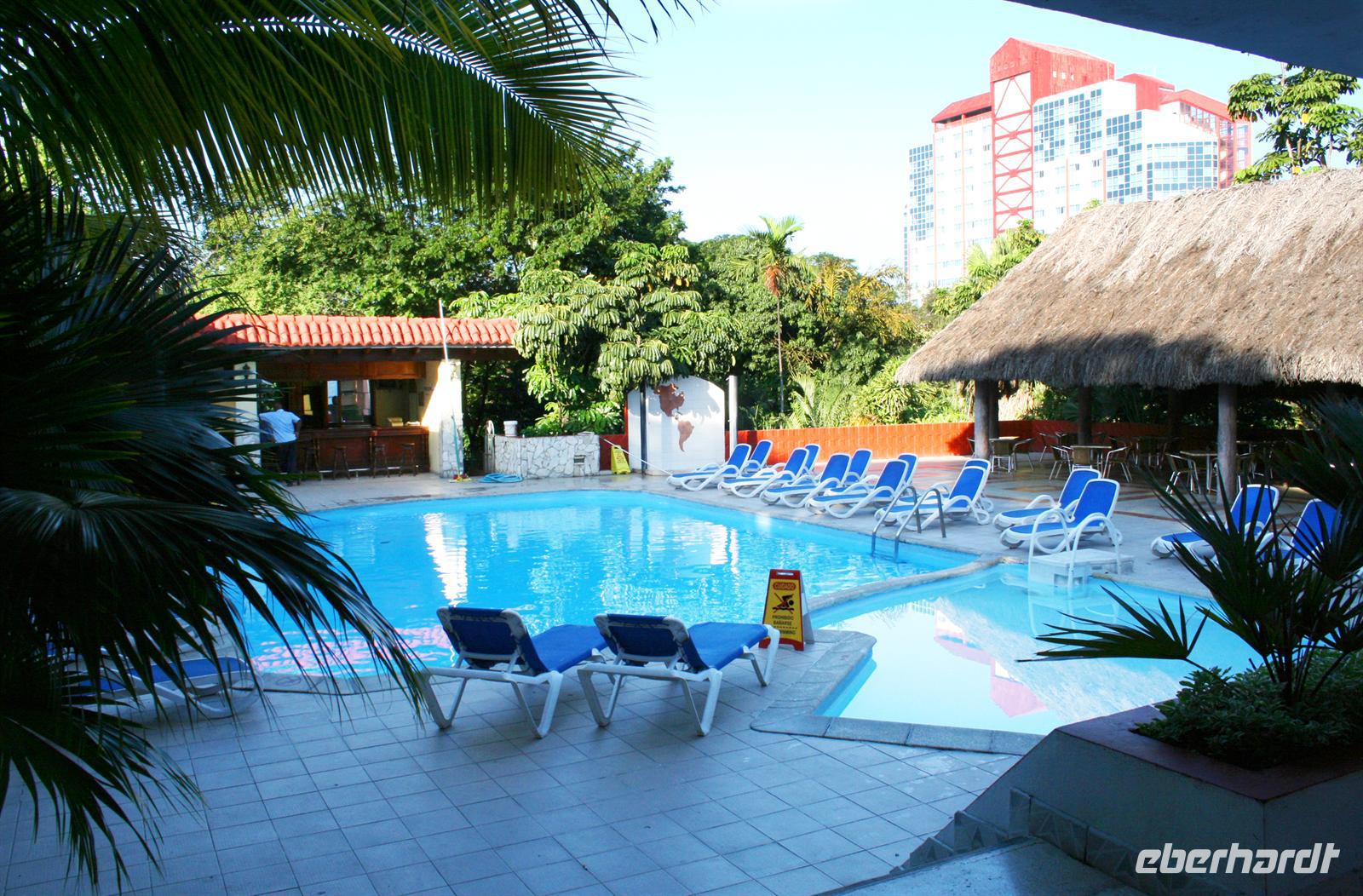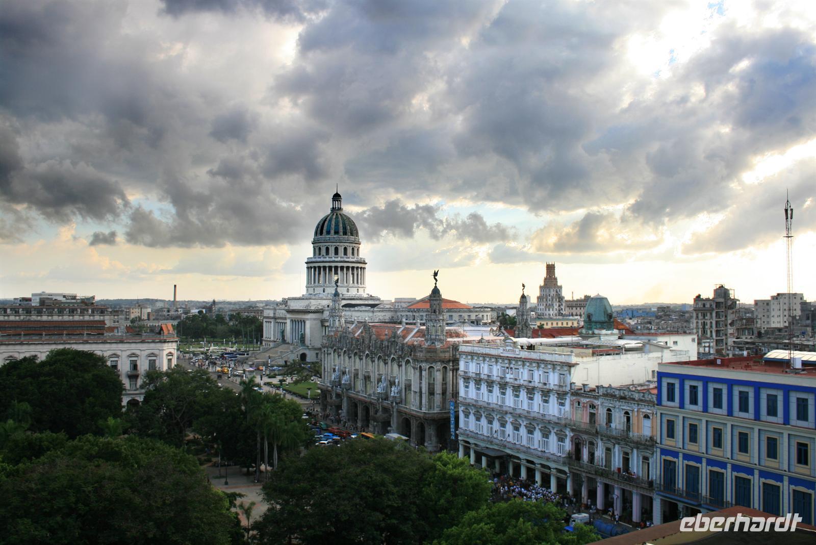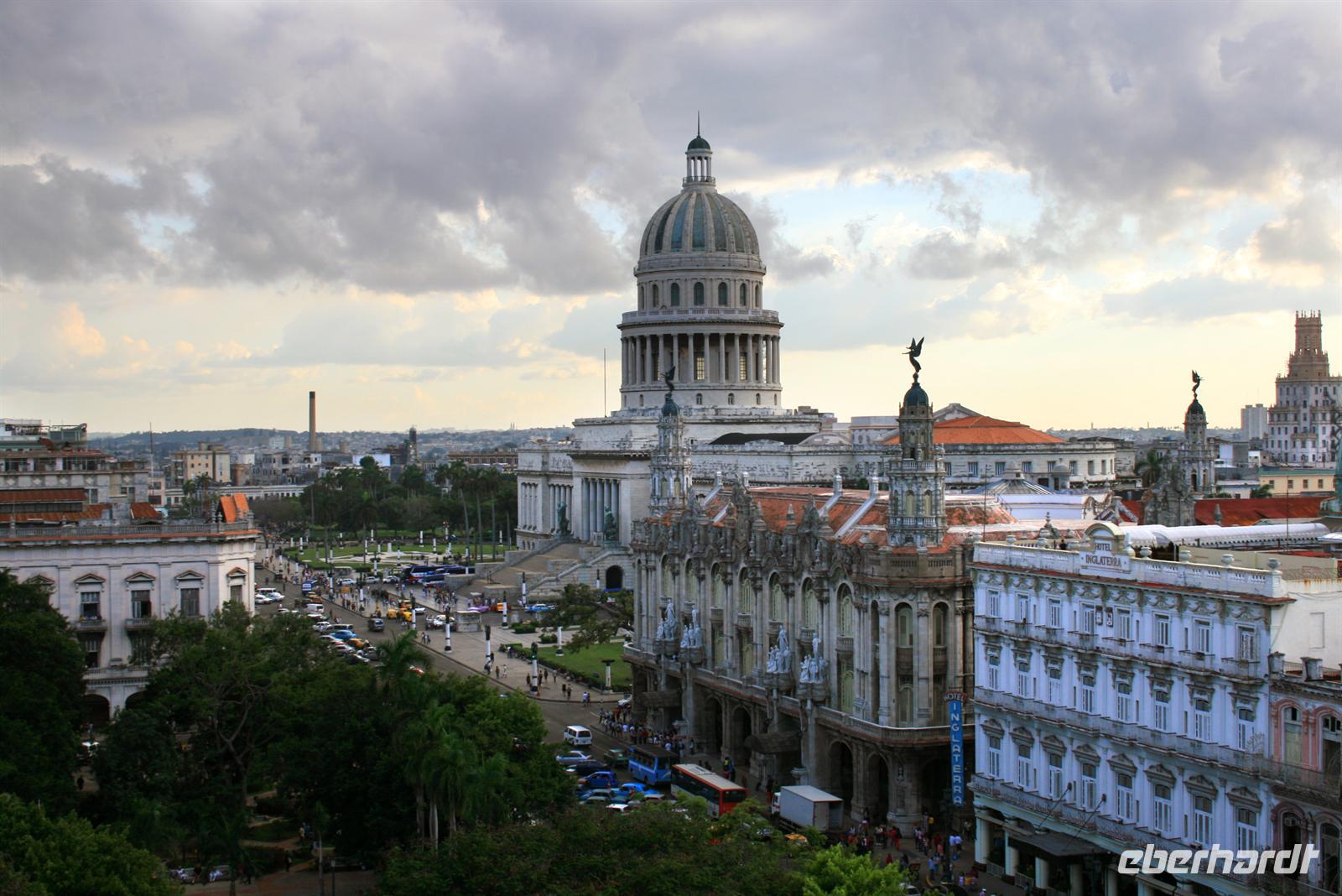 An der Küstenstraße warten schon drei Oldtimer, in denen wir nun eine Stadtrundfahrt durch Havanna unternehmen. Entlang des Malecons, der Küstenstraße, fahren wir in das reiche Villenviertel Havannas, in dem es zahlreiche Botschaften gibt. Außerdem besuchen wir einen grünen Park am Stadtrand und das berühmte 5-Sterne-Hotel „Nacional“, in dem schon viele bekannte Persönlichkeiten zu Gast waren. Hier werden wir am nächsten Tag auch die Tanzshow „Parisien“ besuchen. Die Oldtimer-Rundfahrt dauert etwa 2 Stunden. Gegen 17.00 Uhr fahren uns die Oldtimer direkt zu unserem Hotel „NH Parque Central“ in der Innenstadt. Die Zimmer des 5-Sterne-Hotels sind ausgestattet mit Bad mit Badewanne, Dusche und WC, Shampoo, Bademantel, Fön, TV, Telefon, Safe, Minibar und Klimaanlage. Das Hotel liegt nur 300 Meter vom Capitol Havannas entfernt. Von der Dachterrasse mit Swimmingpool und Café genießen wir einen tollen Blick über die Innenstadt und das Capitol.