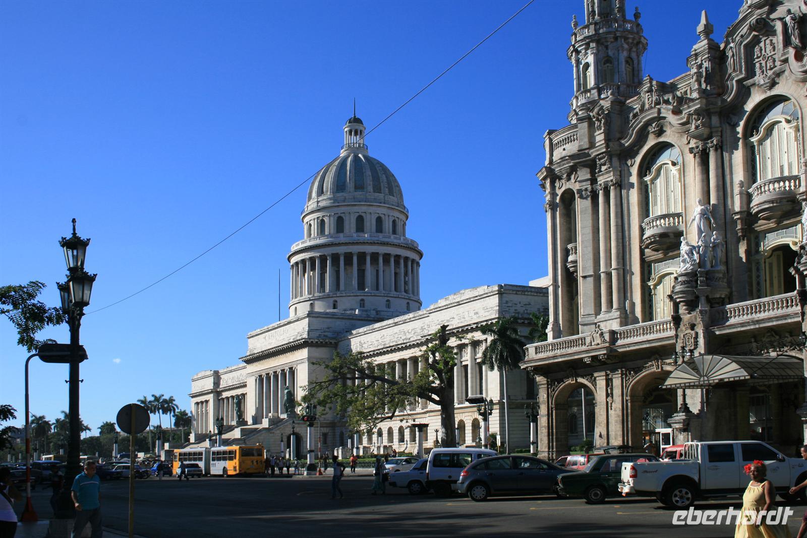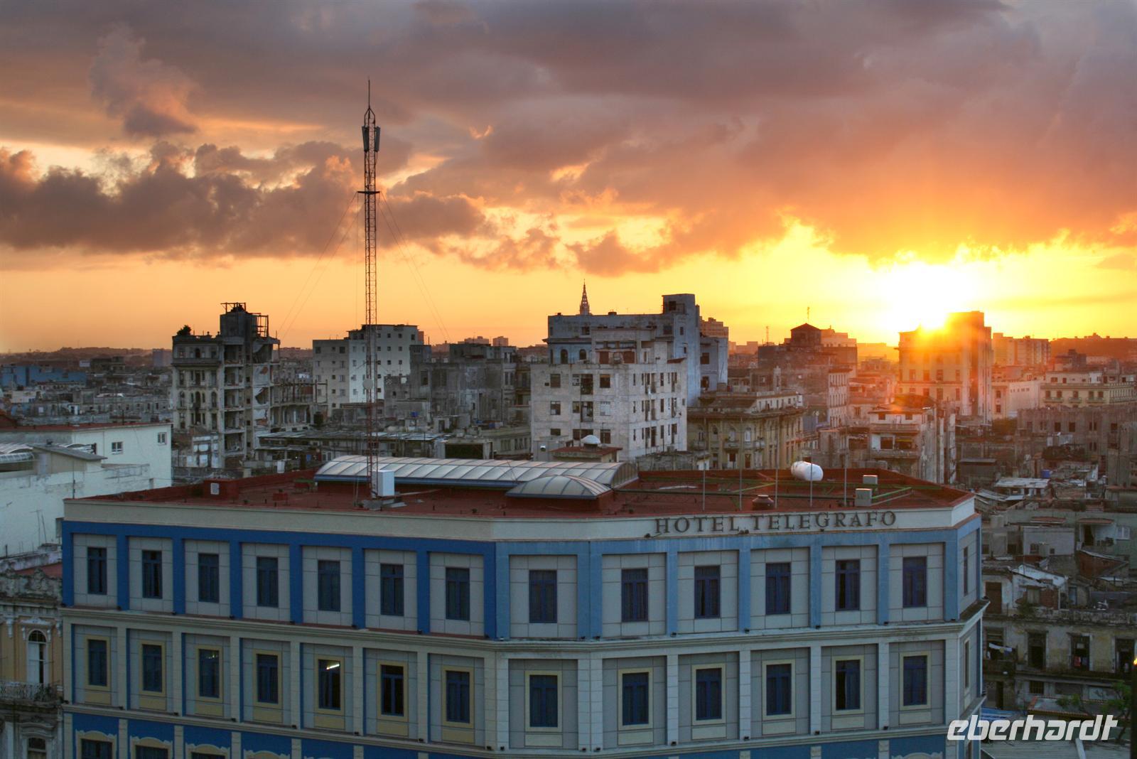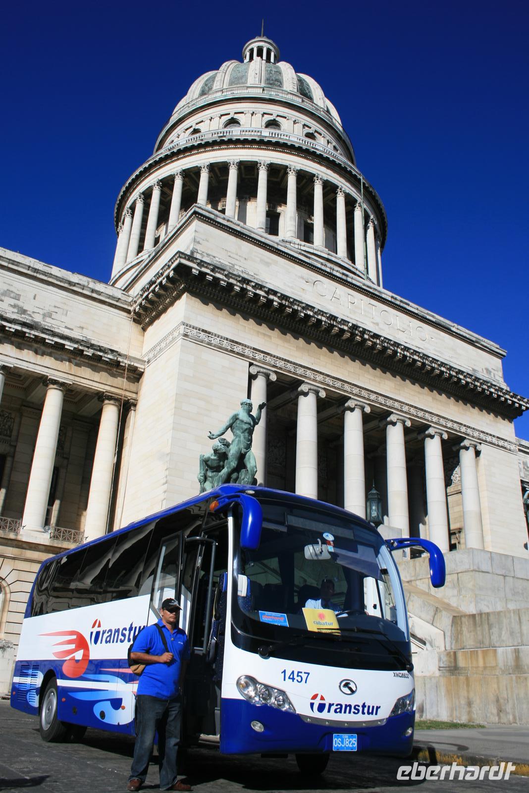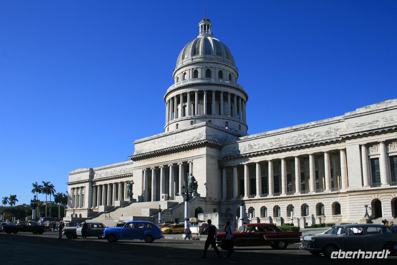 An der Küstenstraße warten schon drei Oldtimer, in denen wir nun eine Stadtrundfahrt durch Havanna unternehmen. Entlang des Malecons, der Küstenstraße, fahren wir in das reiche Villenviertel Havannas, in dem es zahlreiche Botschaften gibt. Außerdem besuchen wir einen grünen Park am Stadtrand und das berühmte 5-Sterne-Hotel „Nacional“, in dem schon viele bekannte Persönlichkeiten zu Gast waren. Hier werden wir am nächsten Tag auch die Tanzshow „Parisien“ besuchen. Die Oldtimer-Rundfahrt dauert etwa 2 Stunden. Gegen 17.00 Uhr fahren uns die Oldtimer direkt zu unserem Hotel „NH Parque Central“ in der Innenstadt. Die Zimmer des 5-Sterne-Hotels sind ausgestattet mit Bad mit Badewanne, Dusche und WC, Shampoo, Bademantel, Fön, TV, Telefon, Safe, Minibar und Klimaanlage. Das Hotel liegt nur 300 Meter vom Capitol Havannas entfernt. Von der Dachterrasse mit Swimmingpool und Café genießen wir einen tollen Blick über die Innenstadt und das Capitol.