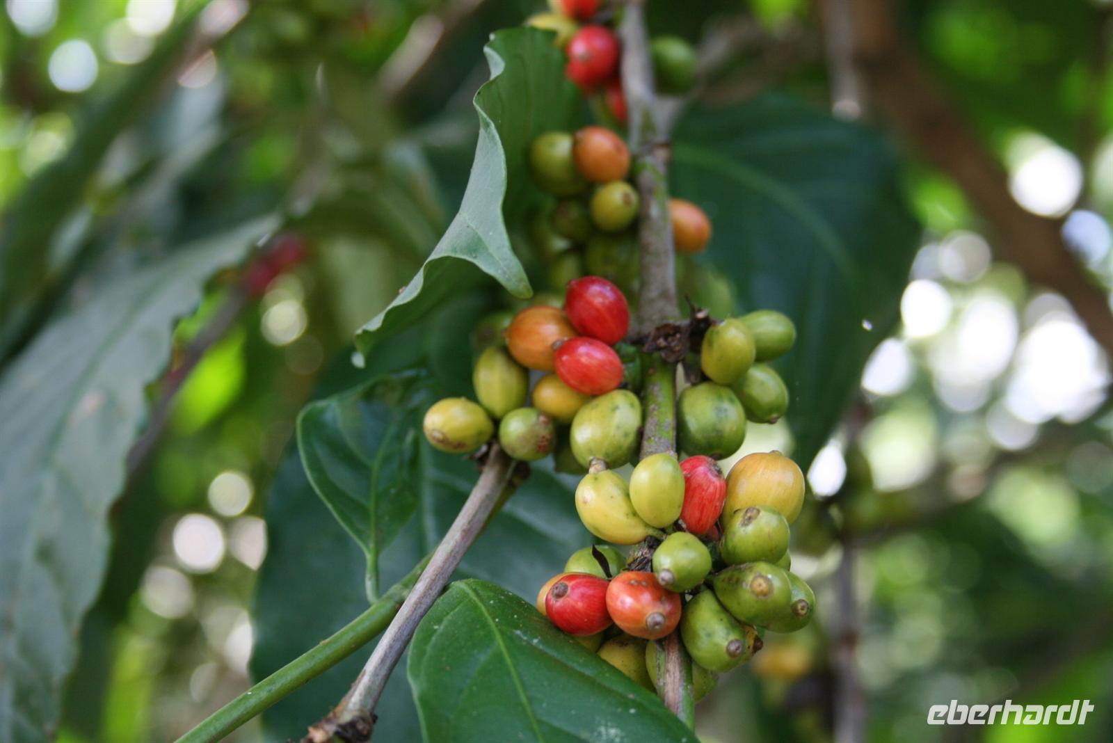 Weiter geht unsere Fahrt hinein in die wunderschöne Bergwelt der Sierra Maestra. Unterwegs halten wir an einer Kaffeeplantage und Georg zeigt uns die roten frischen Kaffeefrüchte.