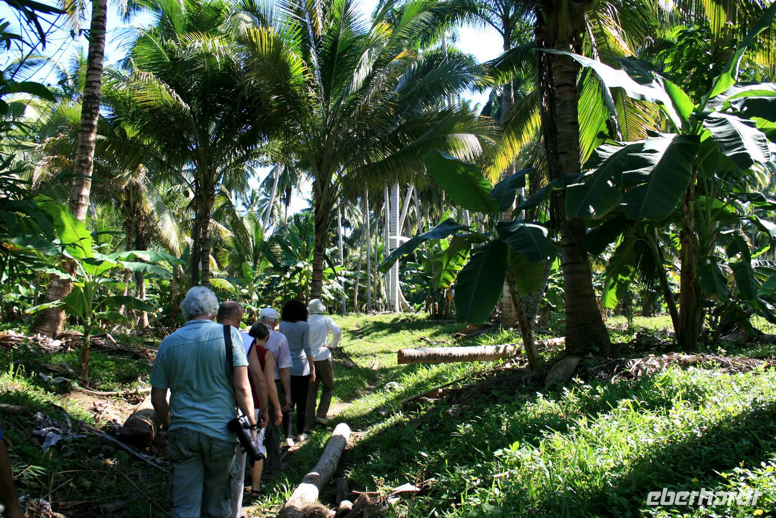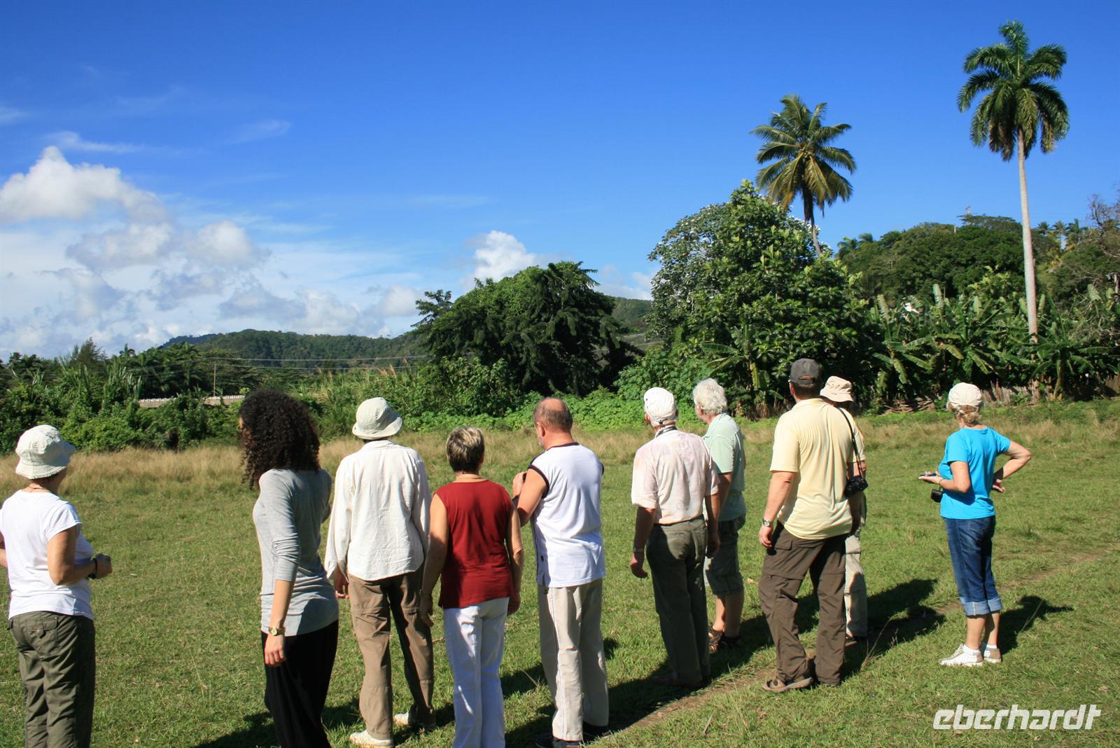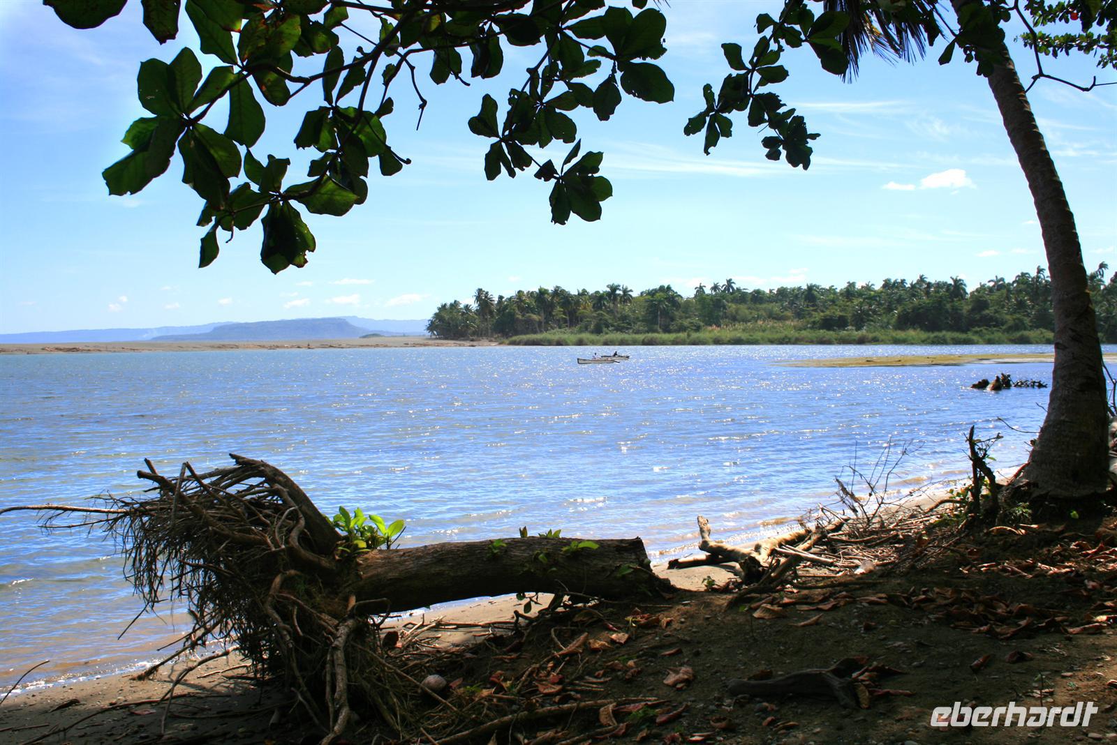 Eine Kostprobe von den hier wachsenden Kakaobohnen und Grapefruits direkt vom Baum darf natürlich auch nicht fehlen. An der Mündung des Toa Rivers angekommen, werden wir von zwei Ruderbooten abgeholt und setzen zum Atlantikstrand über. Die Wellen des „wilden“ Atlantiks bringen eine angenehme frische Brise in das feucht-warme Klima von etwa 30 °C. Dann fahren wir mit den Booten den Toa-Fluss hinauf und beobachten die Vögel und Pflanzenwelt an den Flussufern und Einheimische beim Fischen.